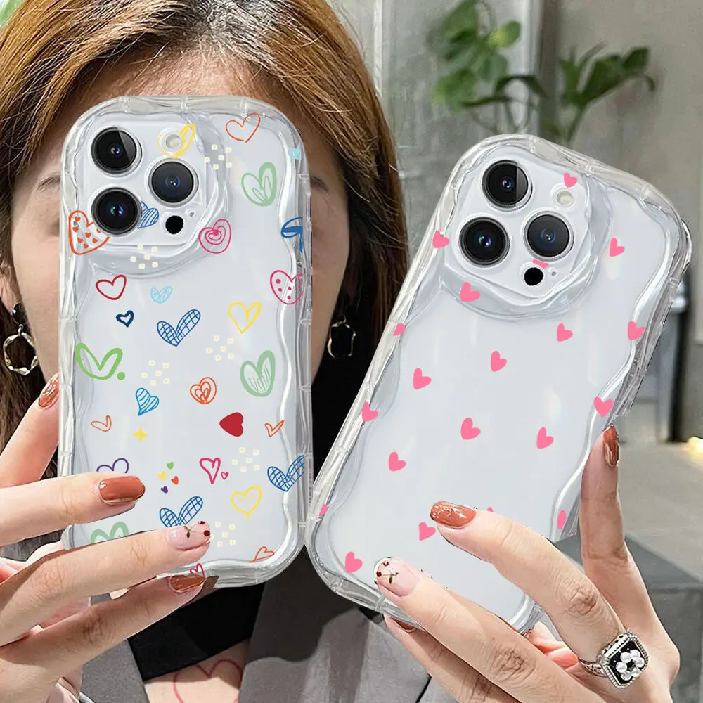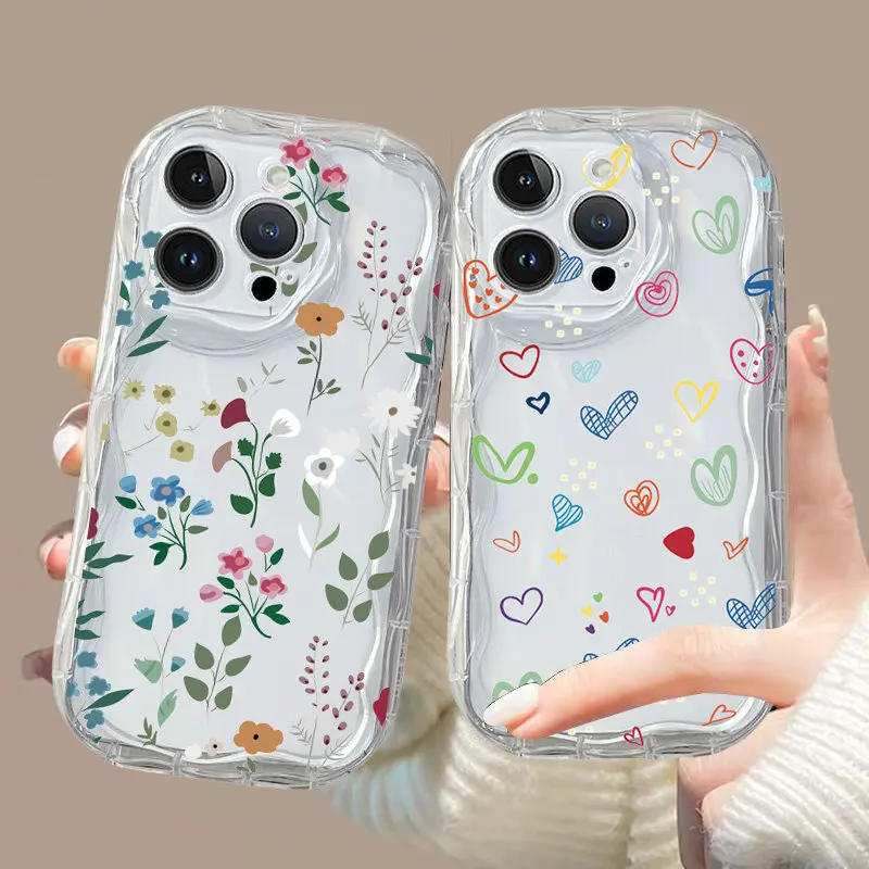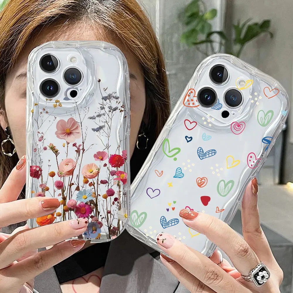 Funda de teléfono con bonito lazo de amor y plantas de flores para Samsung Galaxy S25 S24 S22 S23 Plus Ultra 5G S21 S20 S24 FE, cubierta con borde ondulado transparente