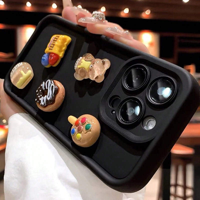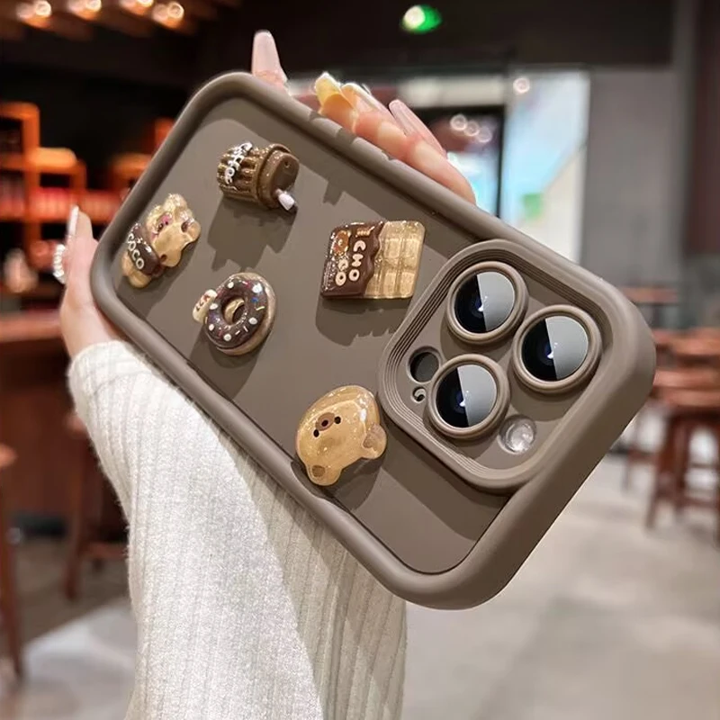 Funda de teléfono bonita de oso 3D, miel, donut y café para iPhone 11 12 13 14 15 16 Pro Max 7 8 Plus X XS XR, funda suave de silicona a prueba de golpes