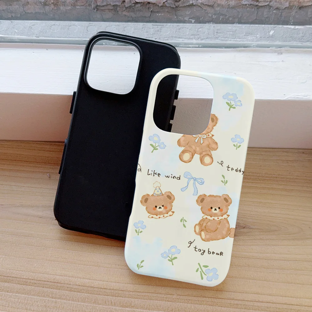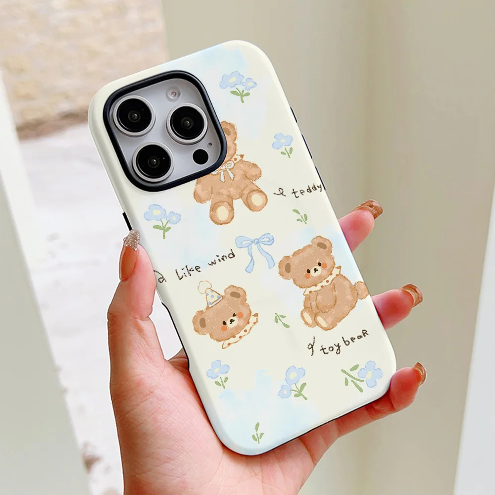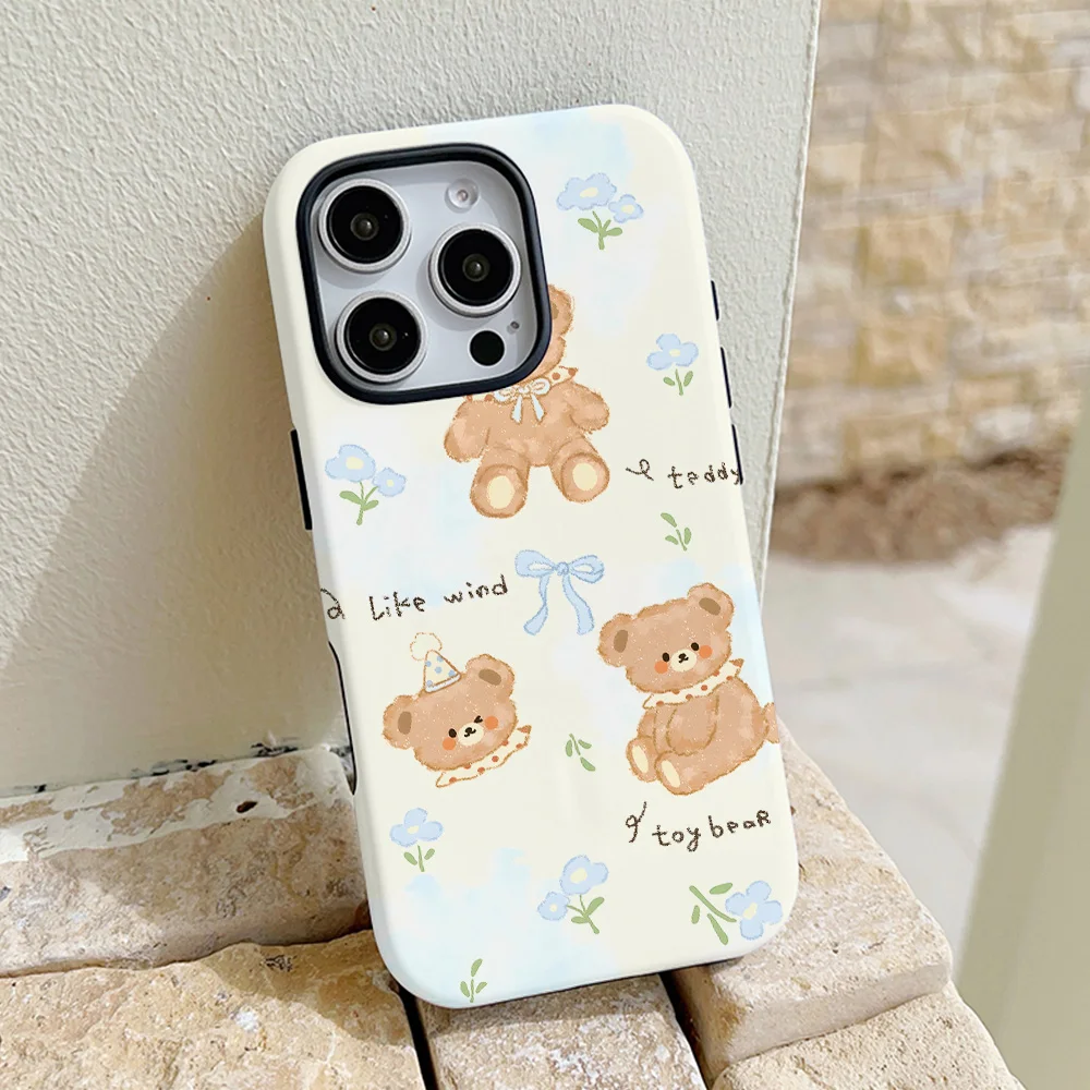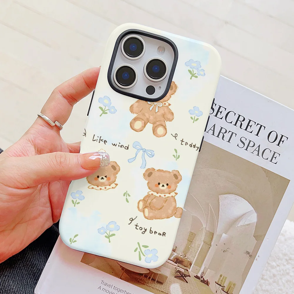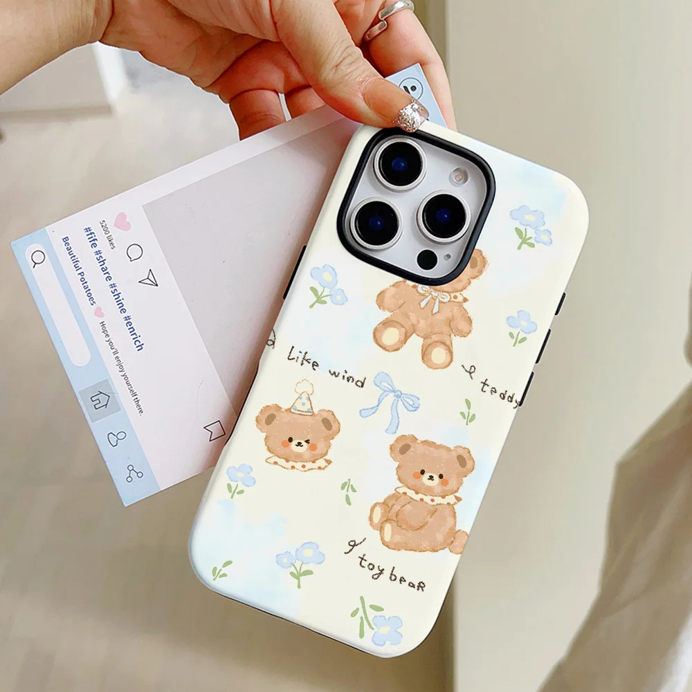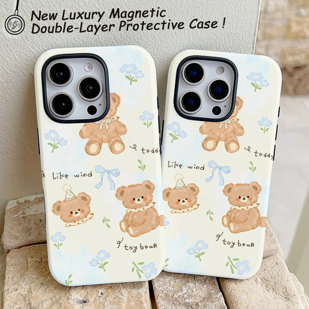 Comprar Funda de teléfono con bonito oso de dibujos animados para iPhone 16, 15, 14, 13, 12, 11 Pro Max Plus, funda trasera magnética de lujo de doble capa