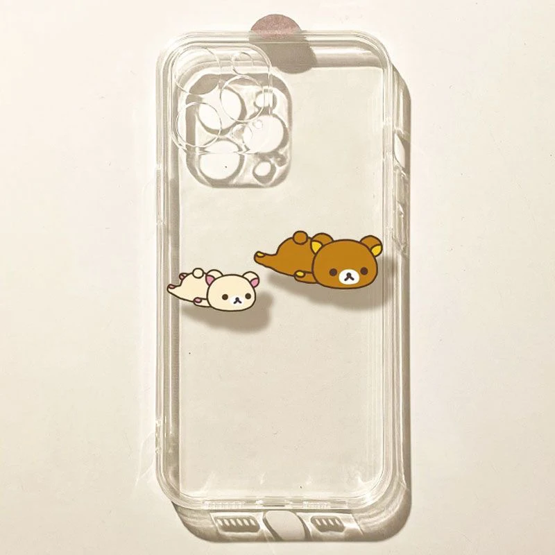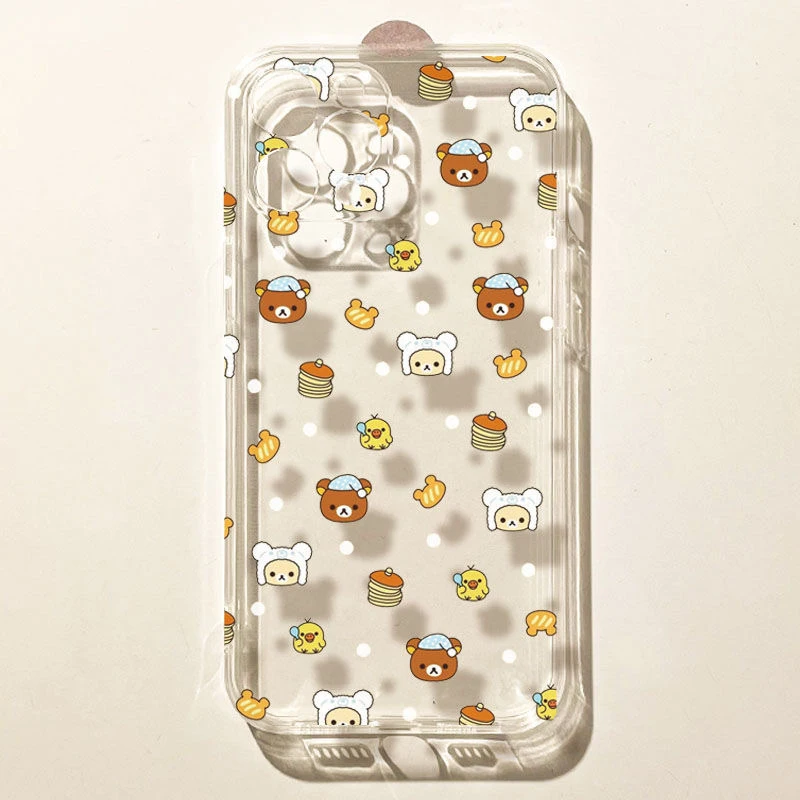 Funda de teléfono con bonito oso Rilakkuma de pantalla completa para iPhone 16 15 14 13 12 11 Mini Pro Max X XR XSMax 7 8 Plus, funda suave transparente