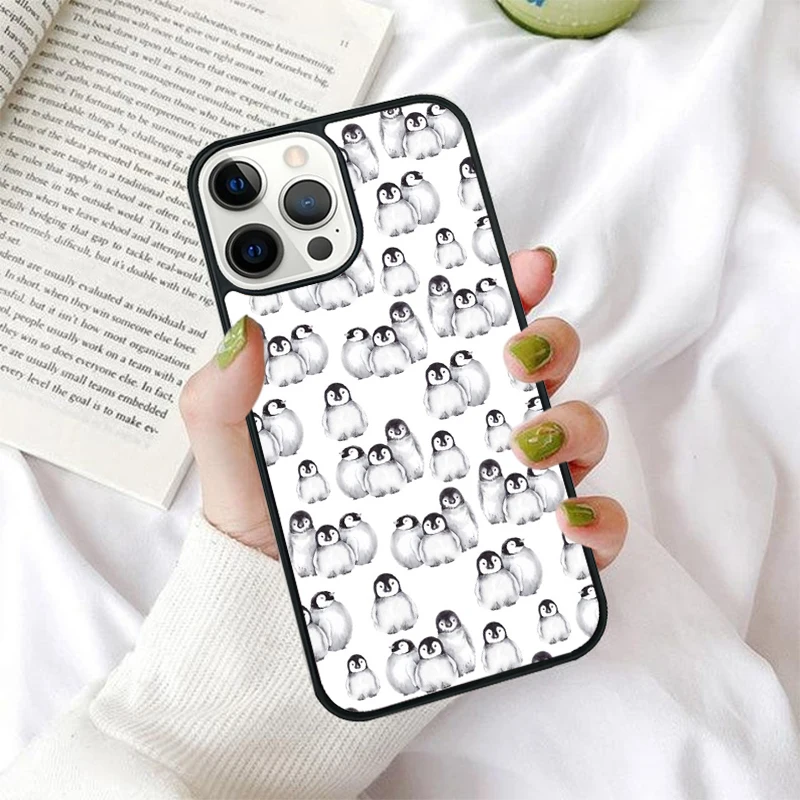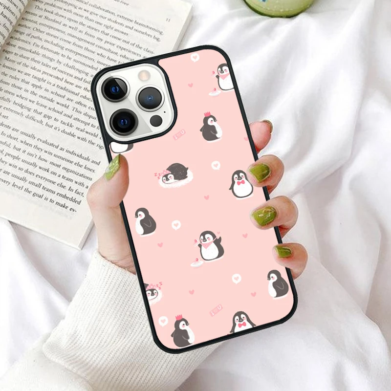 Funda de teléfono con bonito pingüino para iPhone 16 15 14 12 13 mini PLUS X XS XR 11 PRO MAX contraportada Fundas Shell Coque