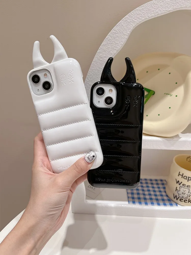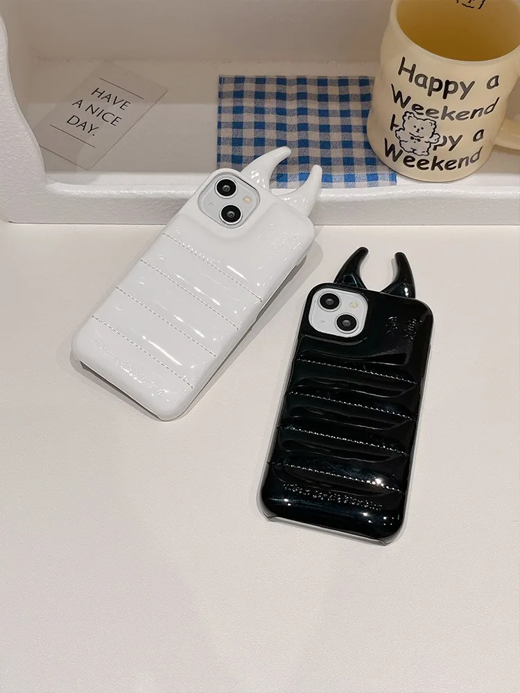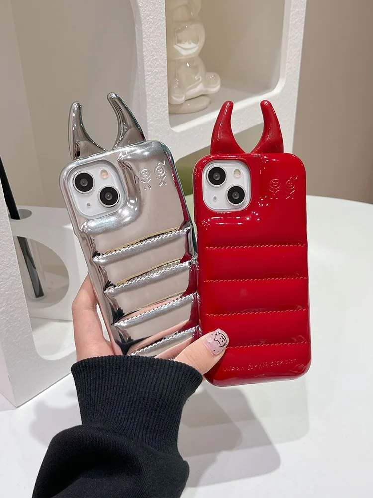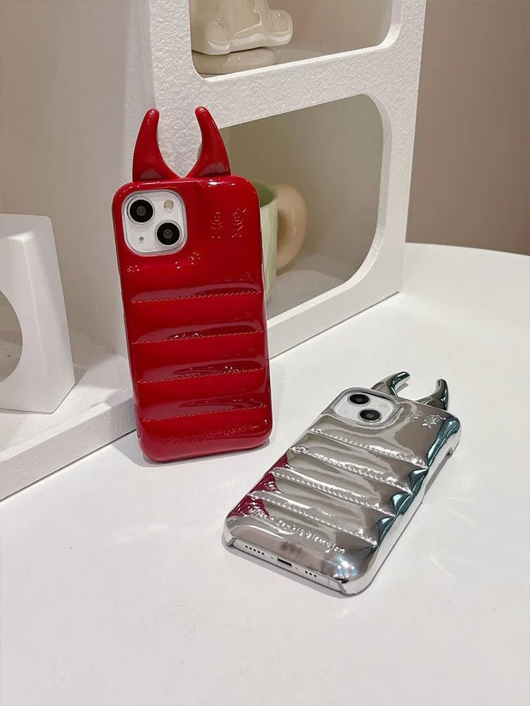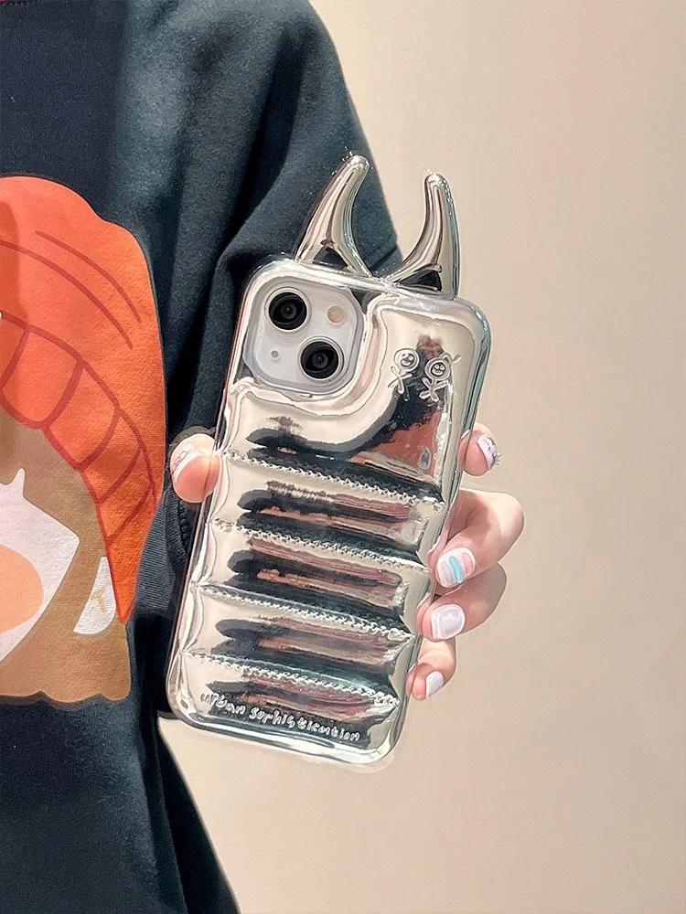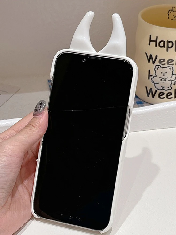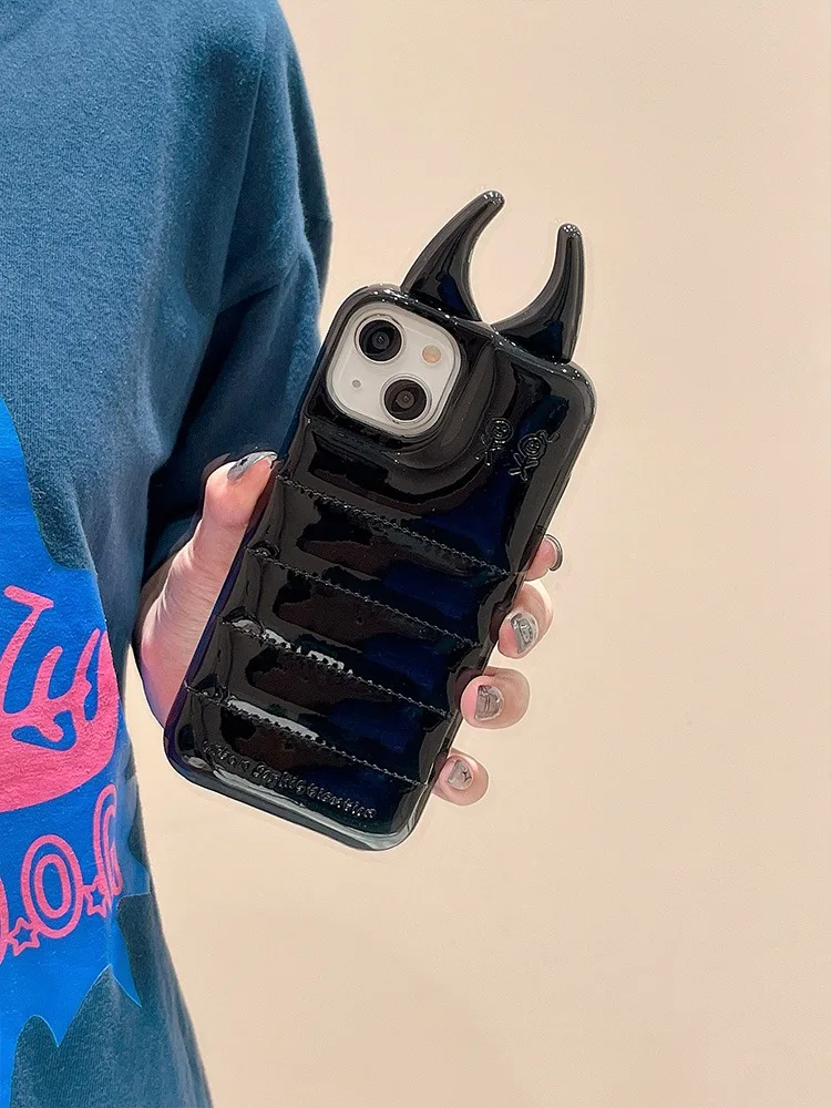 Comprar Funda de teléfono brillante con cuernos de vaca, carcasa trasera de cuero PU de lujo para iPhone 15, 14, 13, 12 Pro Max