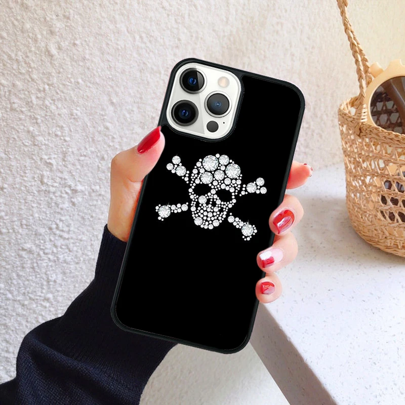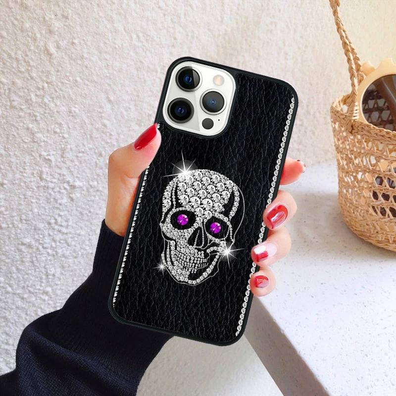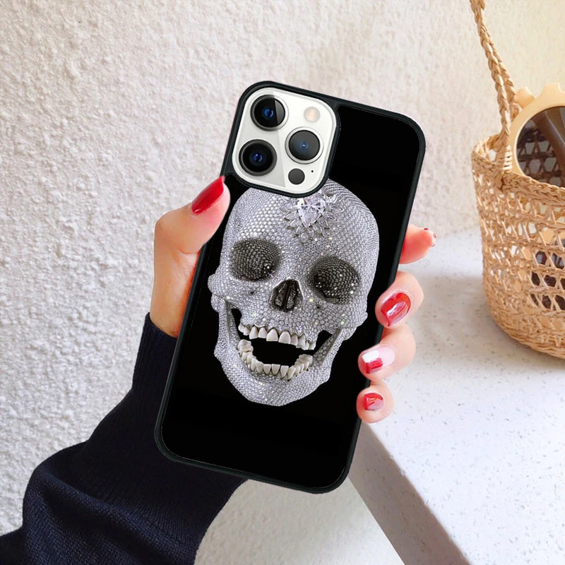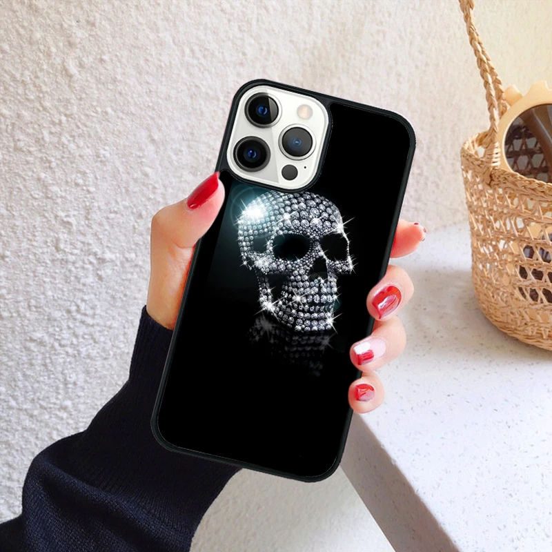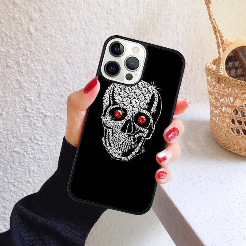 Funda de teléfono con calavera de diamante para iPhone 17 Air 16 PRO MAX 15 14 PLUS 11 12 13, carcasa trasera