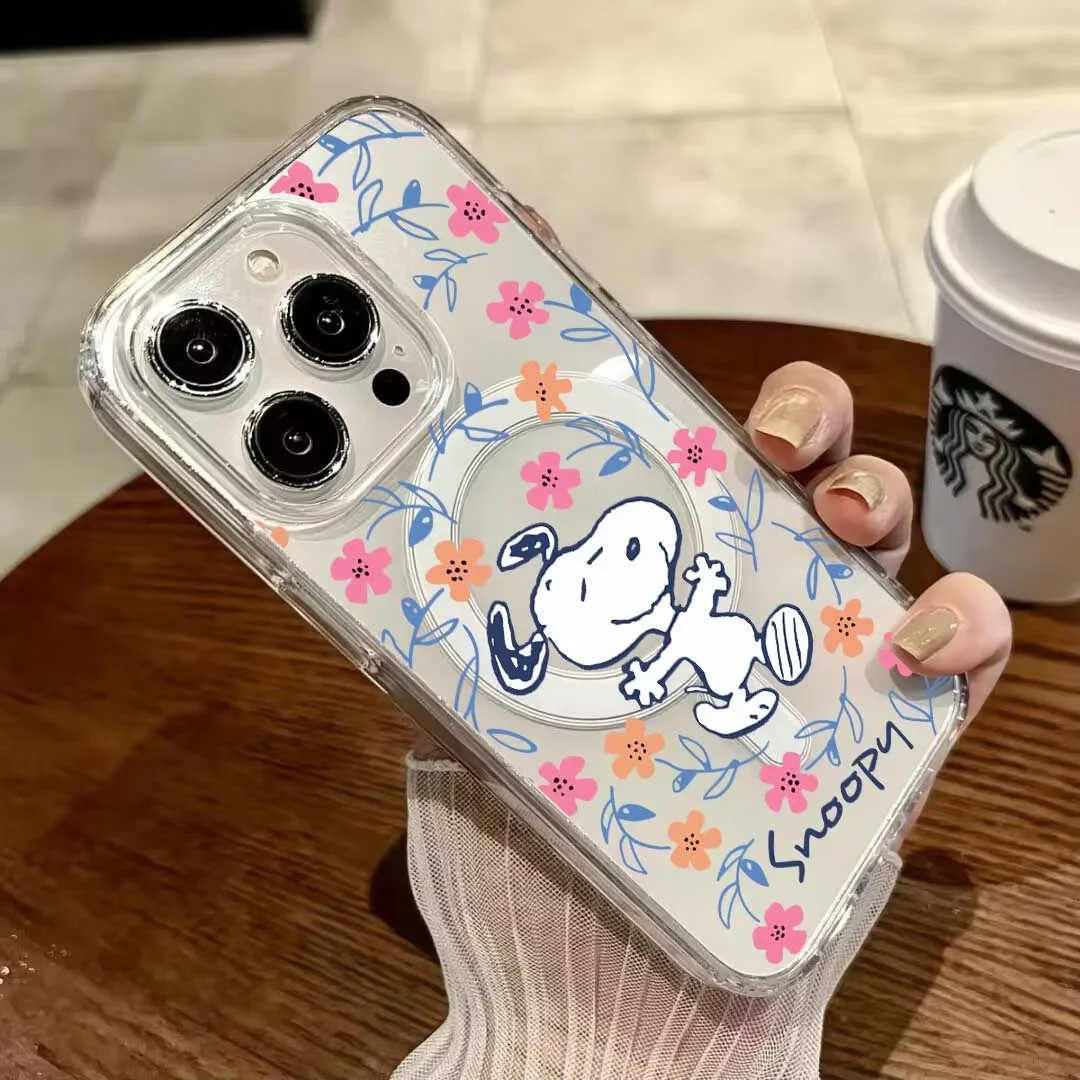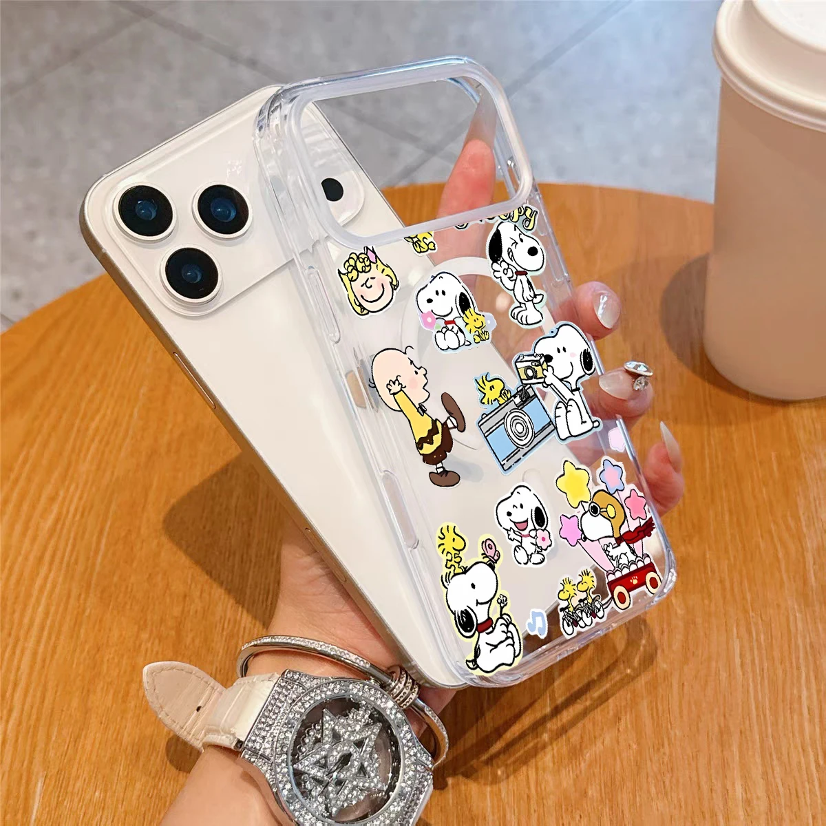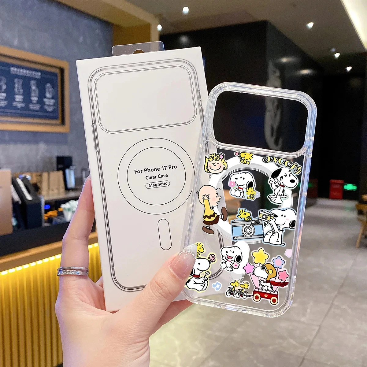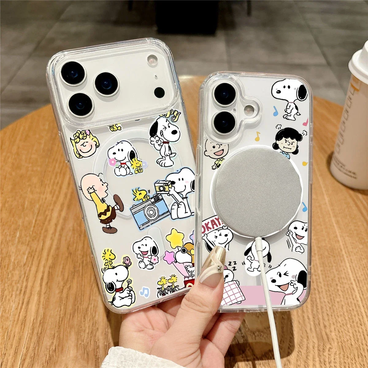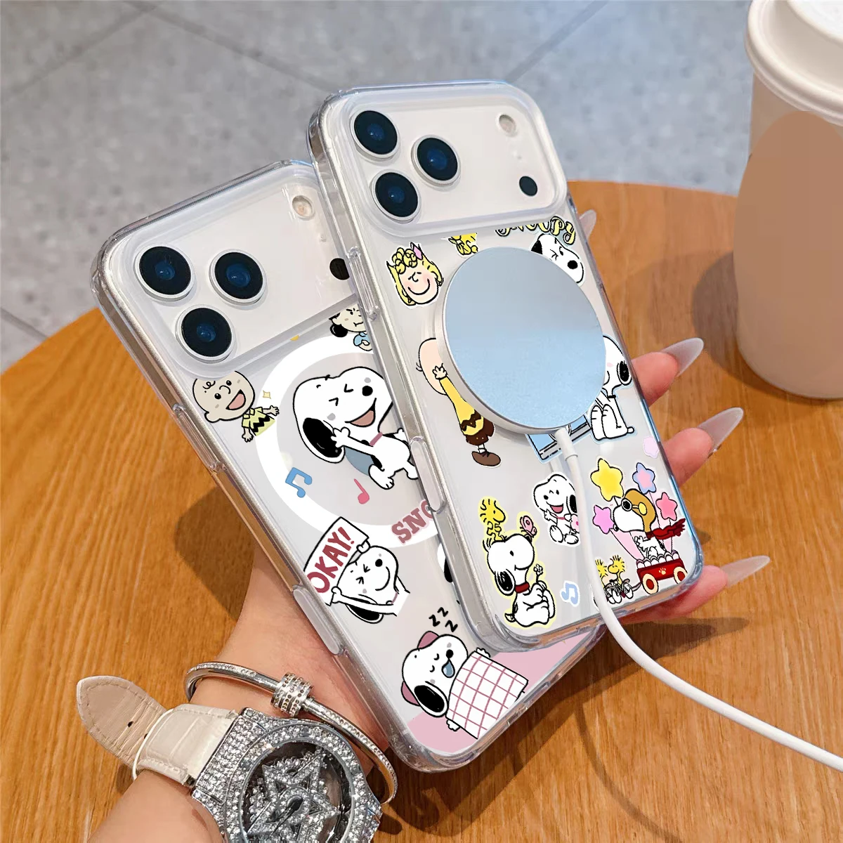 Comprar Funda de teléfono con carga inalámbrica magnética, bonita y feliz Snoopy Magsafe para Iphone 17 Air 16 15 13 12 11 Pro Max 16E 13 Mini 14 Plus