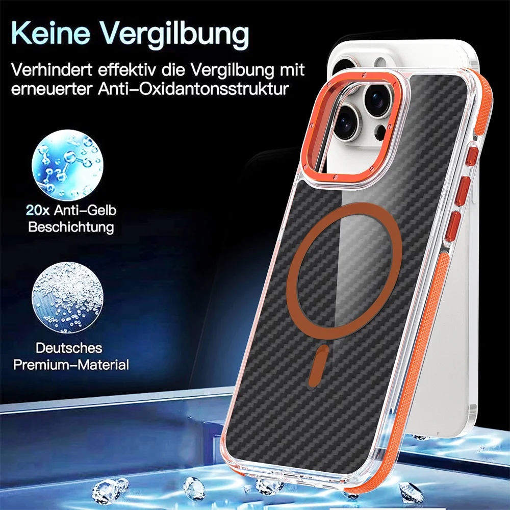 Comprar Funda de teléfono de carga inalámbrica magnética de doble Color para iPhone 11, 12, 13, 14, 15, 16 Pro Max, carcasa sísmica con patrón de fibra de carbono