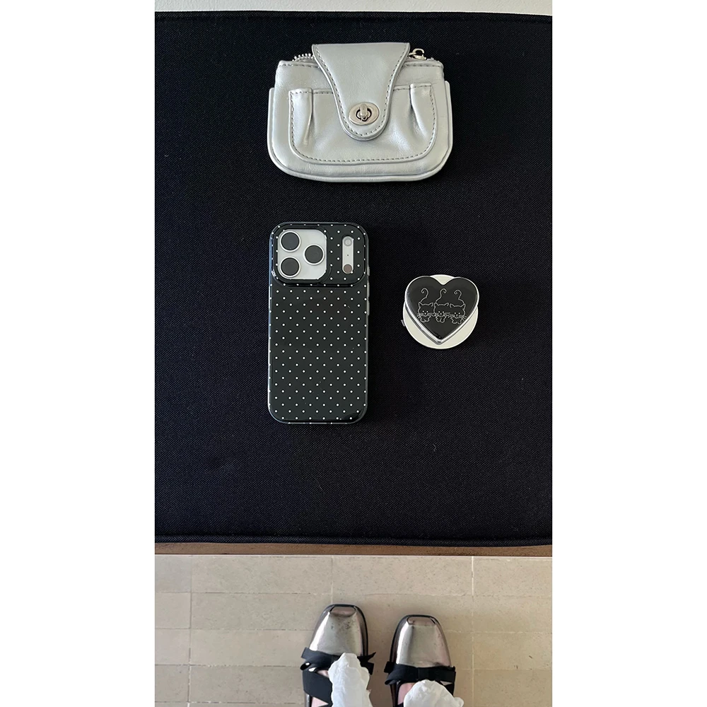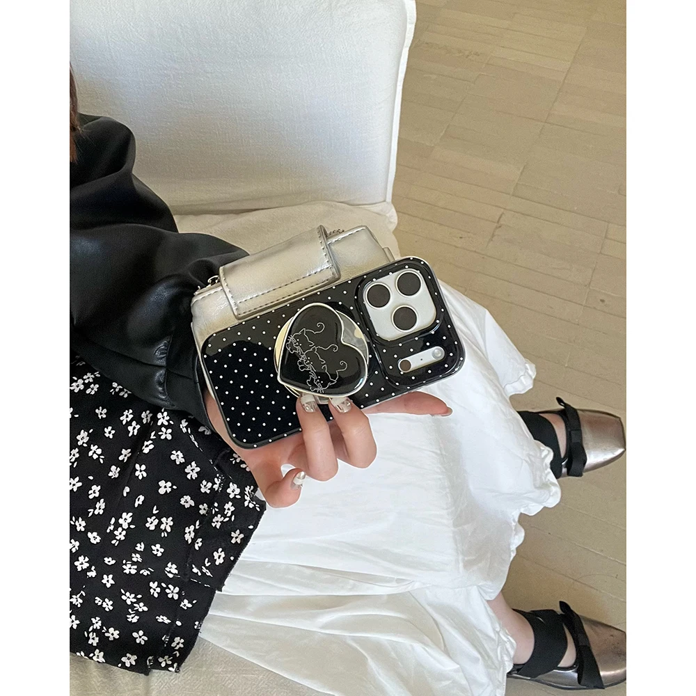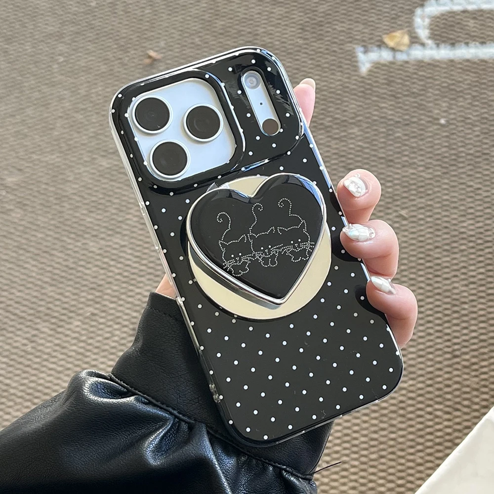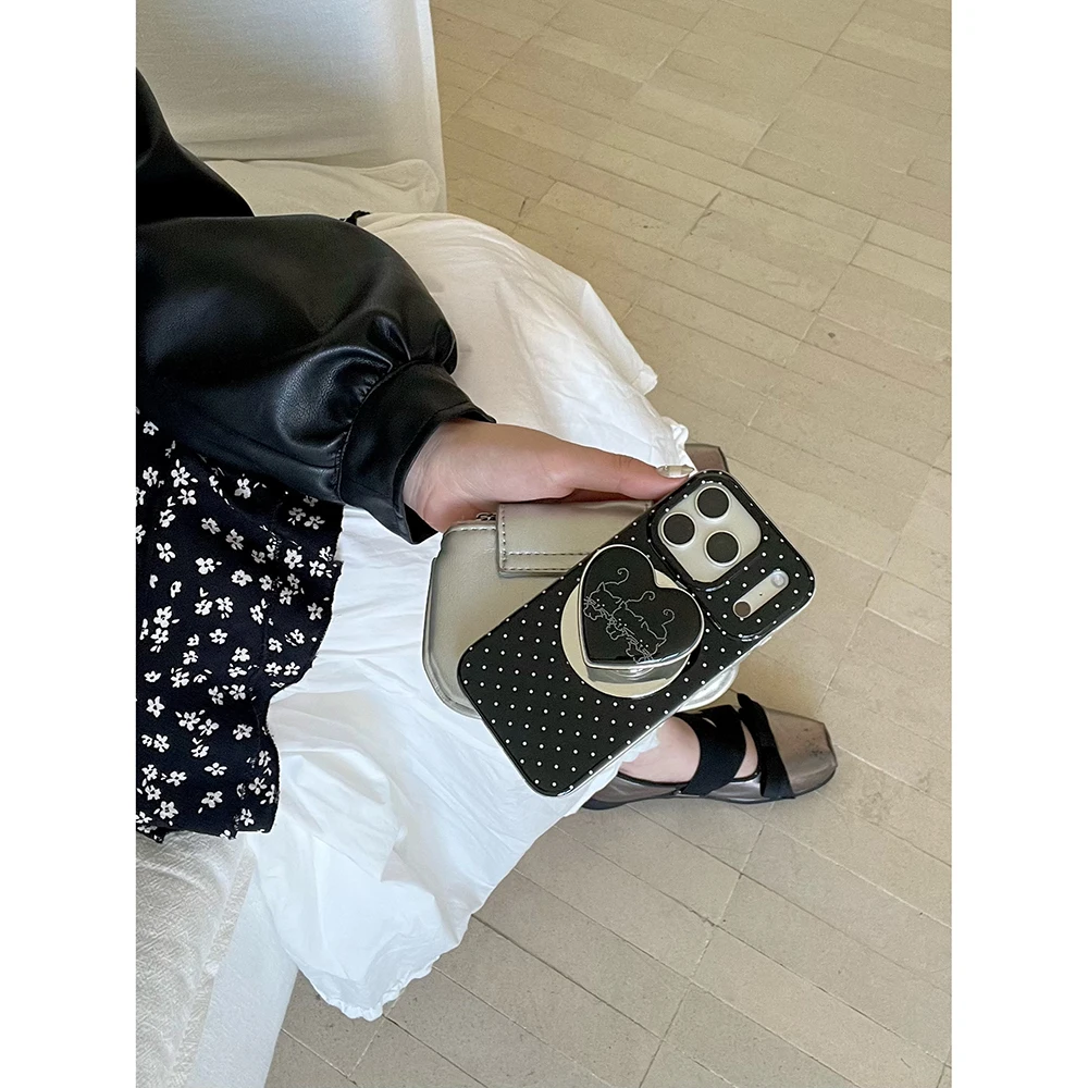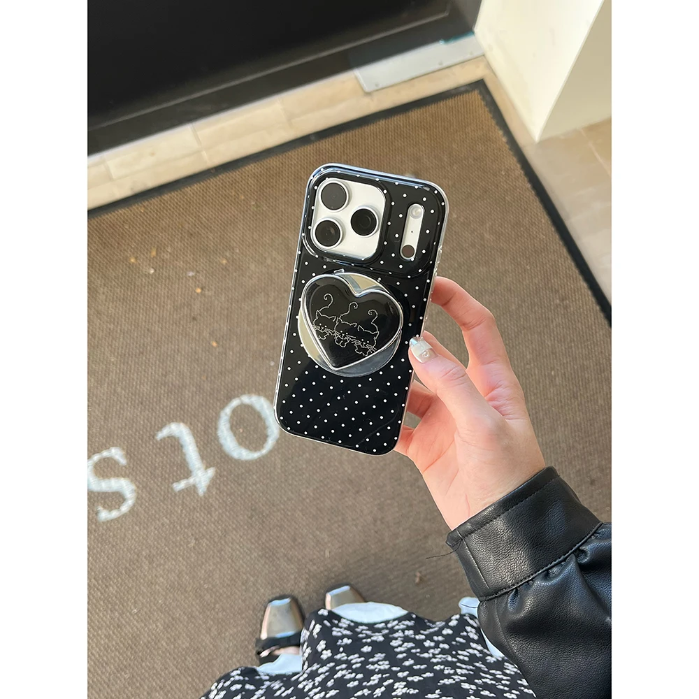 Funda de teléfono con carga inalámbrica magnética de lunares negros con corazón lindo 3D para IPhone 16 15 14 Pro Max 17 Pro Max Funda Magsafe