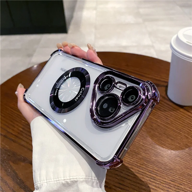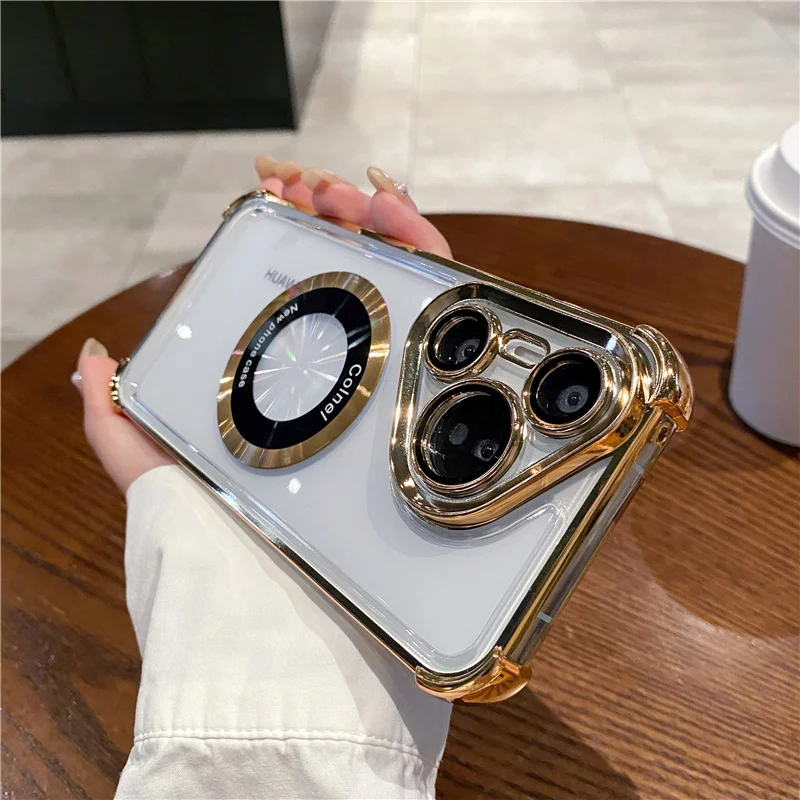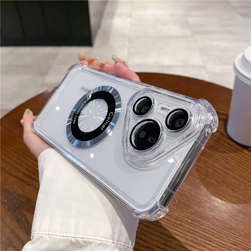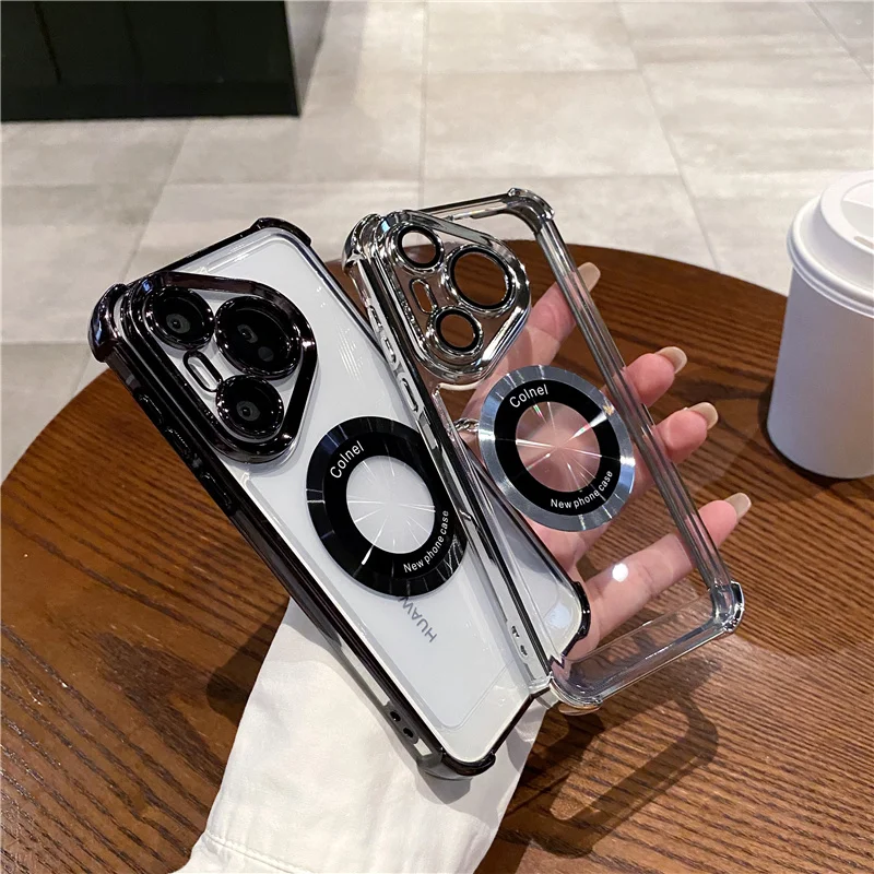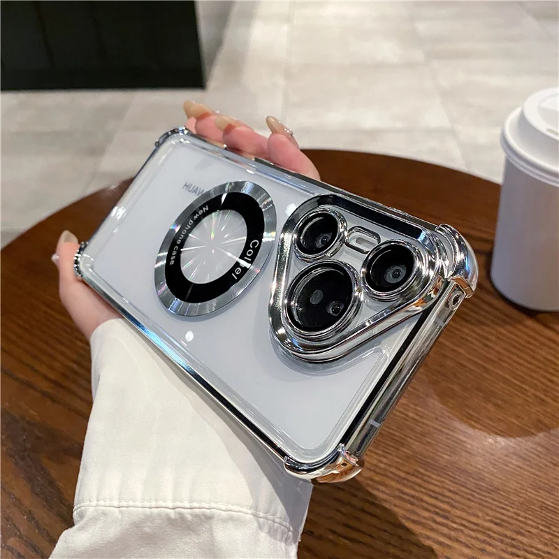 Silicona suave + anticaída de cuatro esquinas + película de lente + para carga inalámbrica Magsafe