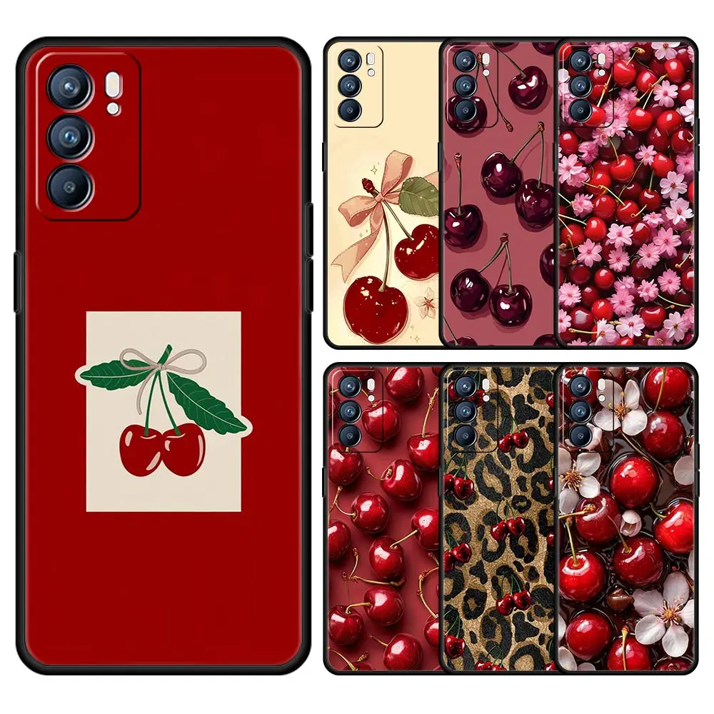 Funda de teléfono cereza roja para Oppo Reno14 Reno13 Reno12 11 F 10 Find X5 X9 Pro A54 5G A53 A52 A9 A16 A74 A78 4G A79 A80 A98