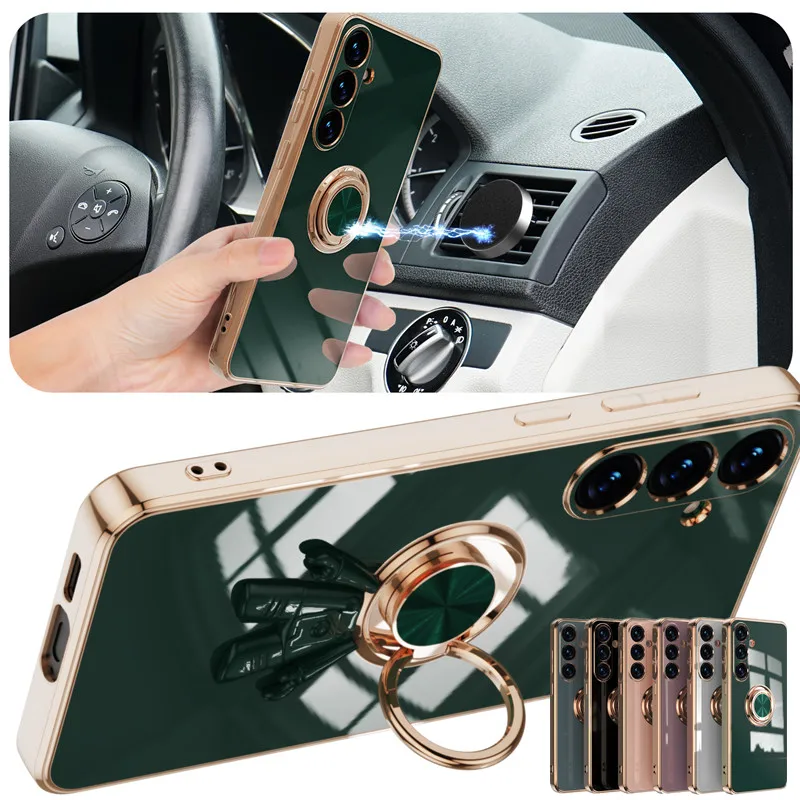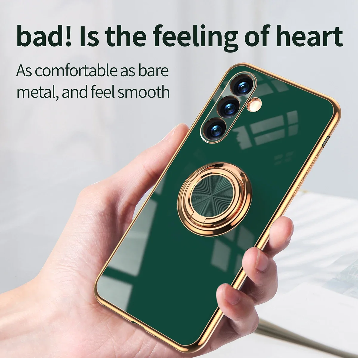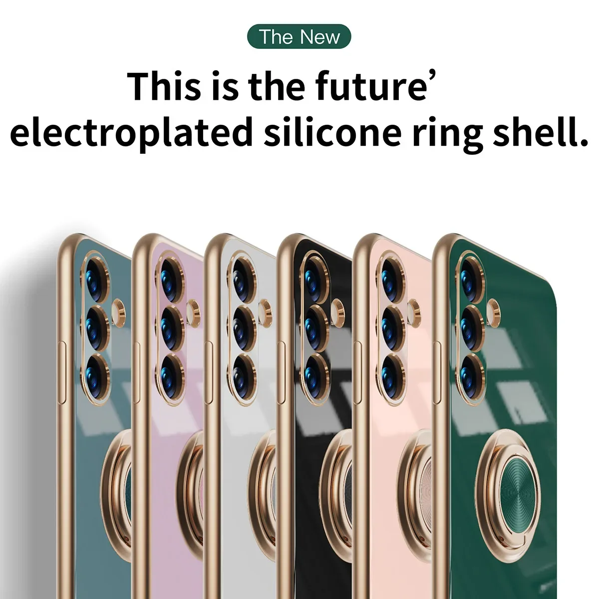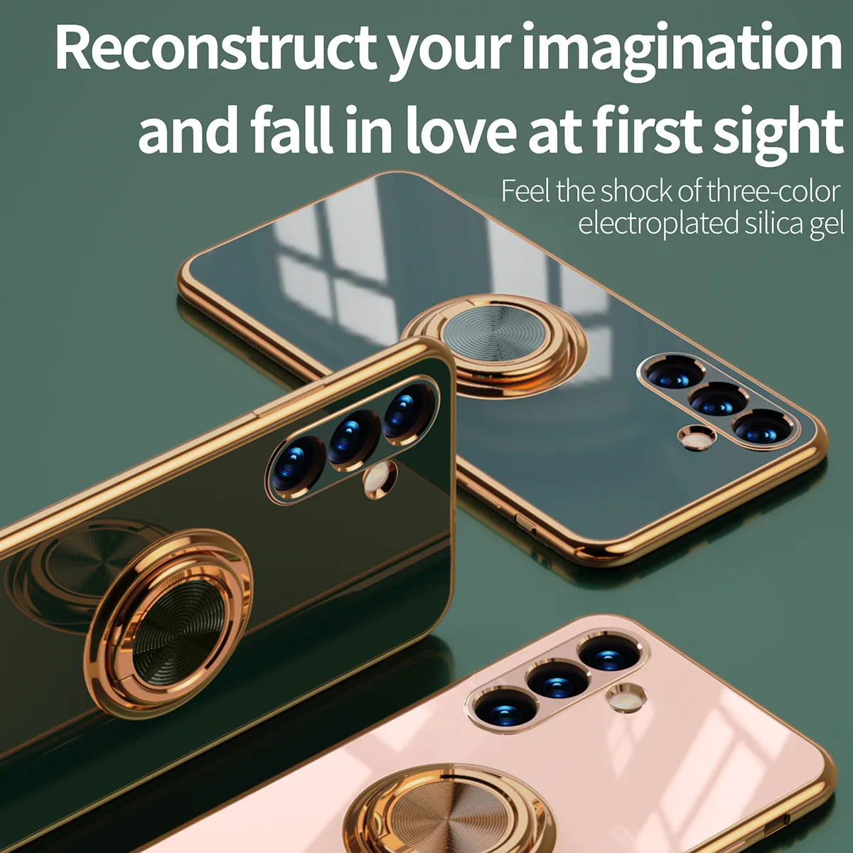 Comprar Funda de teléfono chapada a prueba de golpes para Samsung Galaxy S25 S24 FE S23 Ultra S22 Plus S21 Funda protectora con anillo soporte Funda Coque