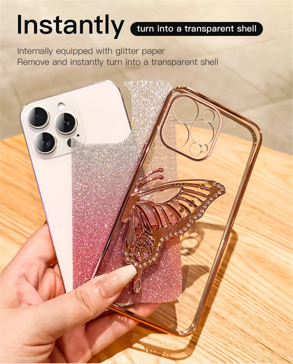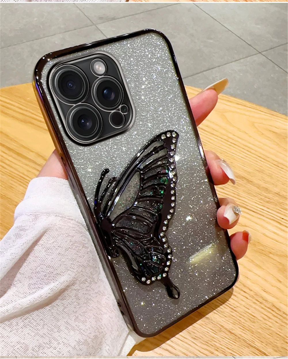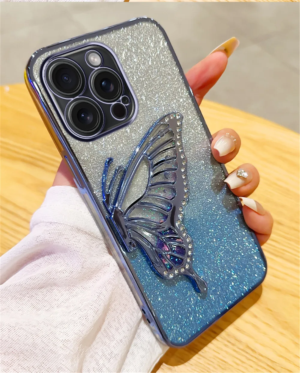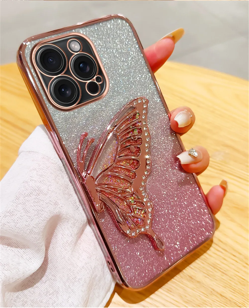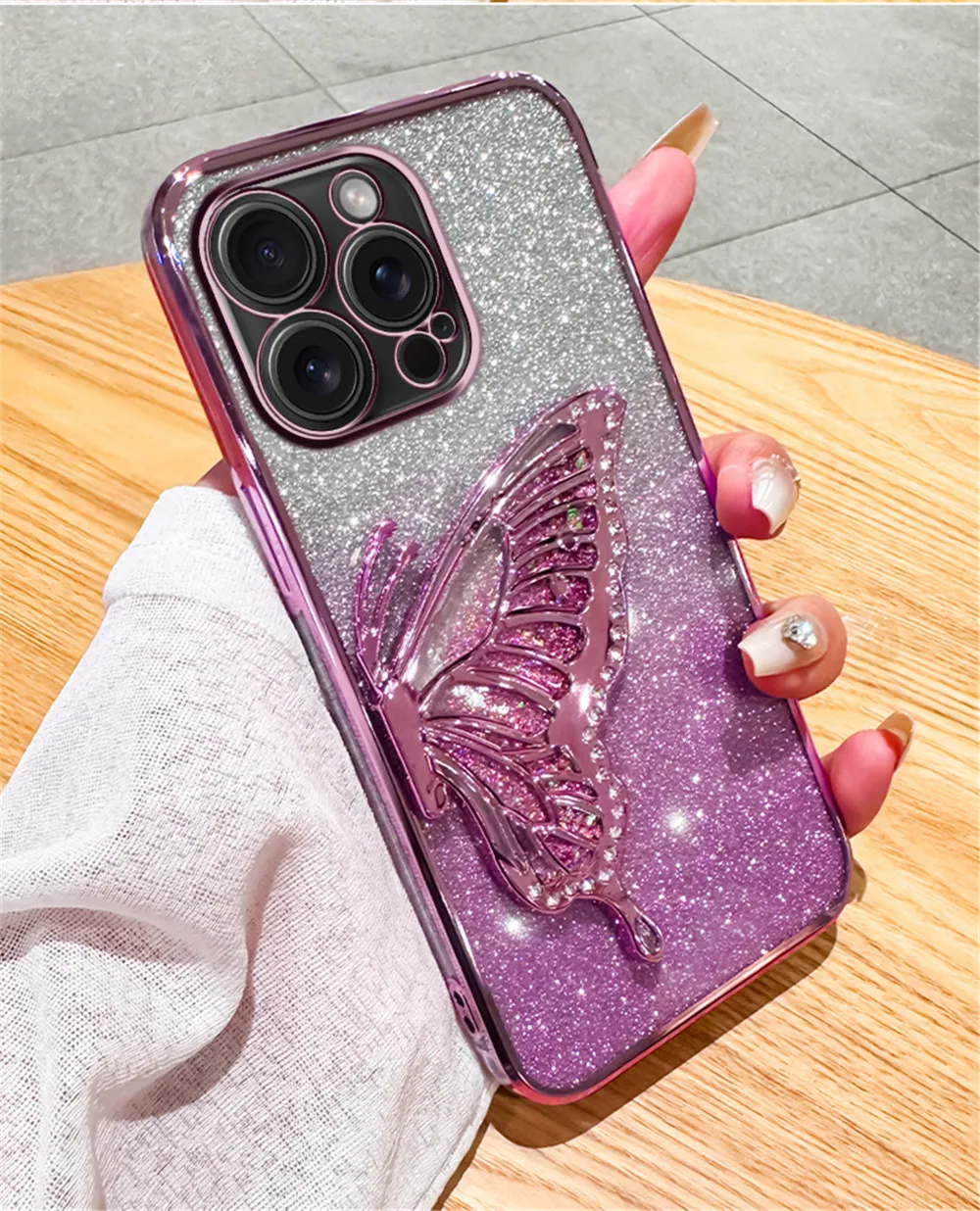 Funda de teléfono chapada en arena movediza de mariposa con purpurina degradada para iPhone 15 11 12 13 14 Pro Max Mini X XS Max XR 7 8 Plus, funda blanda