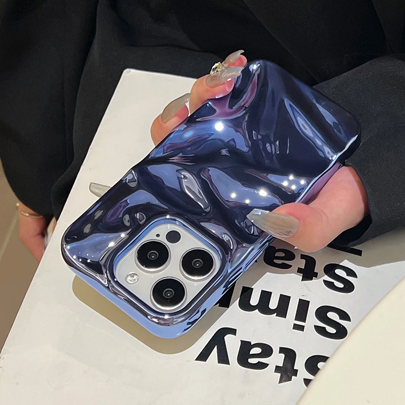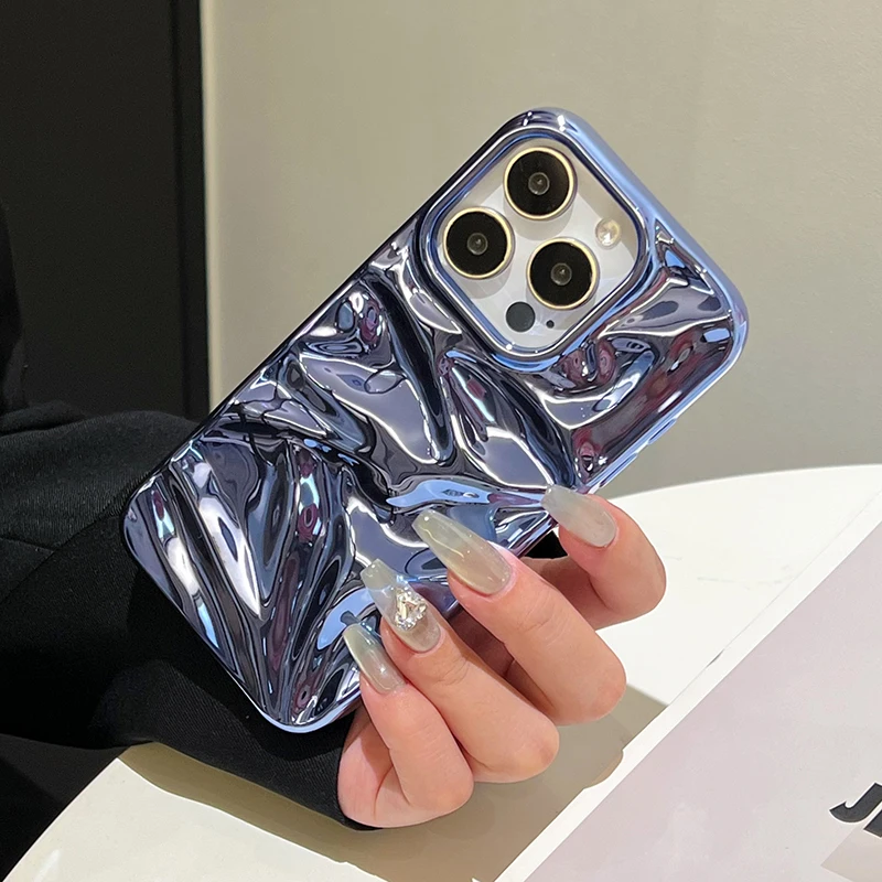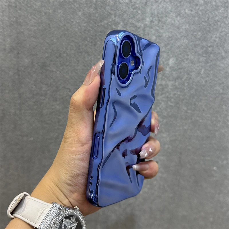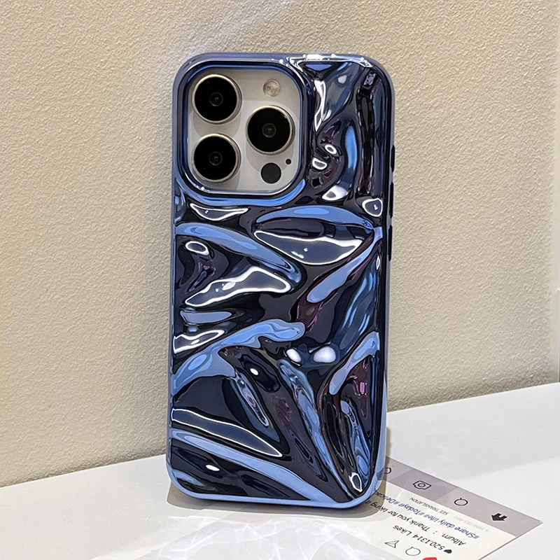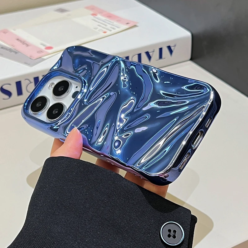 Funda de teléfono chapada en azul brillante con ondas de agua para iPhone 17 Air 16 15 14 13 12 11 Pro Max 16 Plus, funda trasera suave a prueba de golpes