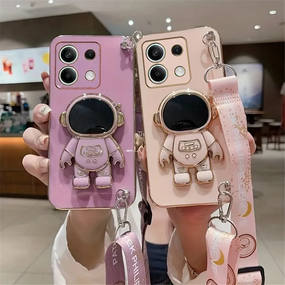 Funda de teléfono chapada con soporte de astronauta y cordón cruzado para Xiaomi Redmi Note 13 Pro 4G 5G 13Pro Plus 12 12S 11 11S 10 9 8 7