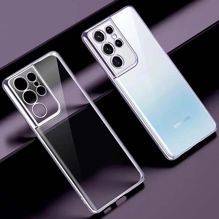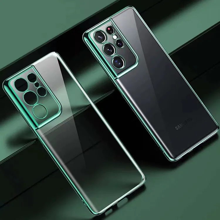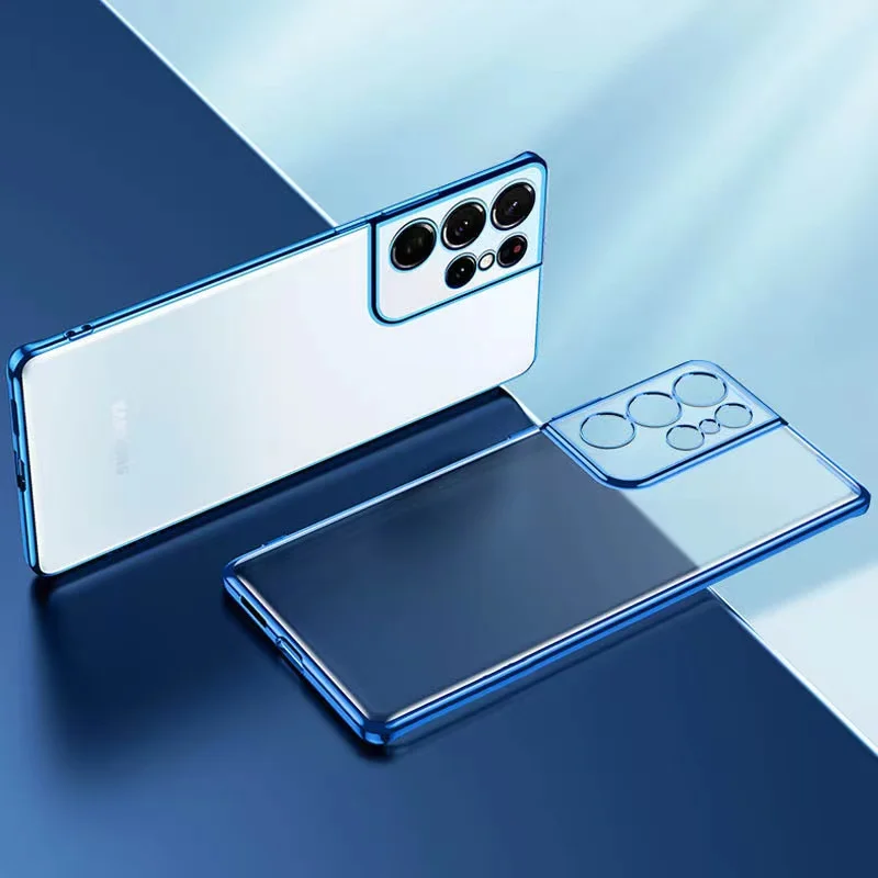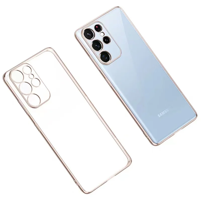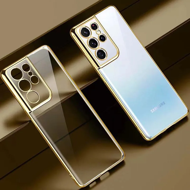 Comprar Funda de teléfono chapada en oro de lujo para Samsung Galaxy S21 Ultra S20 Plus S22 S 21 20 5g, funda de silicona transparente para cámara