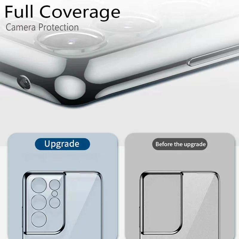 Funda de teléfono chapada en oro de lujo para Samsung Galaxy S21 Ultra S20 Plus S22 S 21 20 5G, funda protectora de silicona transparente para cámara