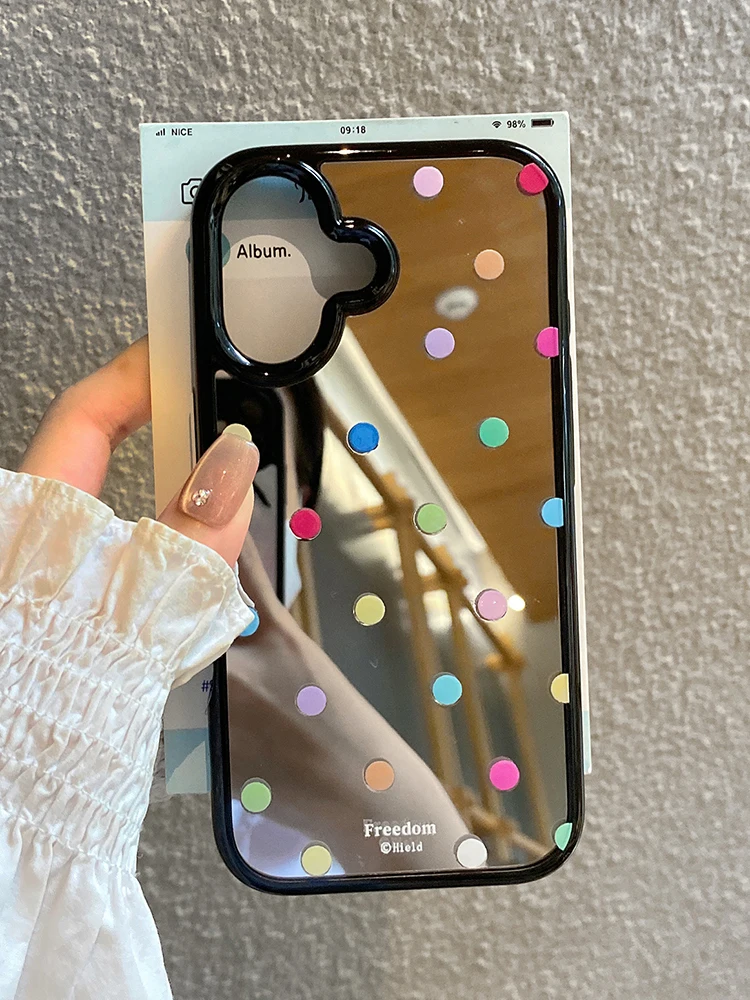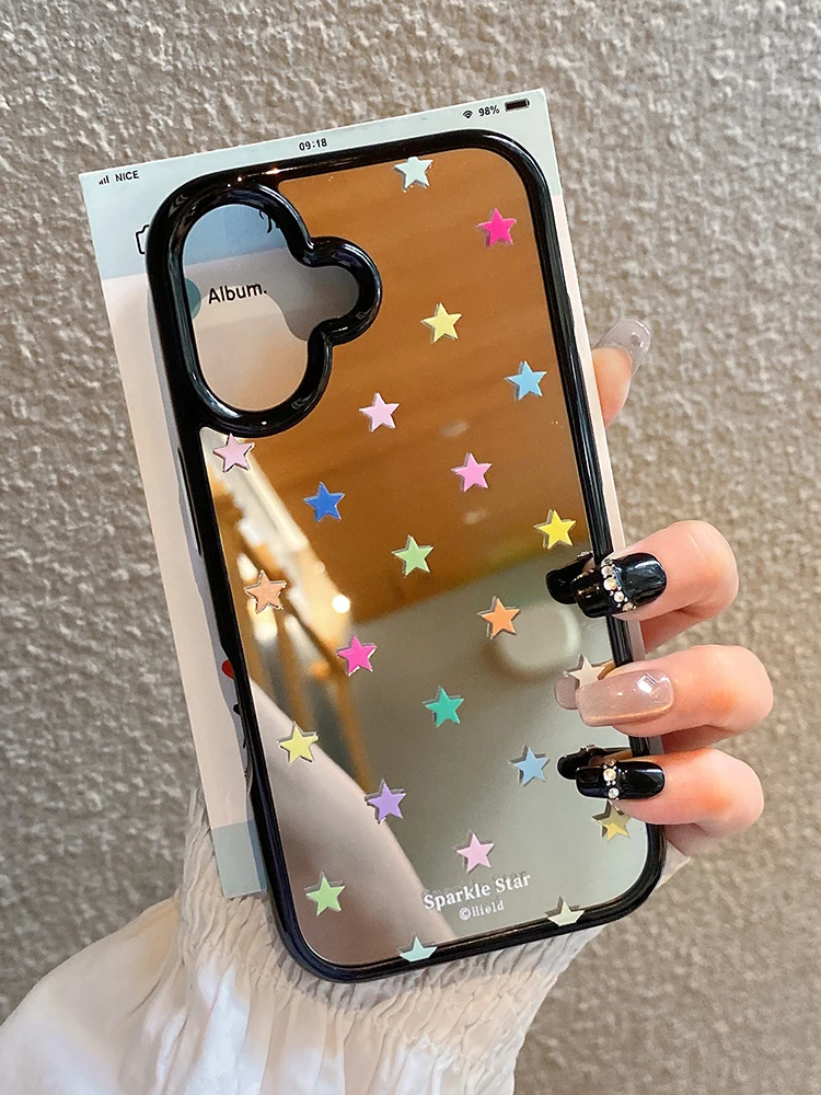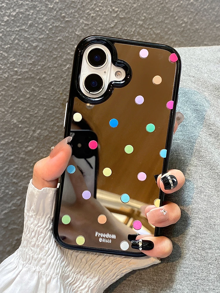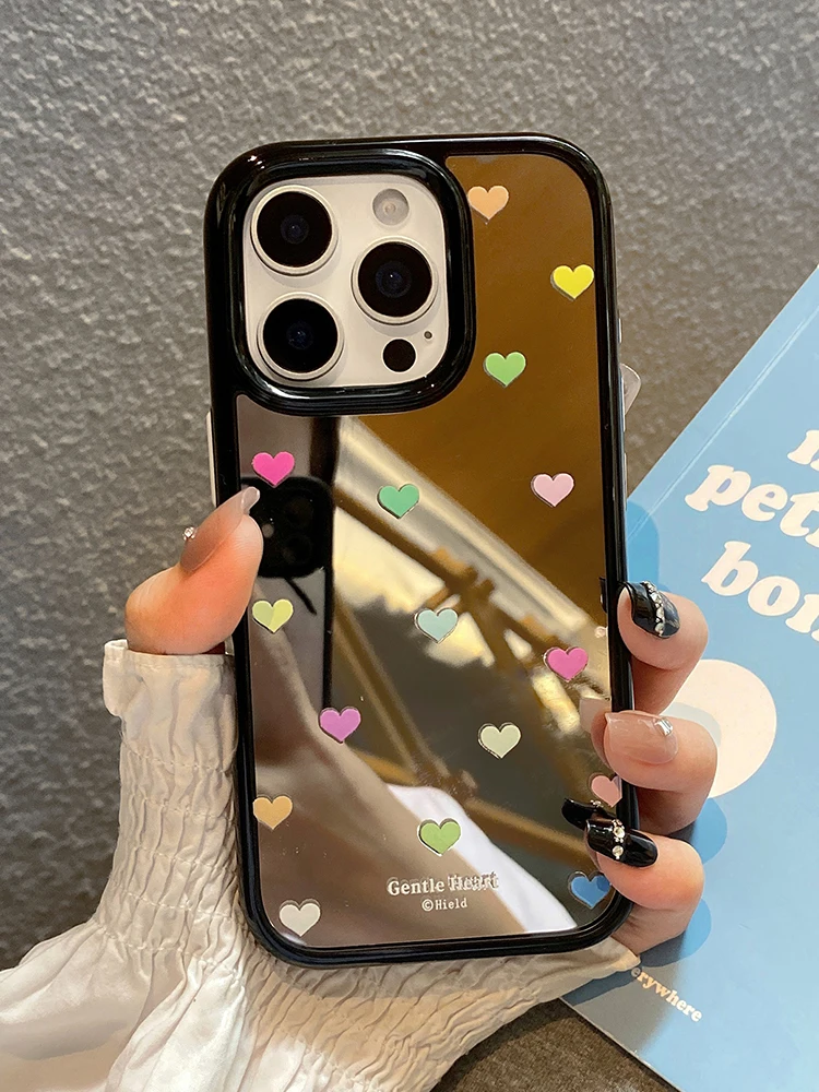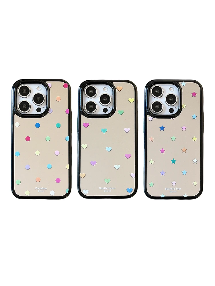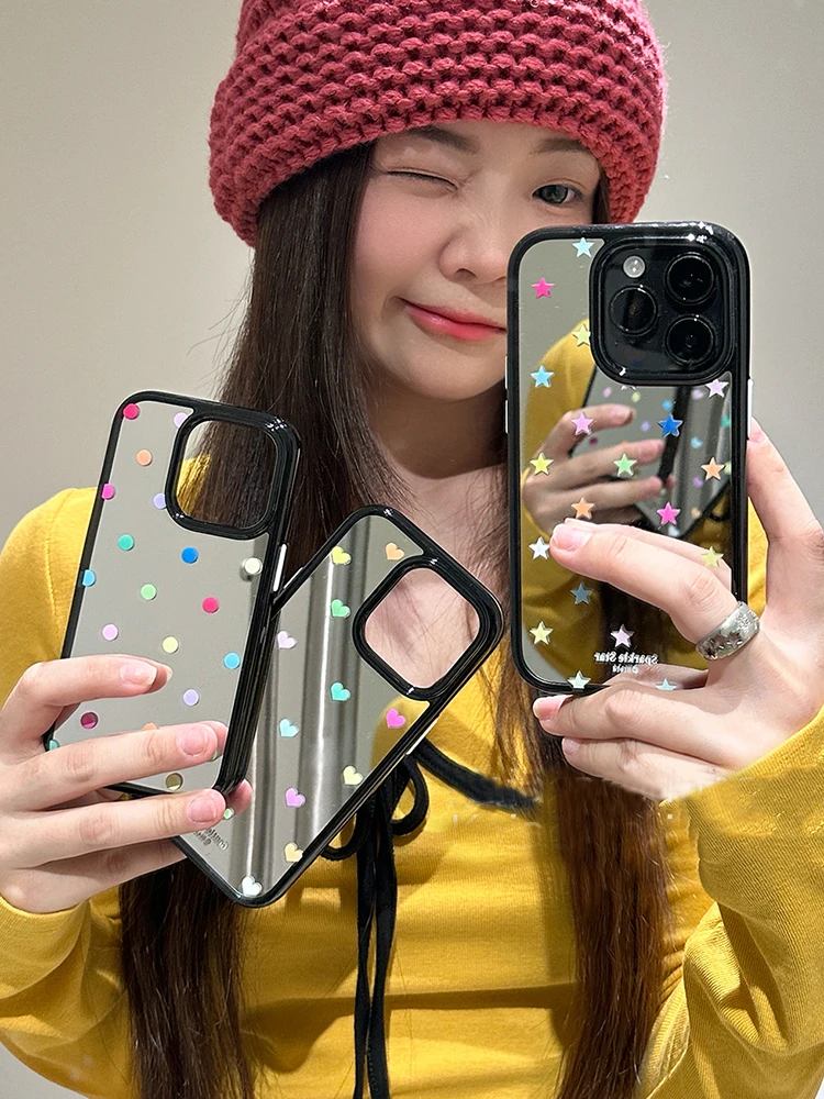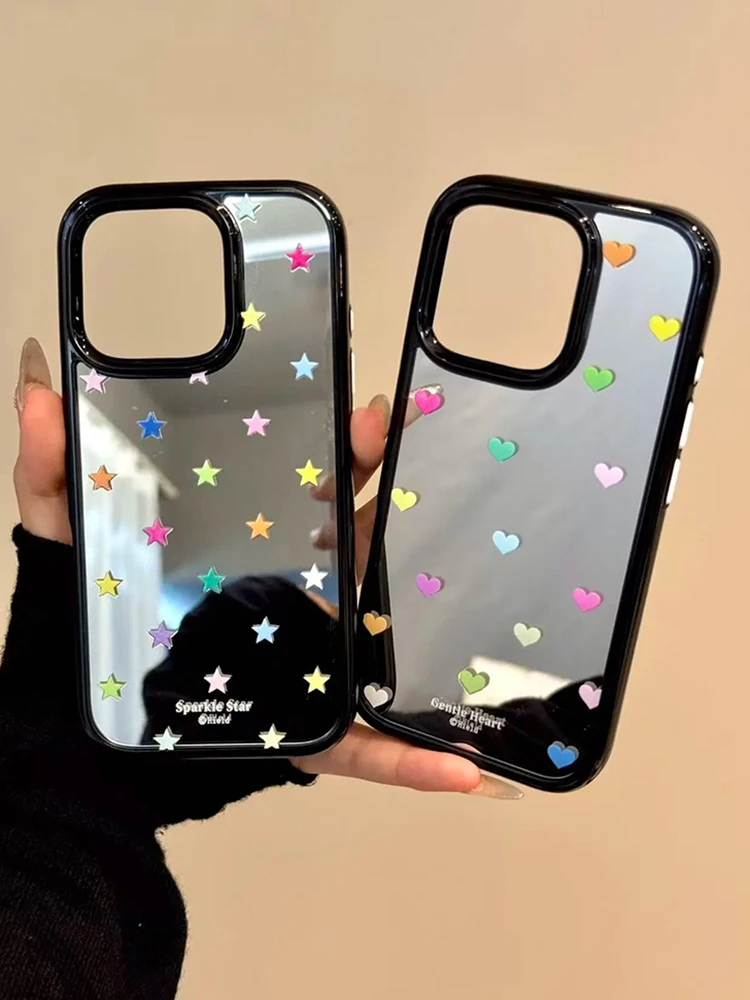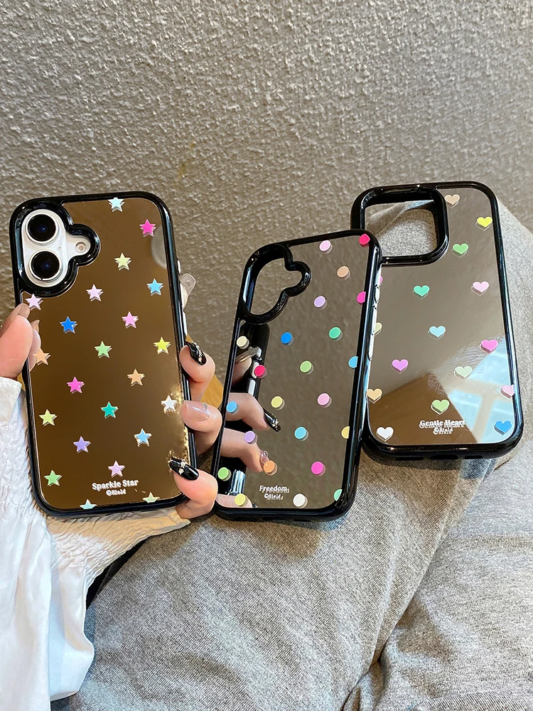 Comprar Funda de teléfono chapada en lujo con espejo plateado y lunares, funda trasera dura a prueba de golpes con diseño de corazón y estrellas para iPhone 13 14 15 16 17 Pro Max
