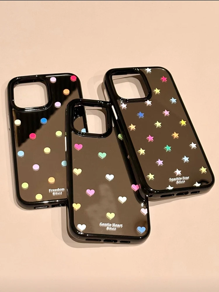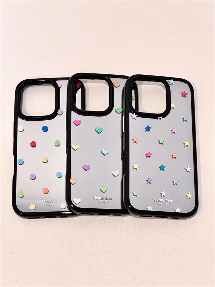 Funda de teléfono de lujo con revestimiento plateado y lunares, corazón de amor, estrellas, funda trasera dura a prueba de golpes para iPhone 13 14 15 16 17 Pro Max