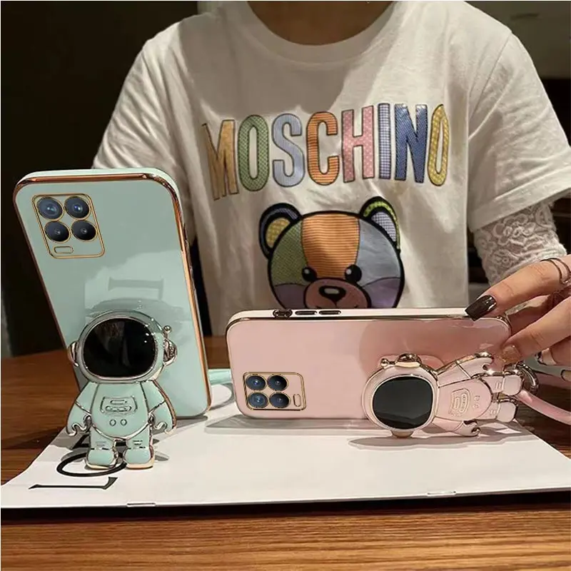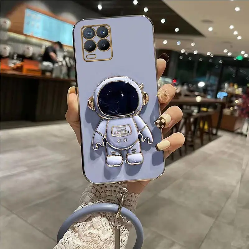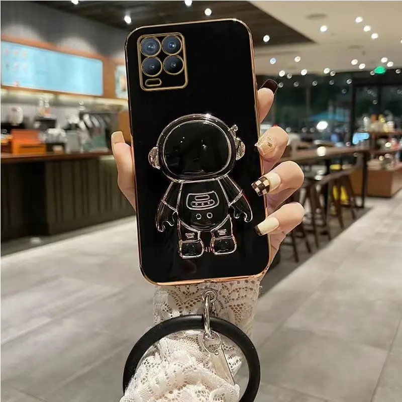 Comprar Funda de teléfono chapada con pulsera de astronauta para Oppo Realme, 8 Pro, 5i, 6i, 8i, 9, 10, C20, C11, C21Y, C25Y, C30, C33, C35, C55
