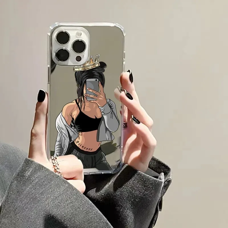 Comprar Funda de teléfono de chica a la moda para Samsung Galaxy S25 S24 S23 S22 S21 Ultra Plus FE A06 A14 A23 A36 A52 A55 A56 cubierta de espejo a prueba de golpes