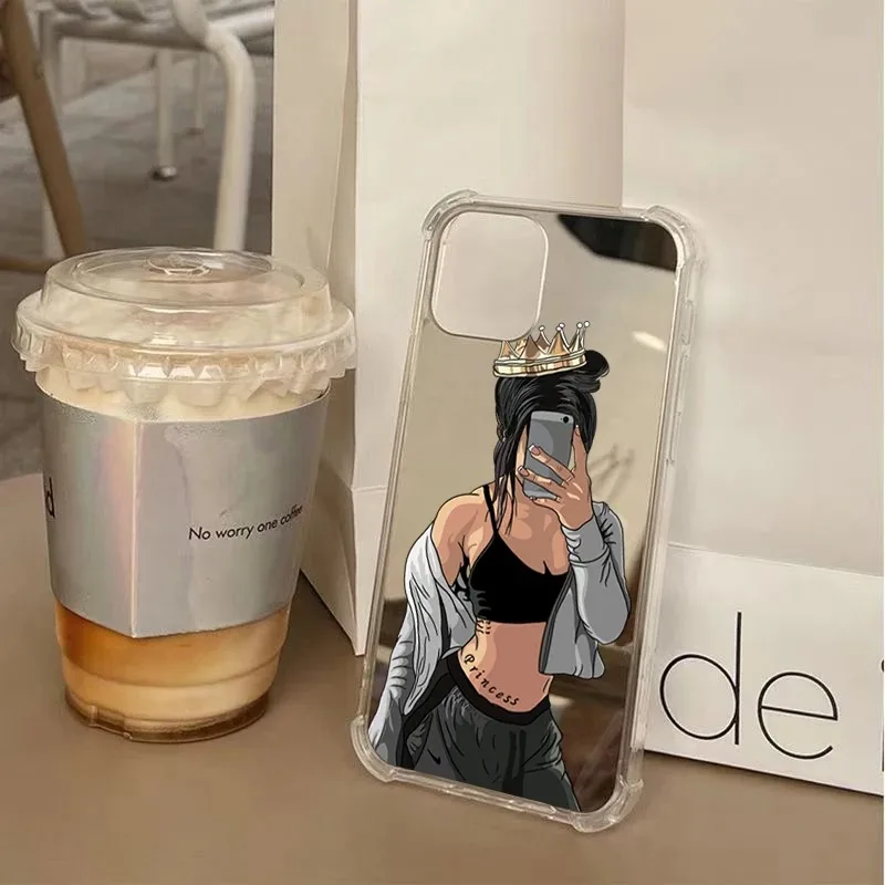 Funda de teléfono de moda para chica Samsung Galaxy S25 S24 S23 S22 S21 Ultra Plus FE A06 A14 A23 A36 A52 A55 A56 cubierta de espejo a prueba de golpes