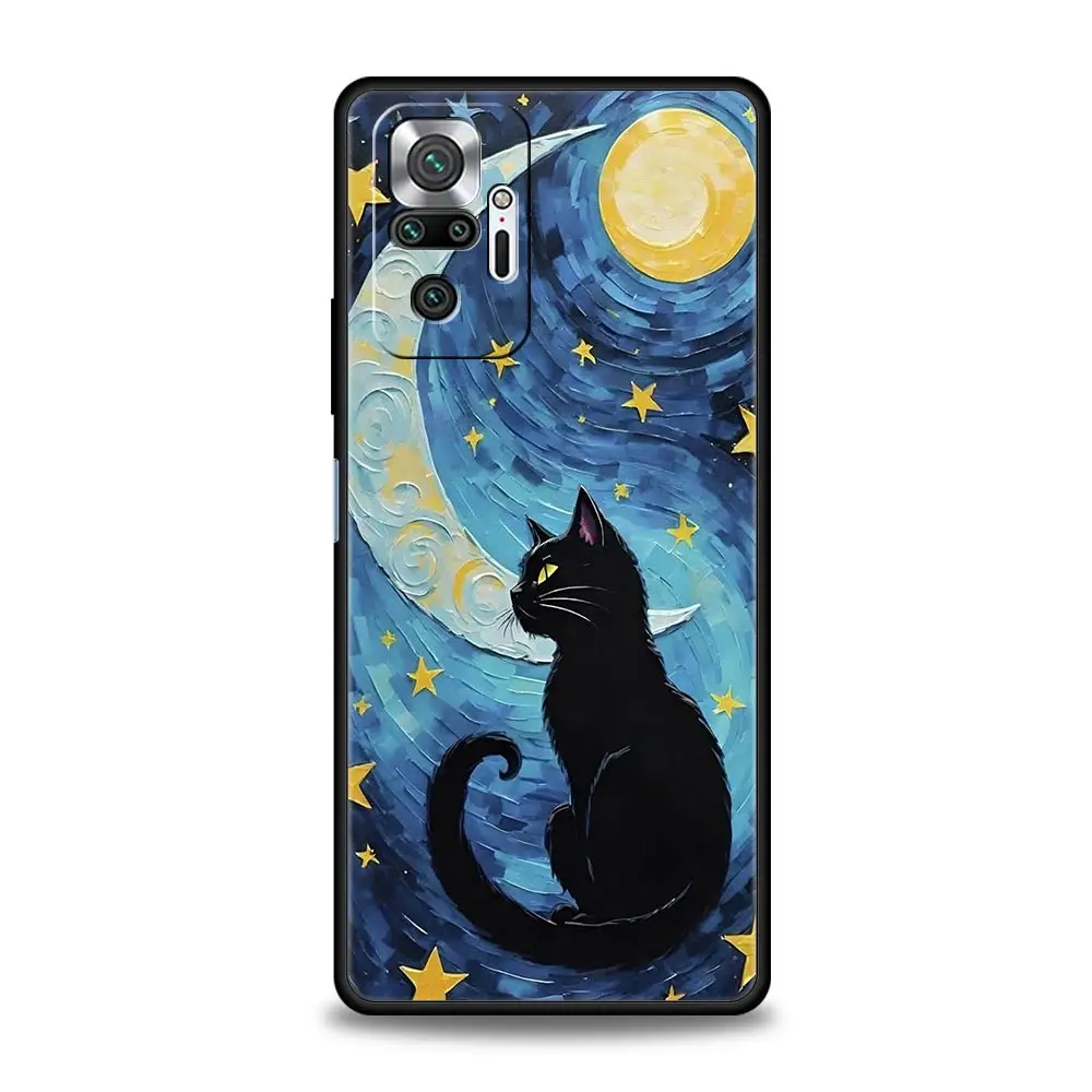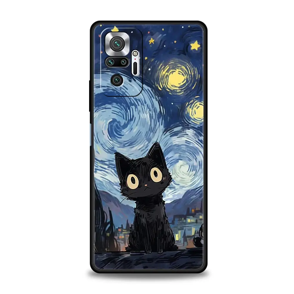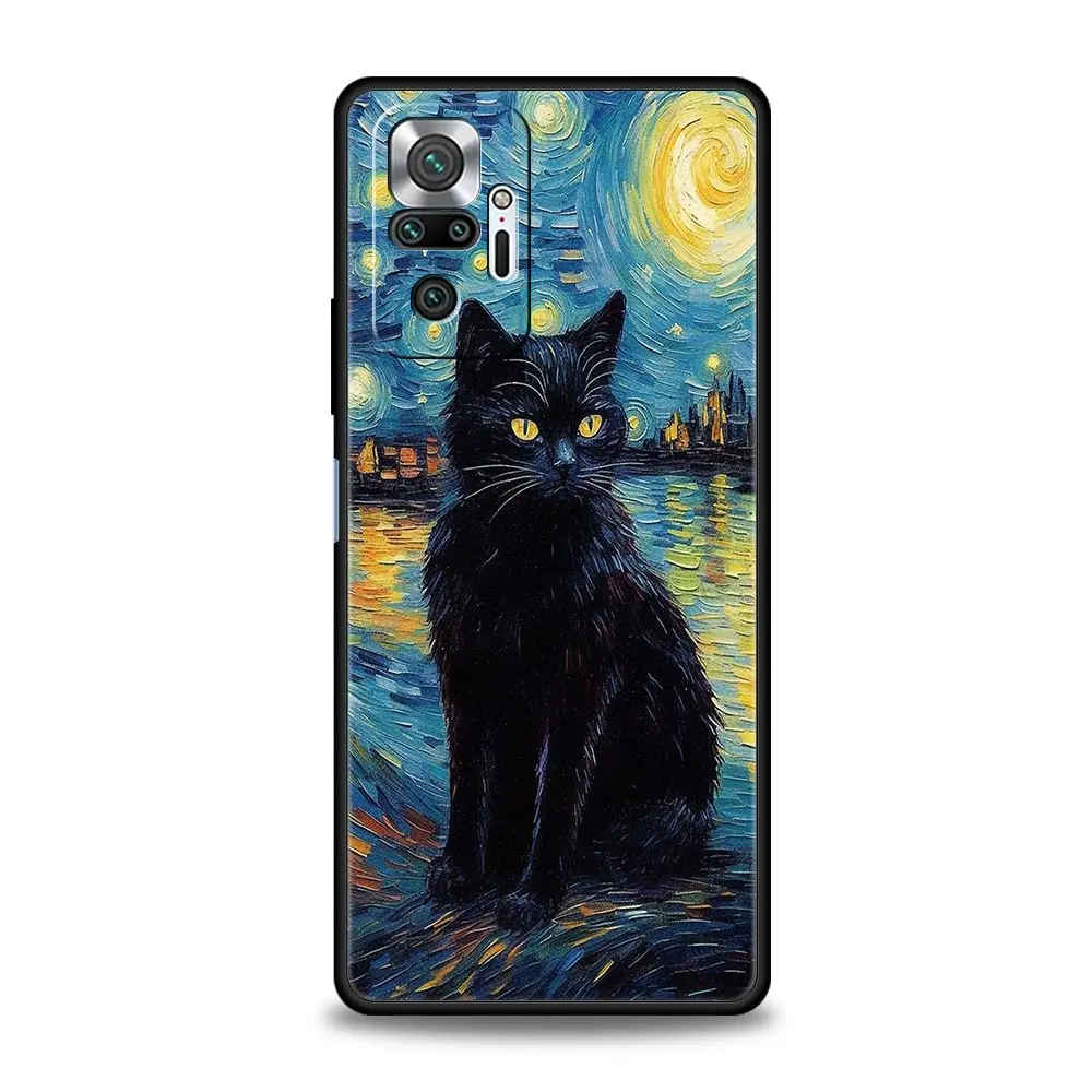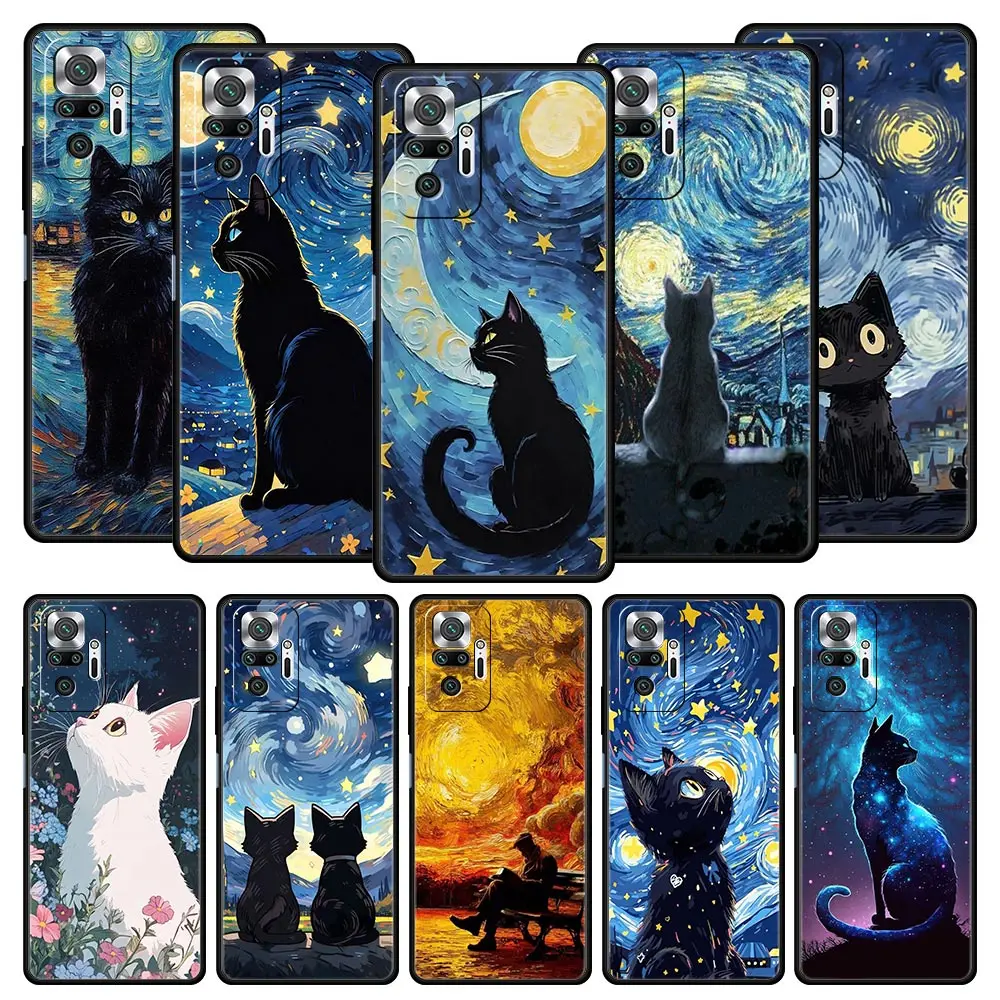 Comprar Funda de teléfono con cielo estrellado de gato Van Gogh para Xiaomi Redmi Note 14 13 12 5G 11 10 Pro Plus 4G 9S 9 14C 13C 12C 10C 9C 9A, funda suave de TPU