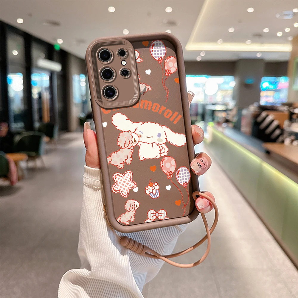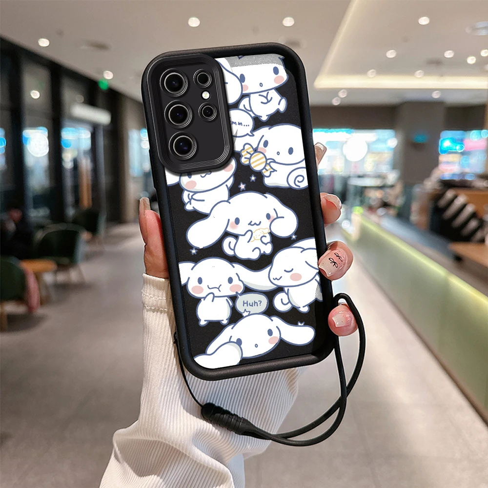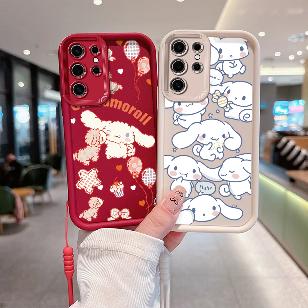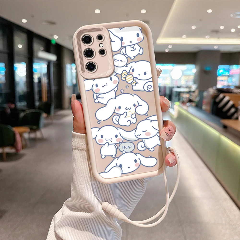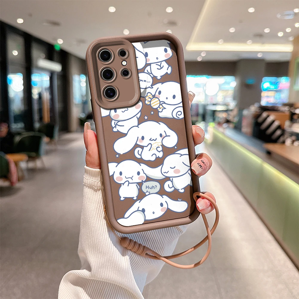 Funda de teléfono Cinnamoroll de dibujos animados para Samsung S24 S23 S22 S21 S20 Note 20 FE Plus Ultra 5G funda de silicona suave TPU con correa de mano