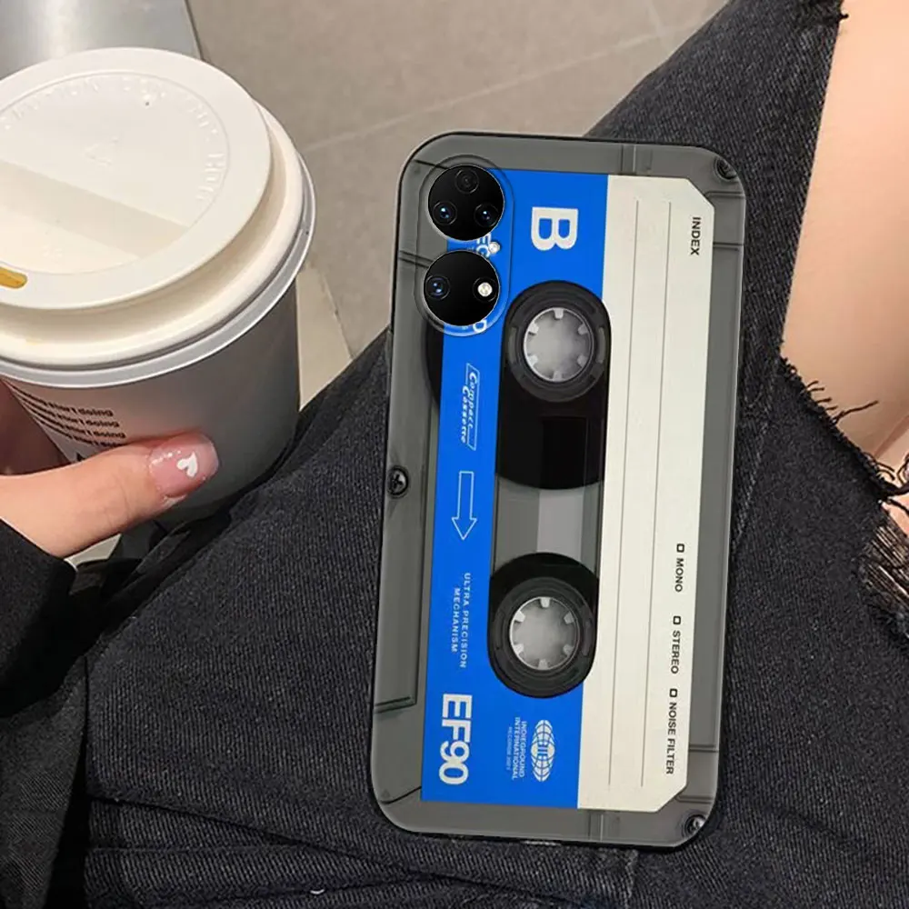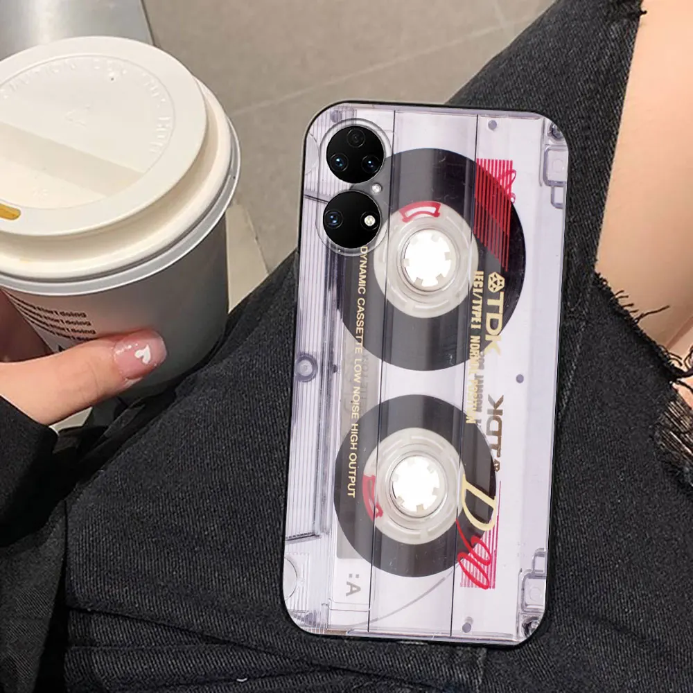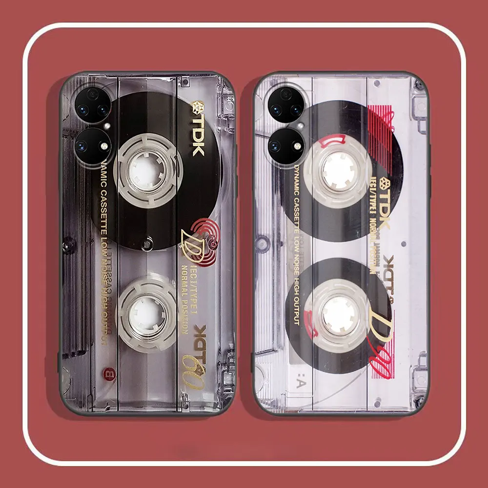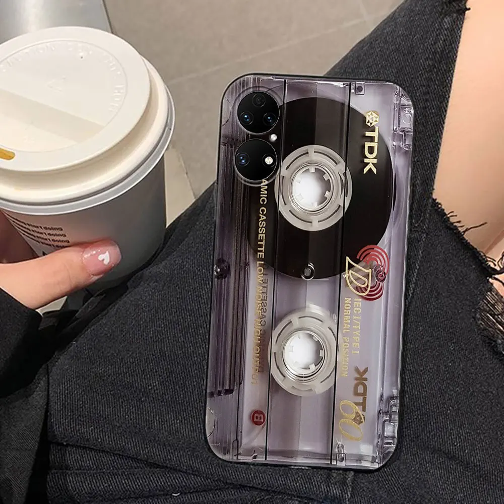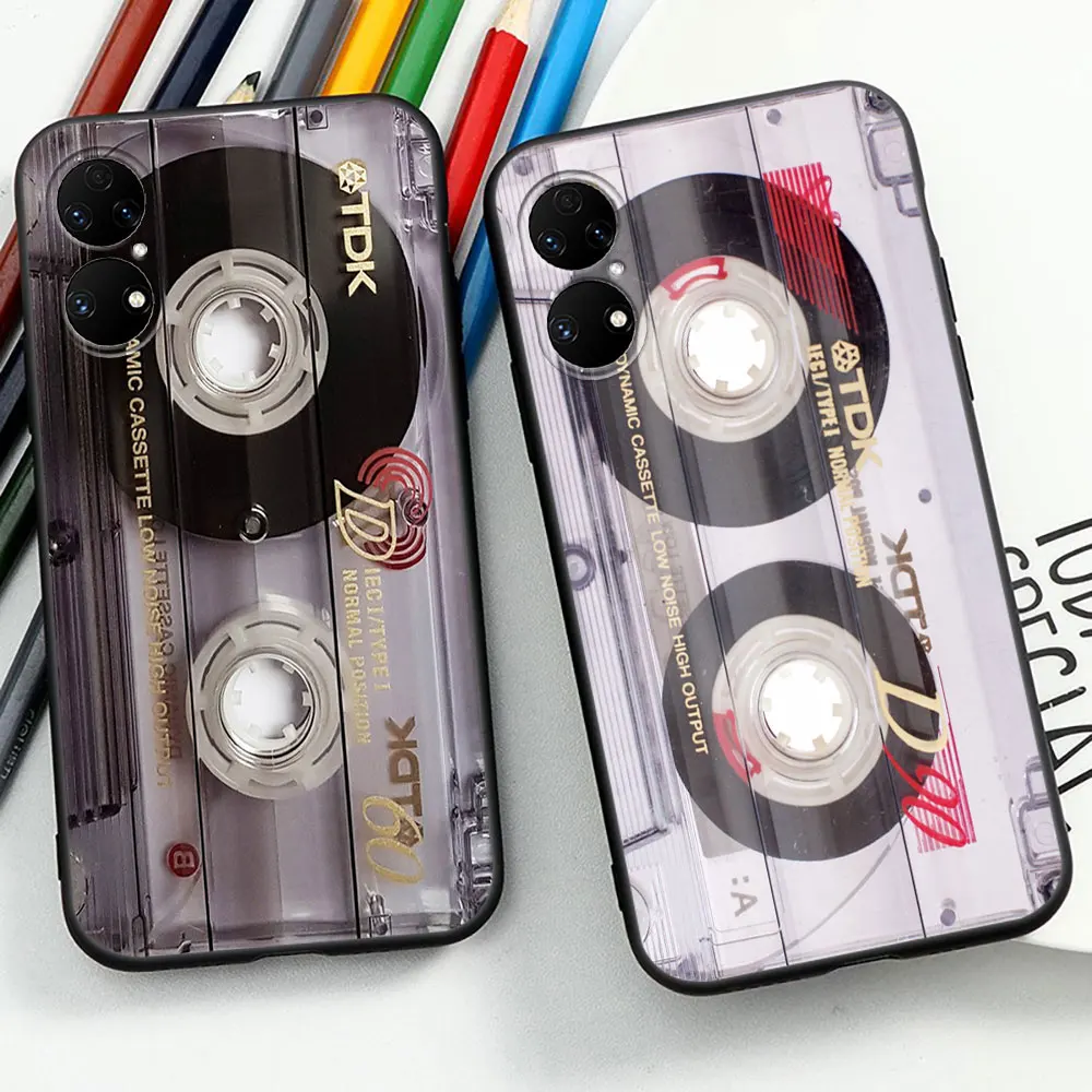 Cinta de radio magnética CassetteFunda de teléfono para Huawei P50 P40 P30 P20 P10 Mate 30 20 20X 10 9 Pro Plus Lite, funda trasera negra de silicona suave a prueba de golpes