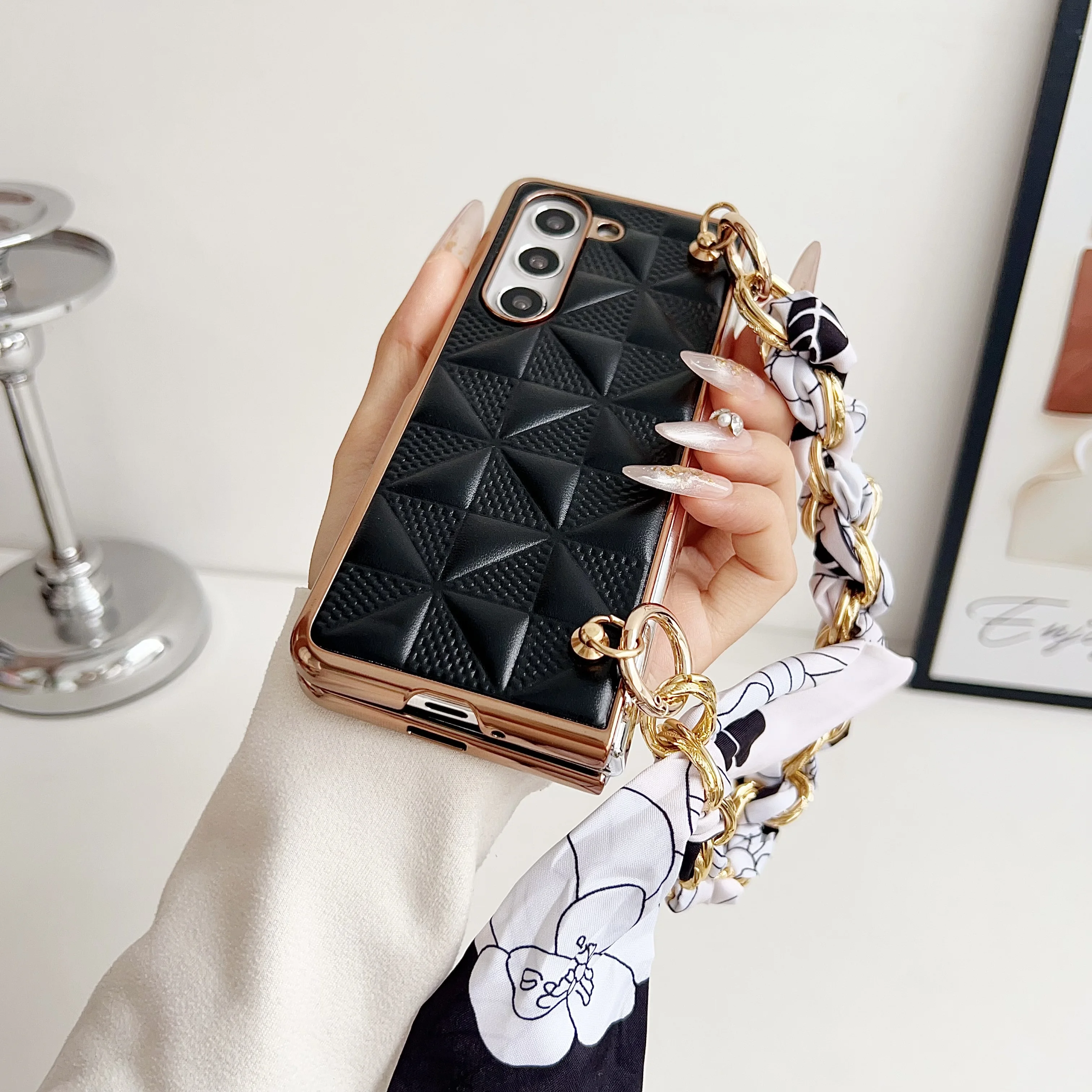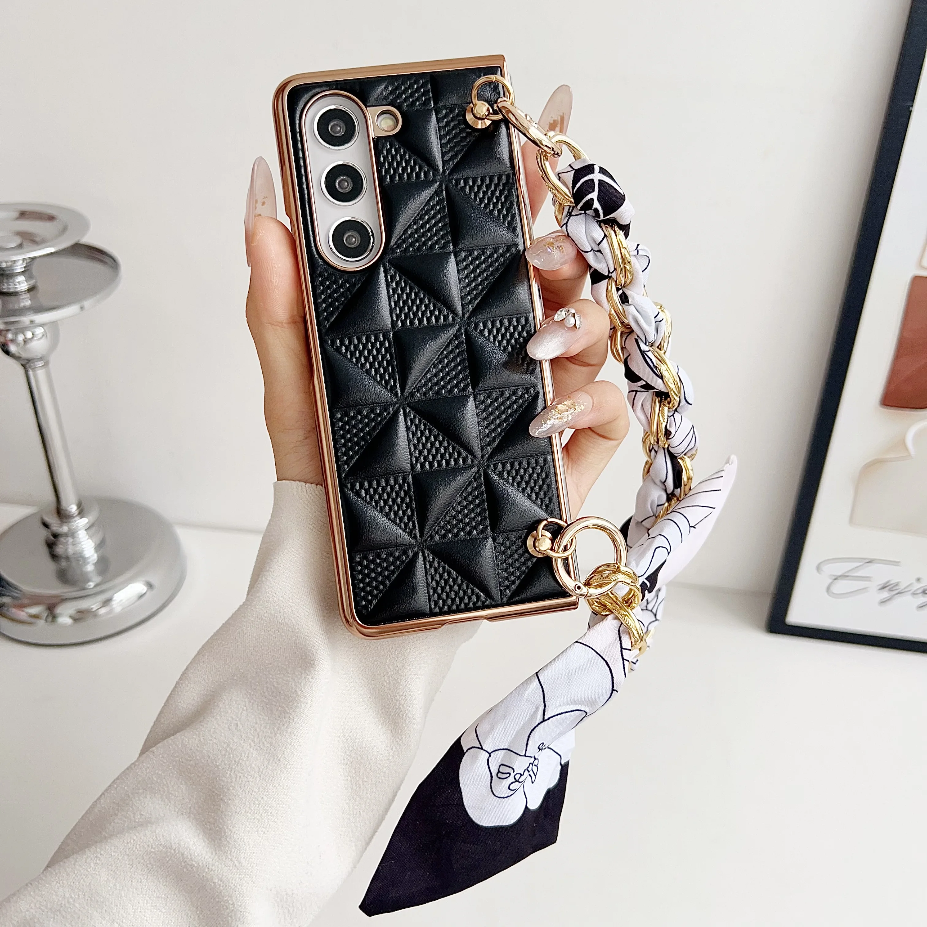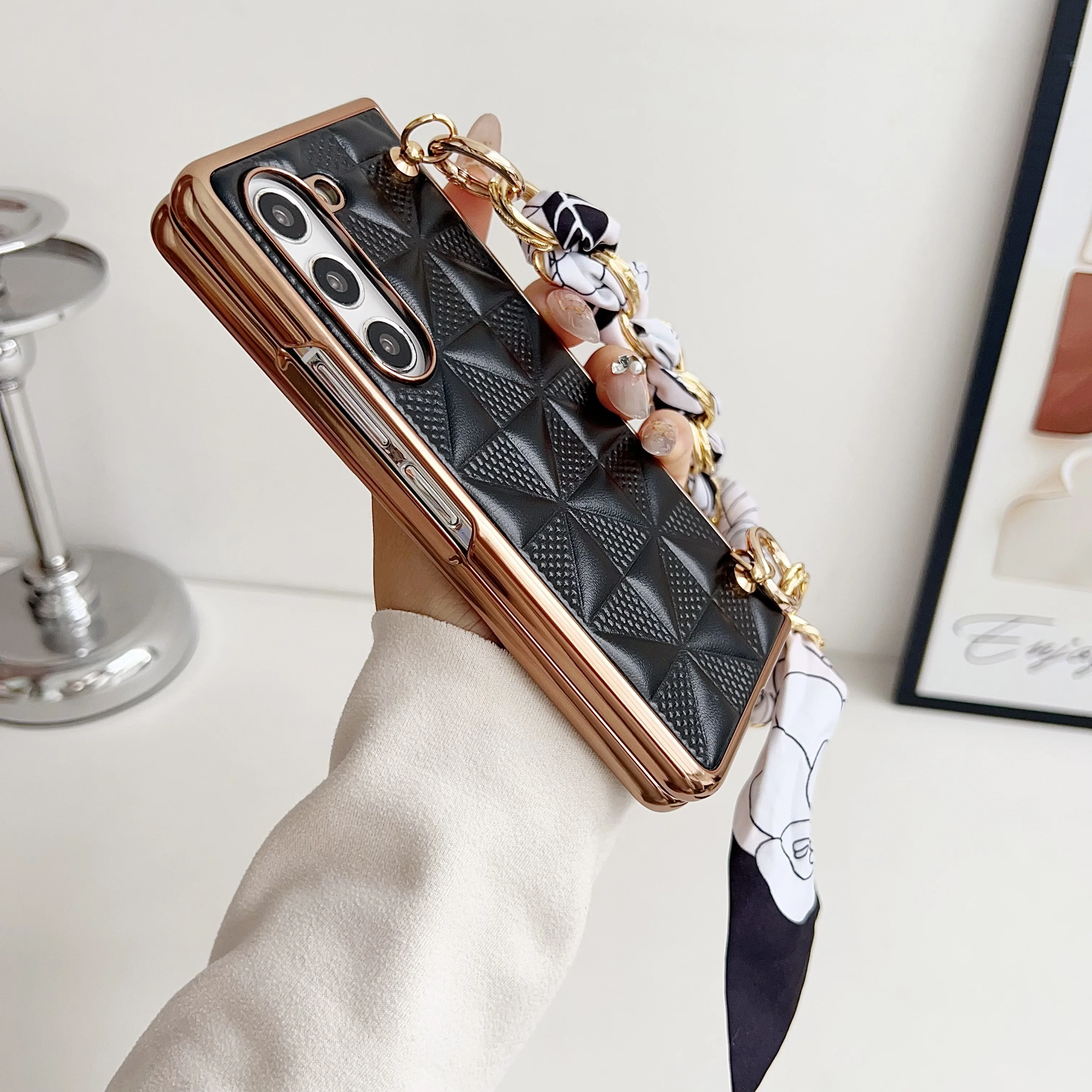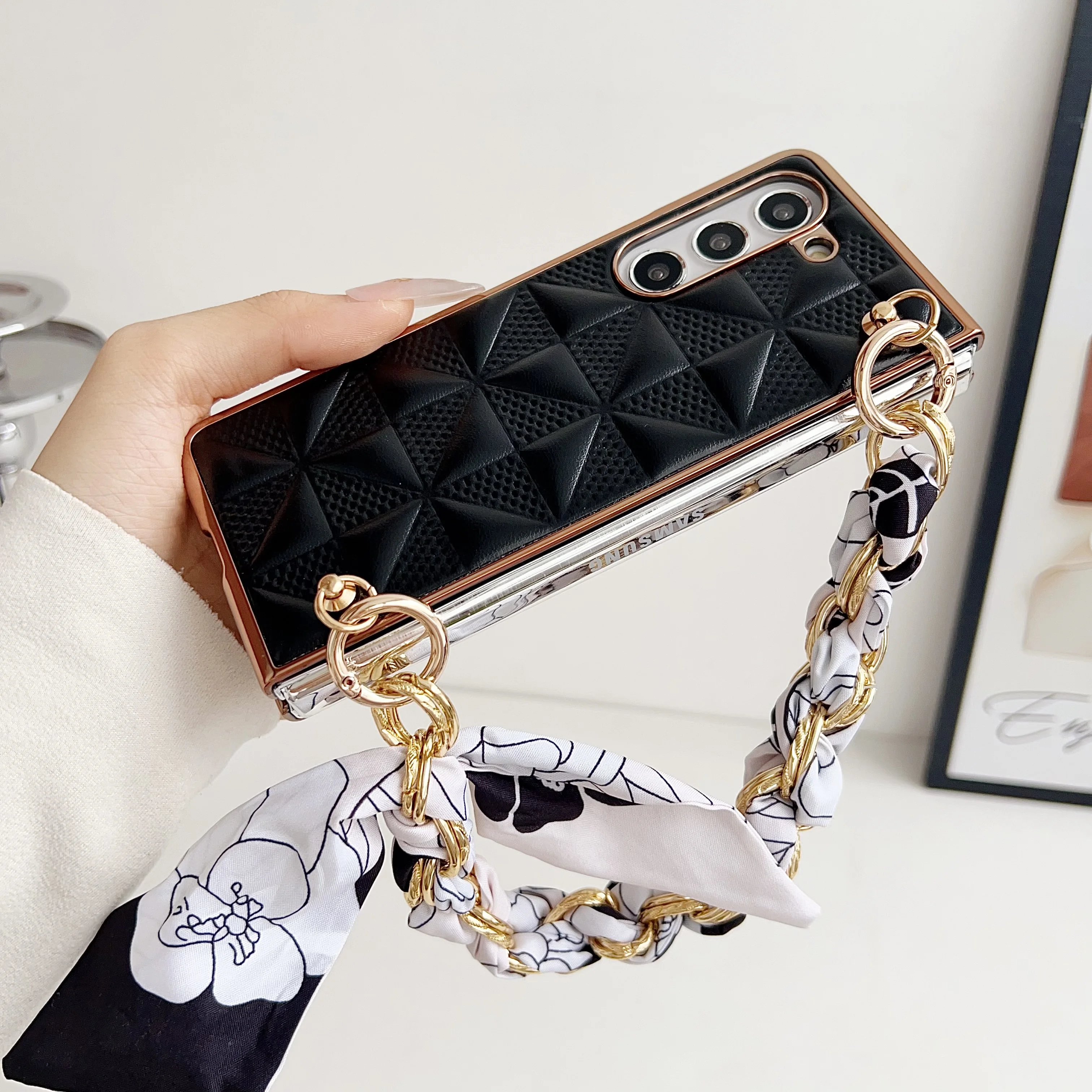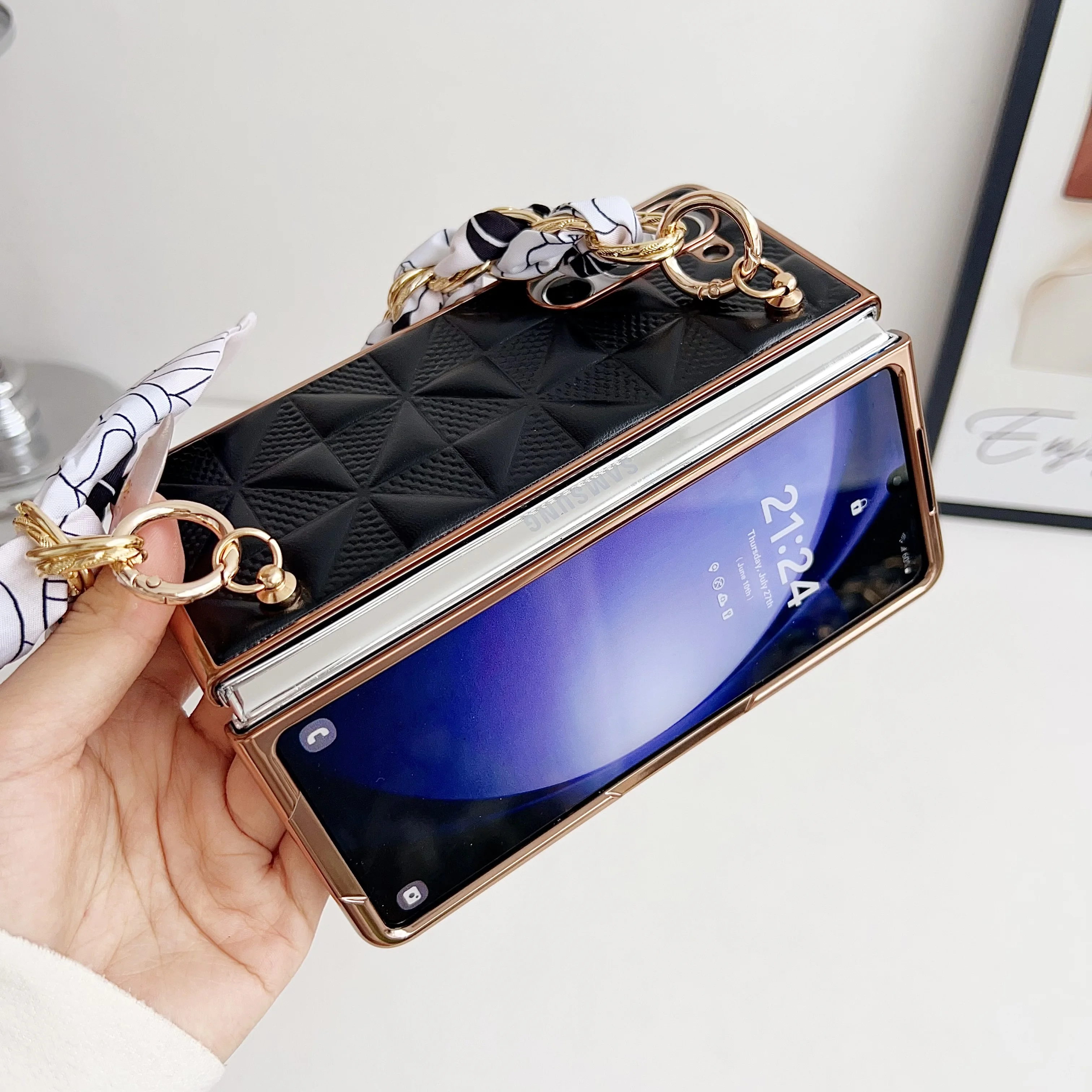 Funda de teléfono con cinta tejida a cuadros para Samsung Galaxy Z Fold 6 5 4, funda de teléfono plegable a prueba de golpes para Z Fold 4 5 6