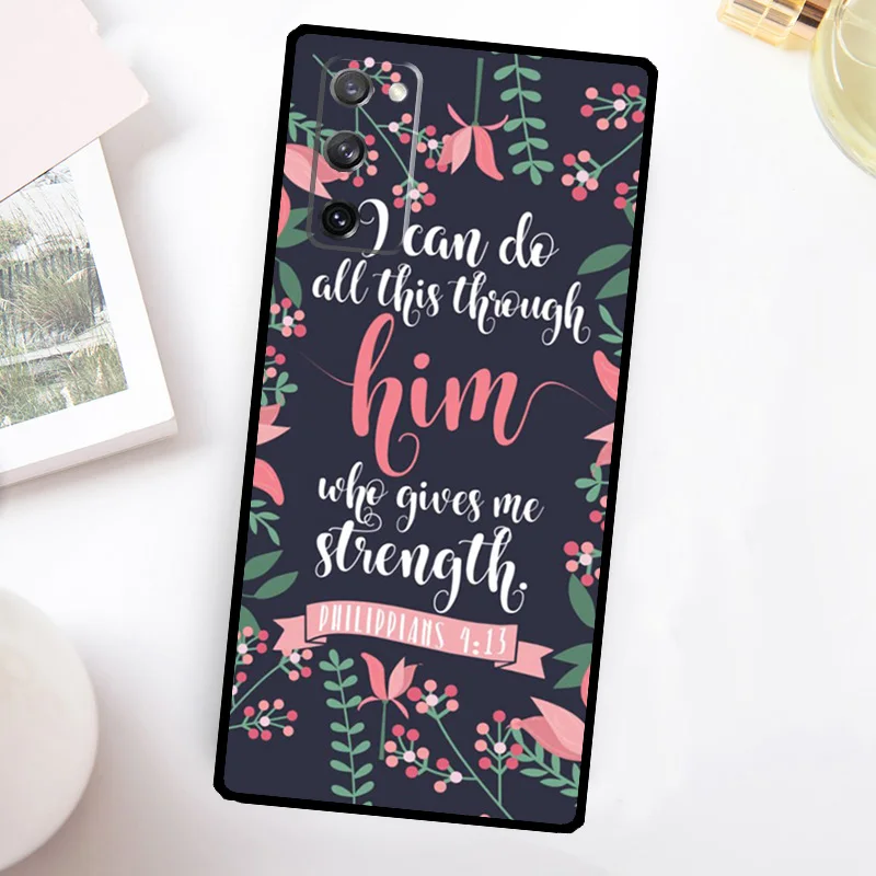 Funda de teléfono con cita cristiana versículo bíblico para Samsung Galaxy S23 S24 Ultra S22 S20 S21 FE Note 20 10 S8 S9 S10 Plus