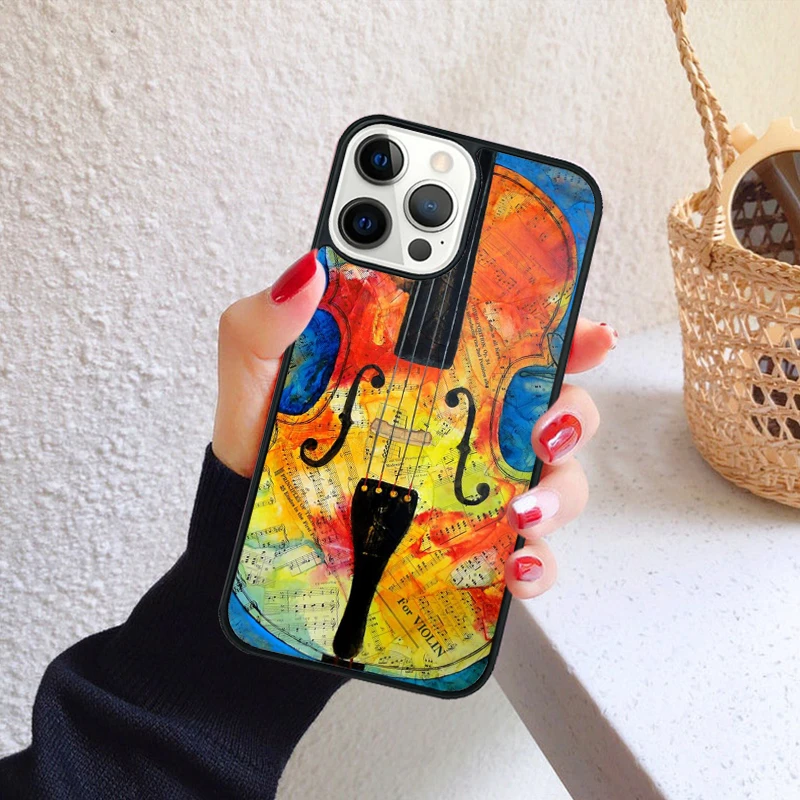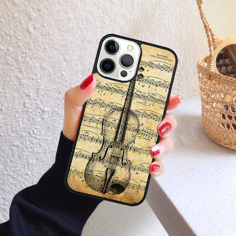 Funda de teléfono clásica con violín y notas musicales para iPhone 17 Air 16 15 14 12 13 PLUS 11 PRO MAX, funda trasera