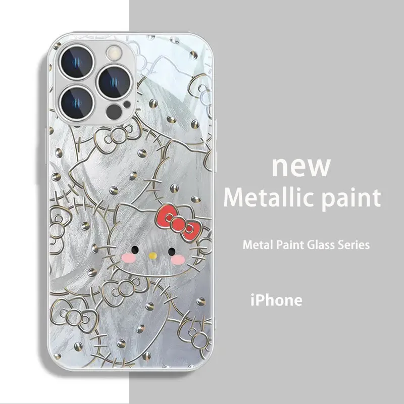 Funda de teléfono de Color metálico para IPhone, carcasa dura de cristal para modelos X, XR, XS, 16, 15, 14, 13, 12 Mini, 11 Pro Max, 7, 8, SE, 20 Plus