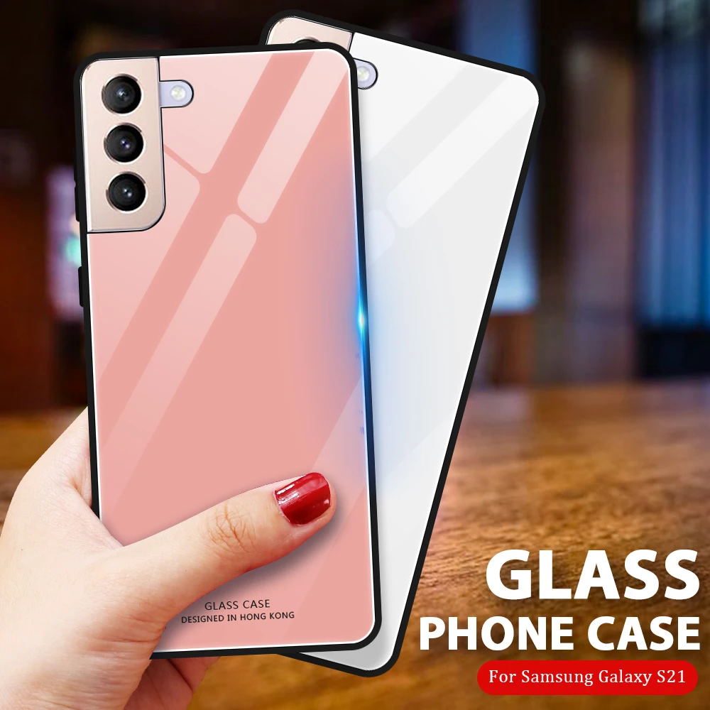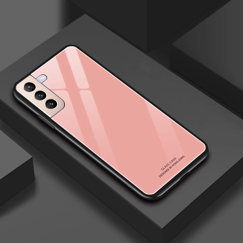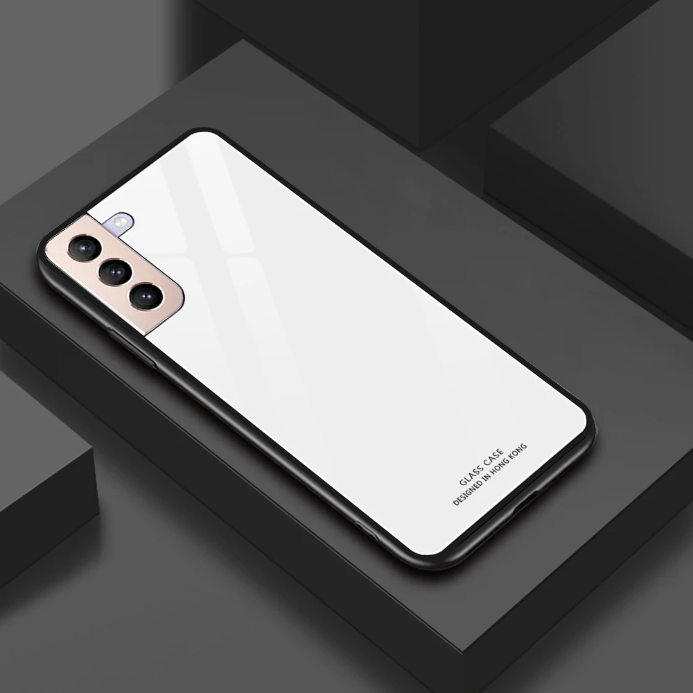 Comprar Funda de teléfono de Color sólido de lujo para Samsung Galaxy S22 S21 Plus Ultra FE, funda de vidrio templado para Galaxy S21 Plus s20 FE