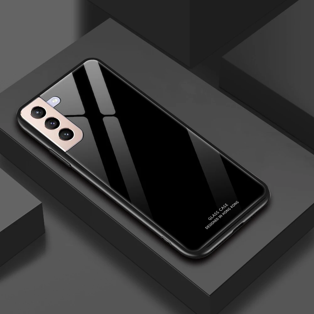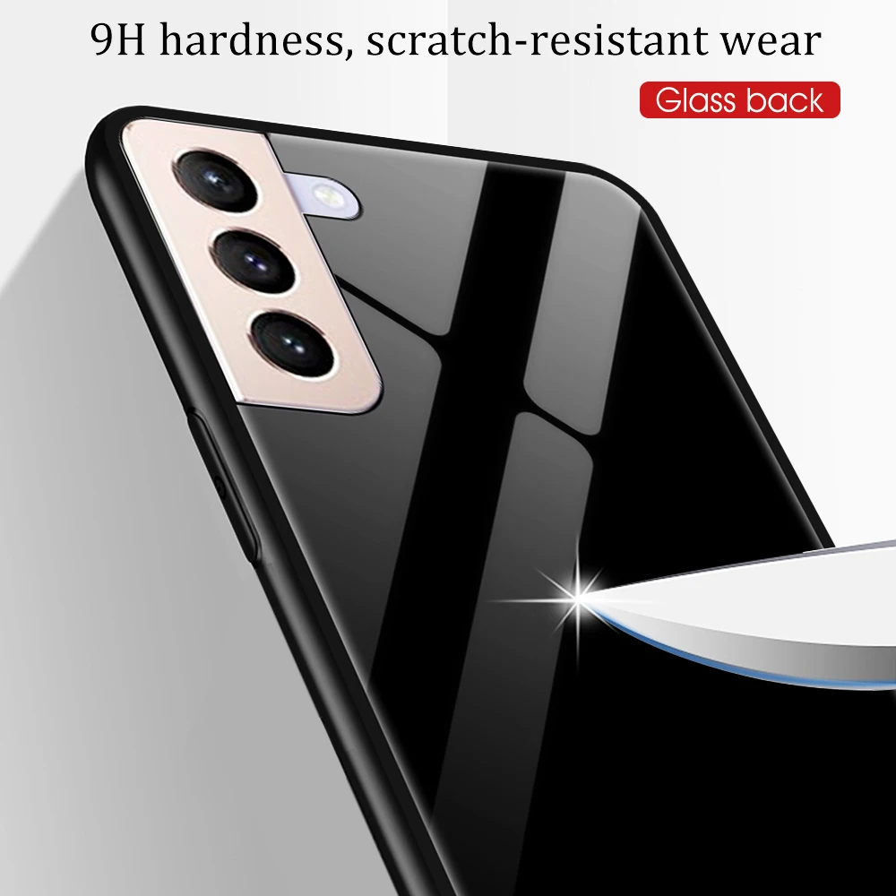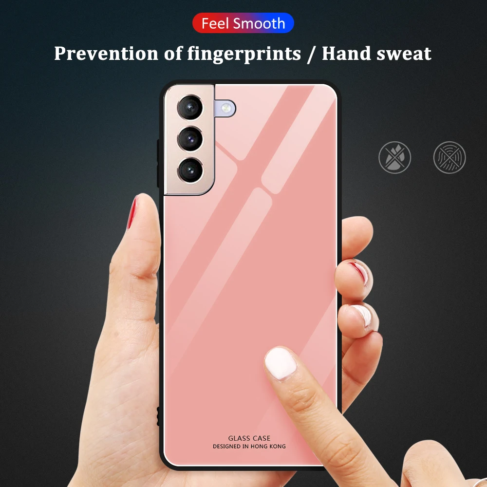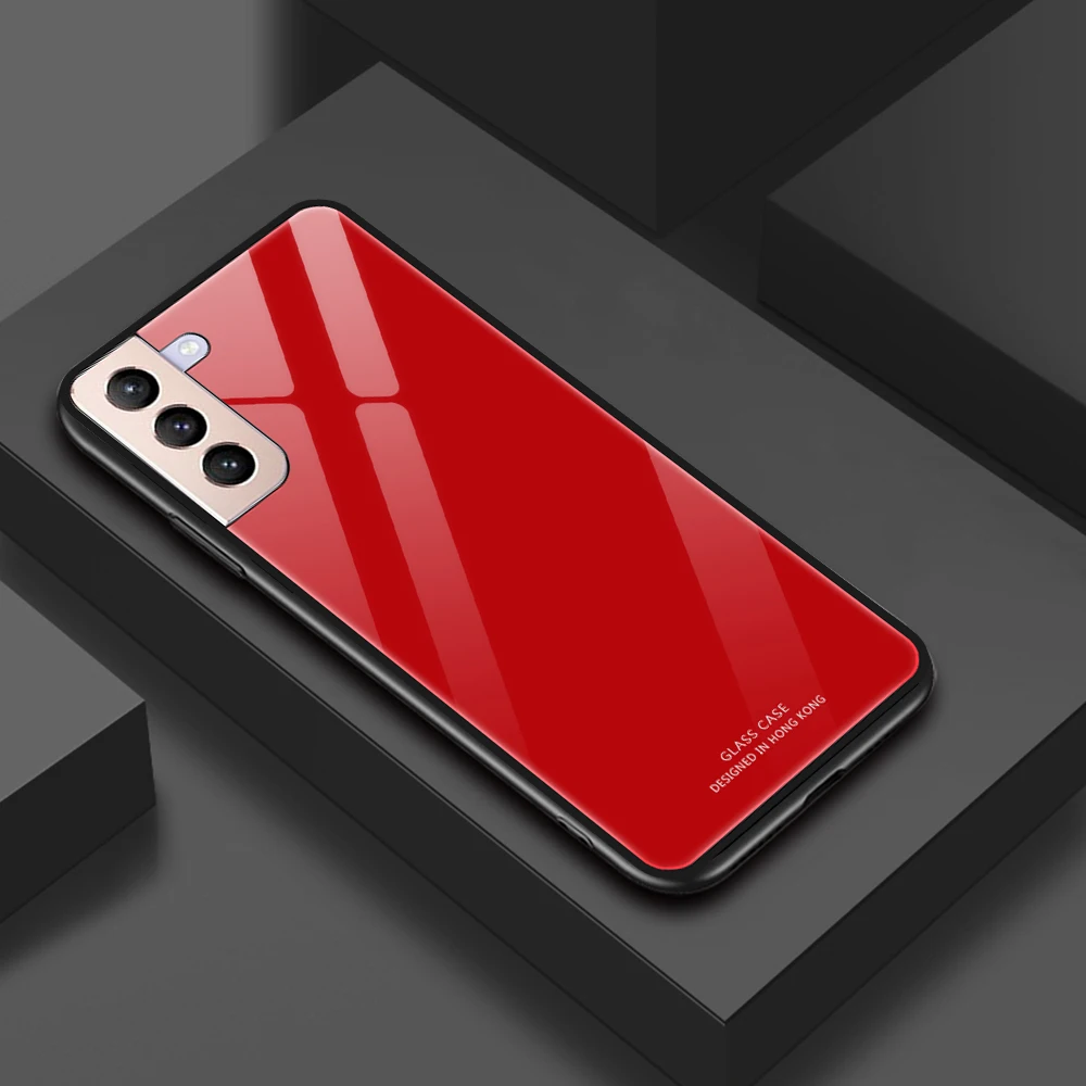 Comprar Funda de teléfono de Color sólido de lujo para Samsung Galaxy S22 S21 Plus Ultra FE, funda de vidrio templado para Galaxy S21 Plus s20 FE