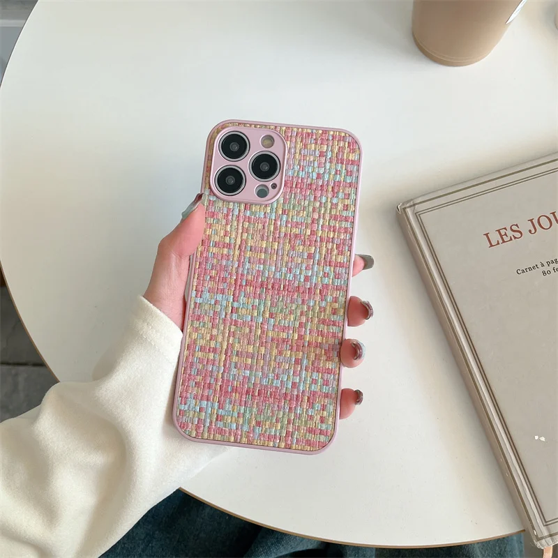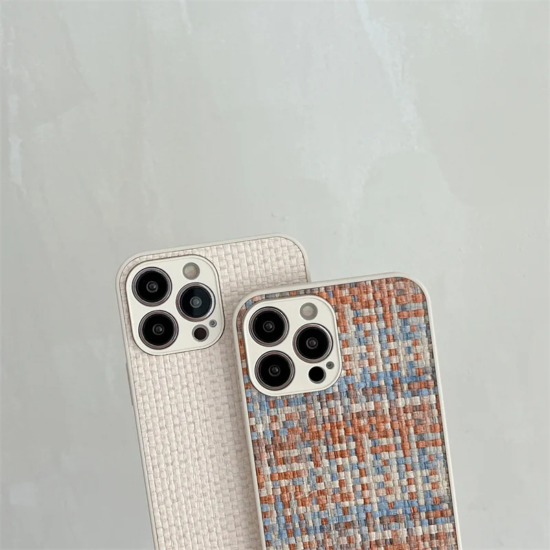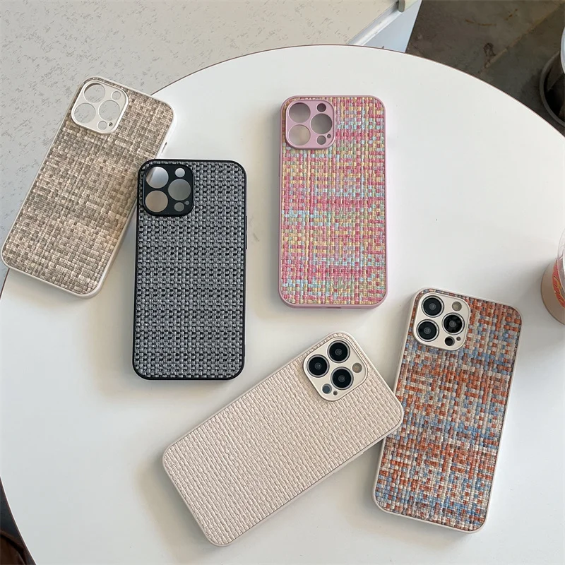 Funda de teléfono de Color transpirable tejido de tela de rejilla de lujo para iPhone 15 14 13 12 11 Pro Max X XR XS Max SE 2 7 8 Plus funda suave