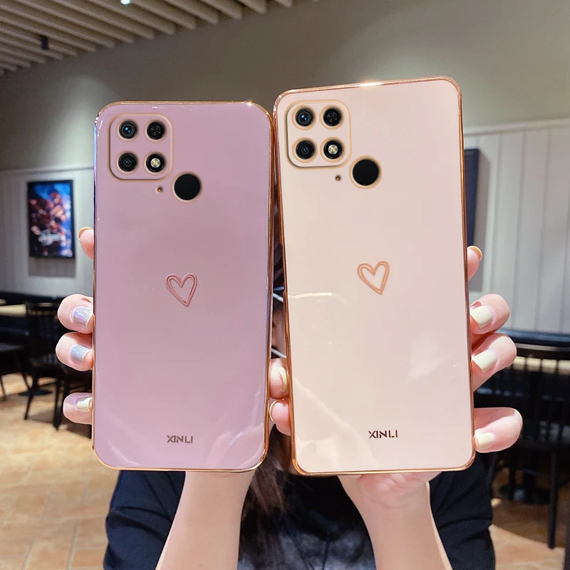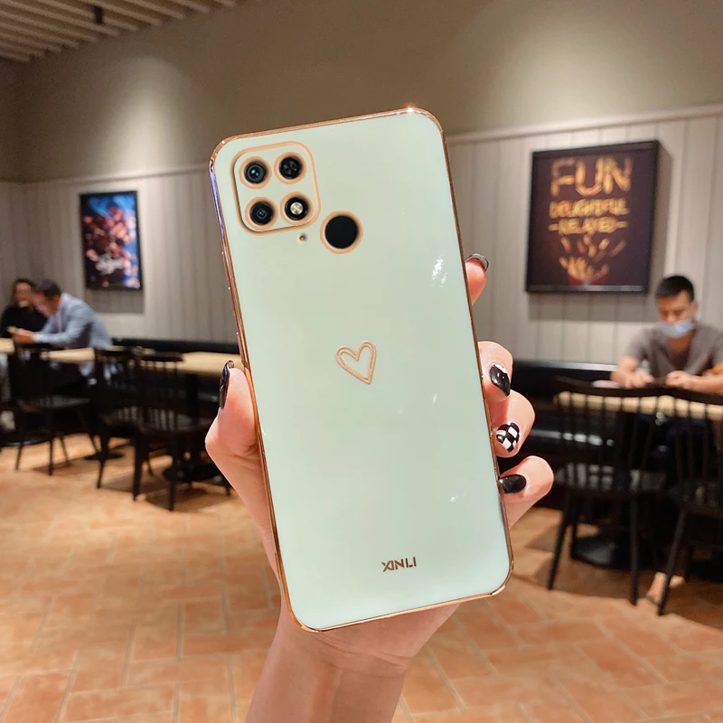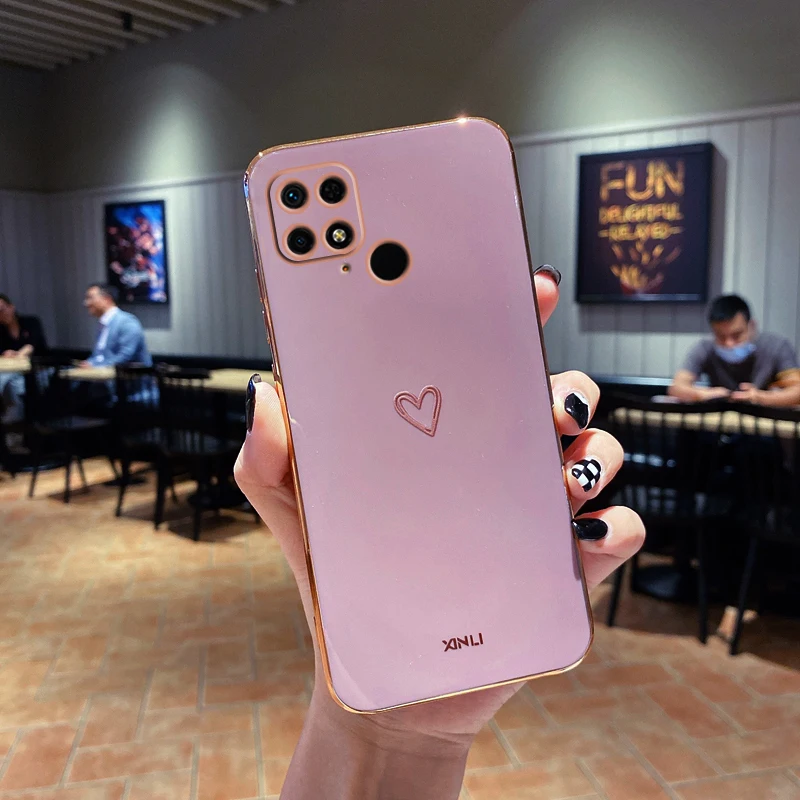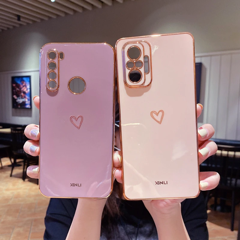 Comprar Funda de teléfono con corazón de amor chapado cuadrado para Xiaomi Mi Poco C40 Global C 40 PocoC40 M4 X4 Pro 4G 5G M3 X3 Nfc Pro F3 Poko