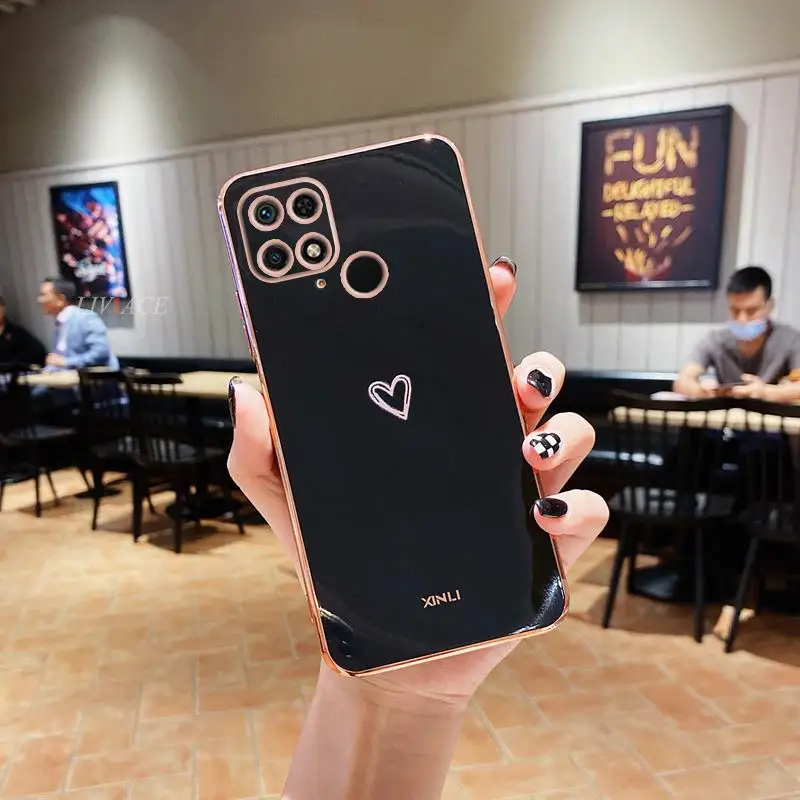 Comprar Funda de teléfono con corazón de amor chapado cuadrado para Xiaomi Mi Poco C40 Global C 40 PocoC40 M4 X4 Pro 4G 5G M3 X3 Nfc Pro F3 Poko