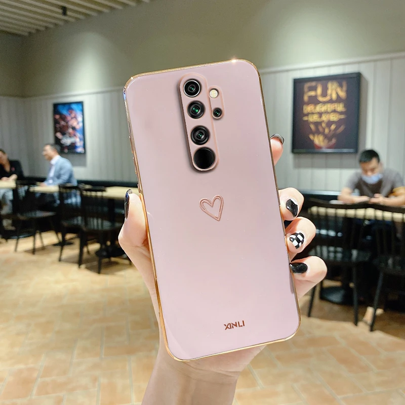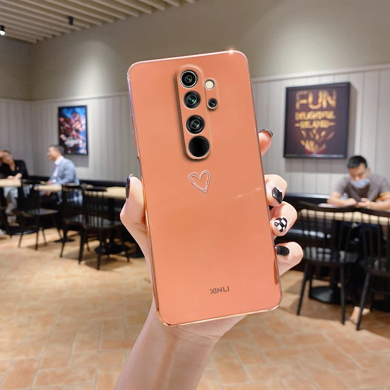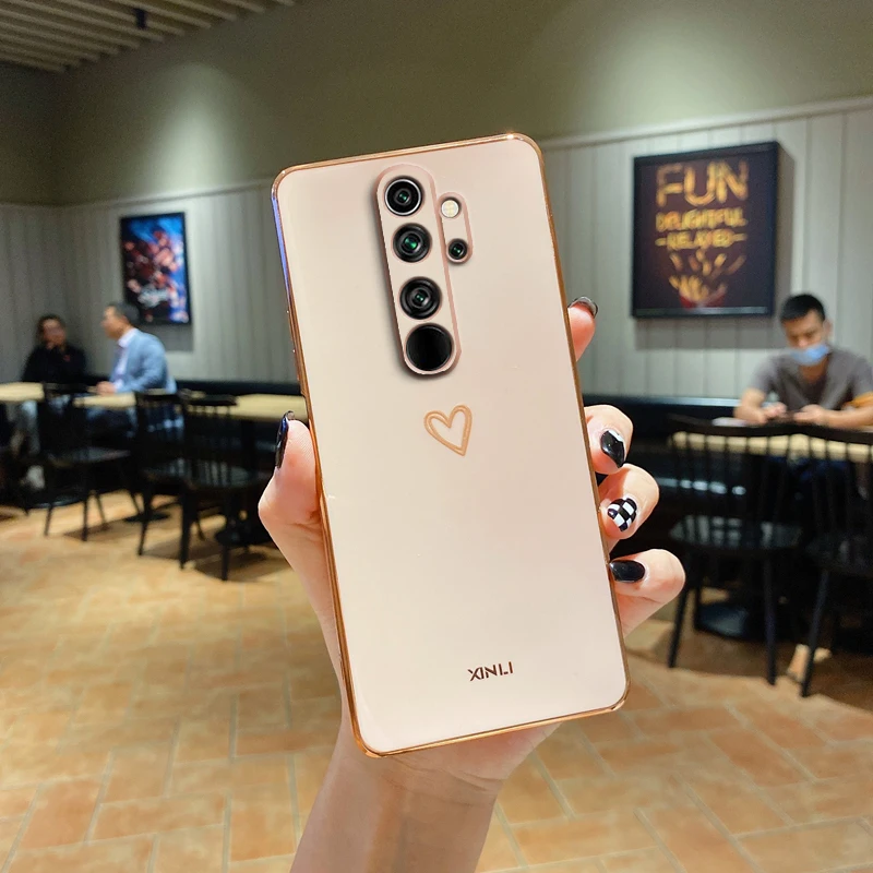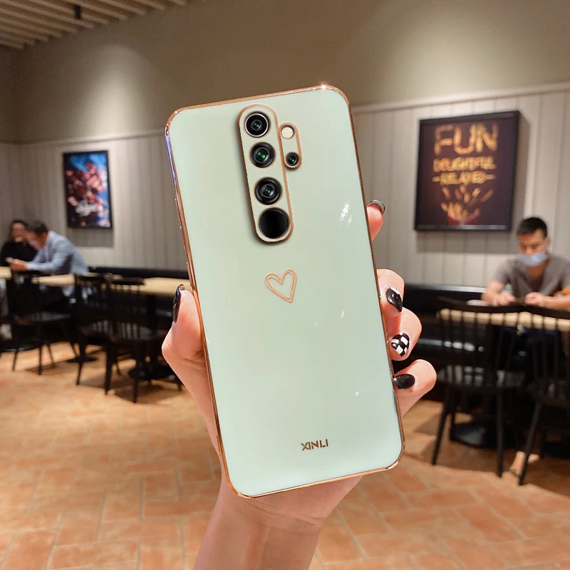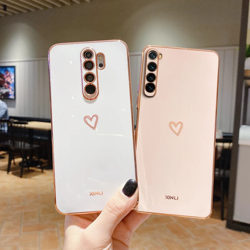 Square Plating Cute Love Heart Phone Case For Xiaomi Redmi 10C 10 9 9a 9T K20 Redmi10 C Redmi Note 10 9 8 7 Pro Max Luxury Cover