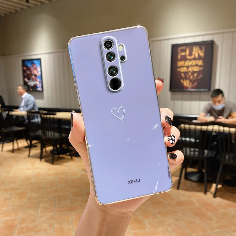 Comprar Funda de teléfono con corazón de amor, cubierta de lujo con revestimiento cuadrado para Xiaomi Redmi 10C, 10, 9, 9a, 9T, K20, Redmi10 C, Redmi Note 10, 9, 8, 7 Pro Max