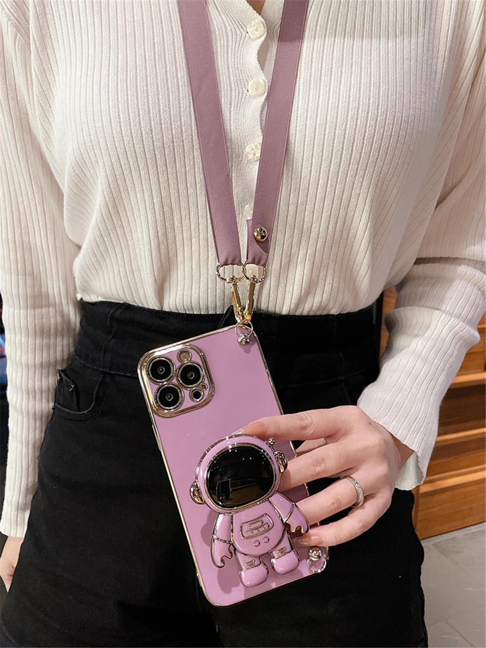 Para Xiaomi 12 Lite Astronaut Crossbody Lanyard Phone Holder Case para Xiaomi 11 Lite 5G NE 11T 12T Poco X3 Pro C40 Stand Cover