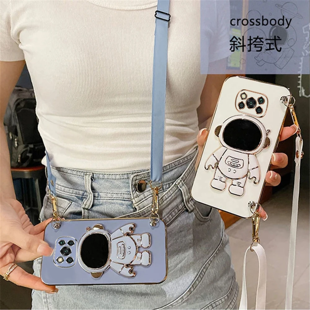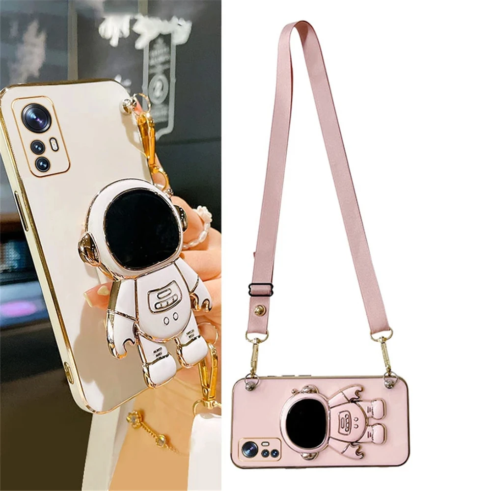 Para Xiaomi 12 Lite Astronaut Crossbody Lanyard Phone Holder Case para Xiaomi 11 Lite 5G NE 11T 12T Poco X3 Pro C40 Stand Cover