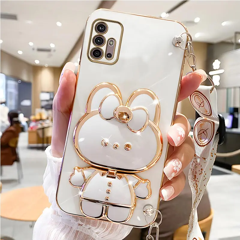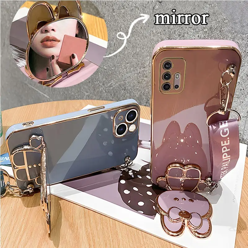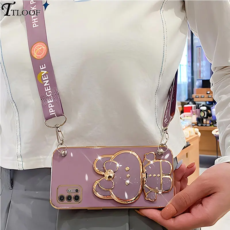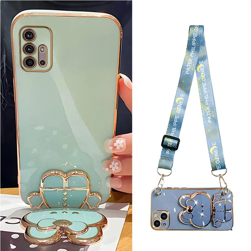Funda de soporte de teléfono con cordón cruzado de espejo para Motorola Moto G22 G23 G52 G73 G60s G8 G9 G50 G30 G20 G10 G60, funda con correa de soporte
