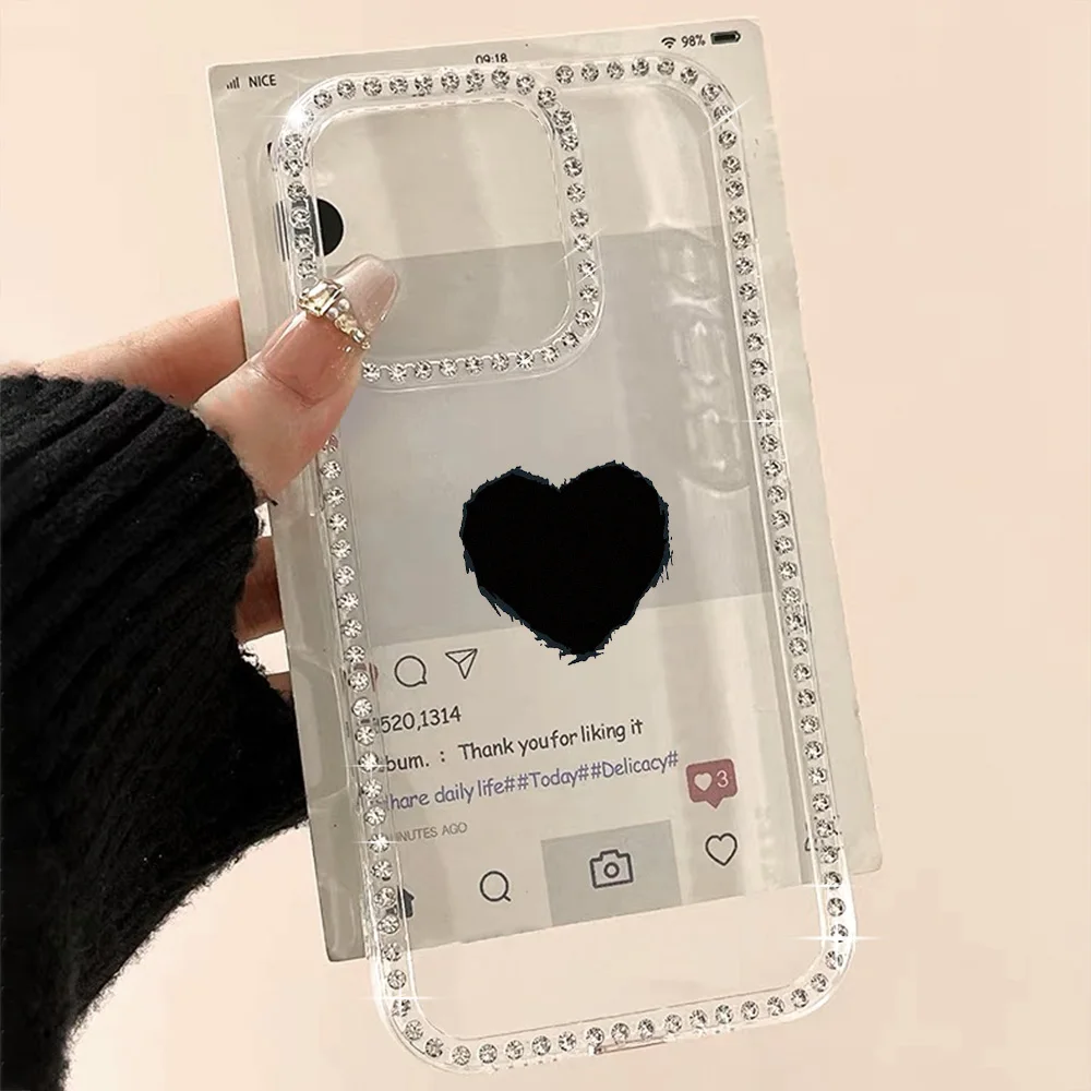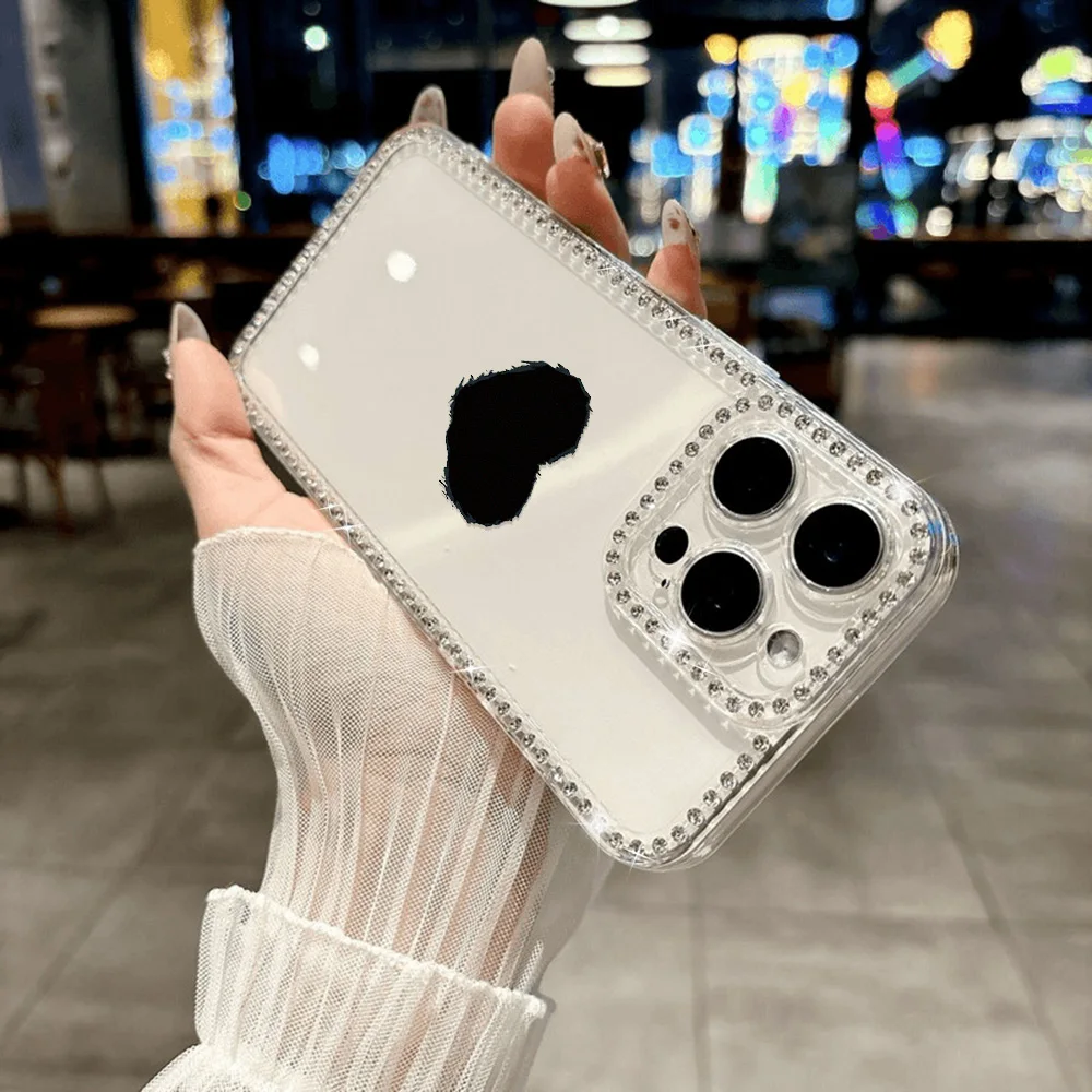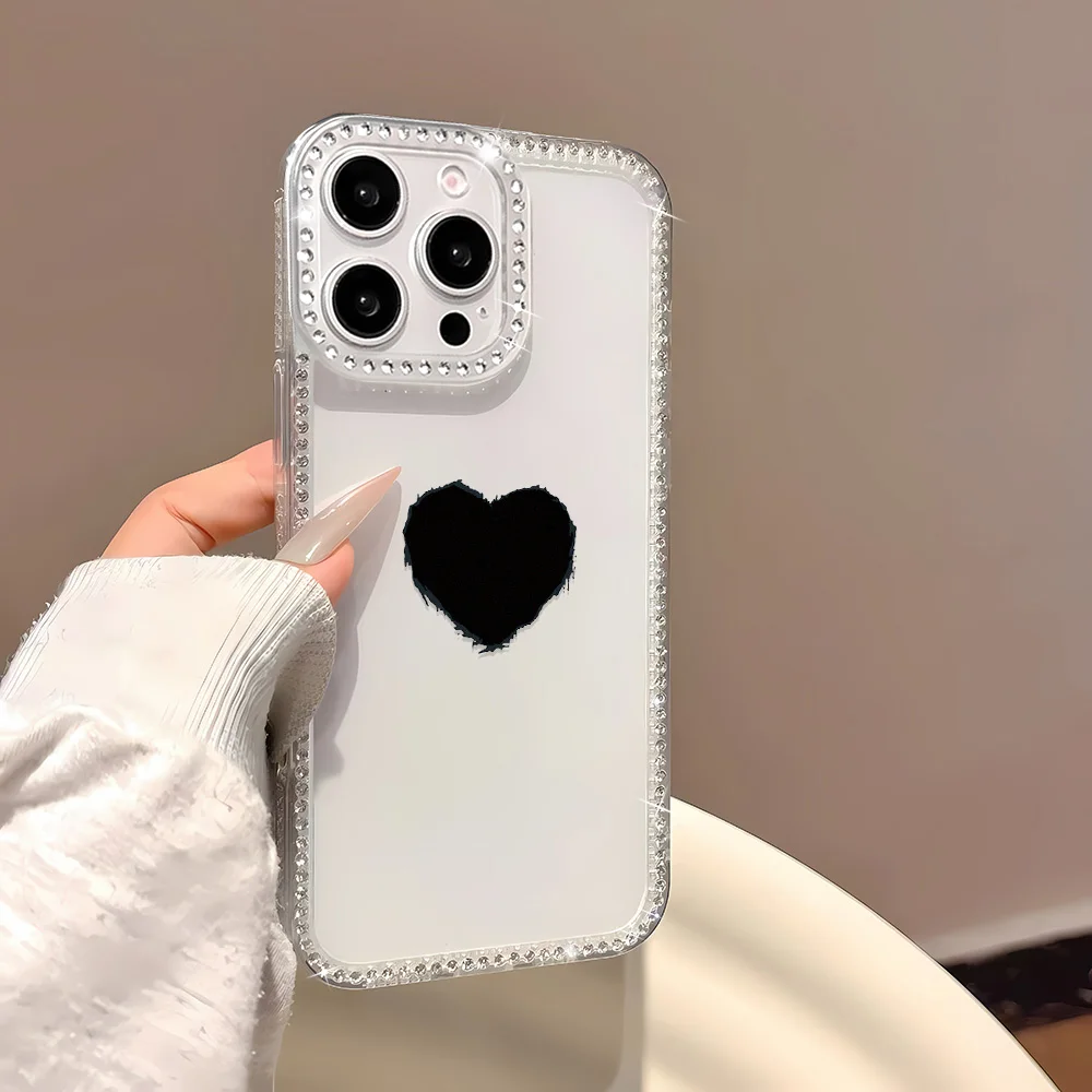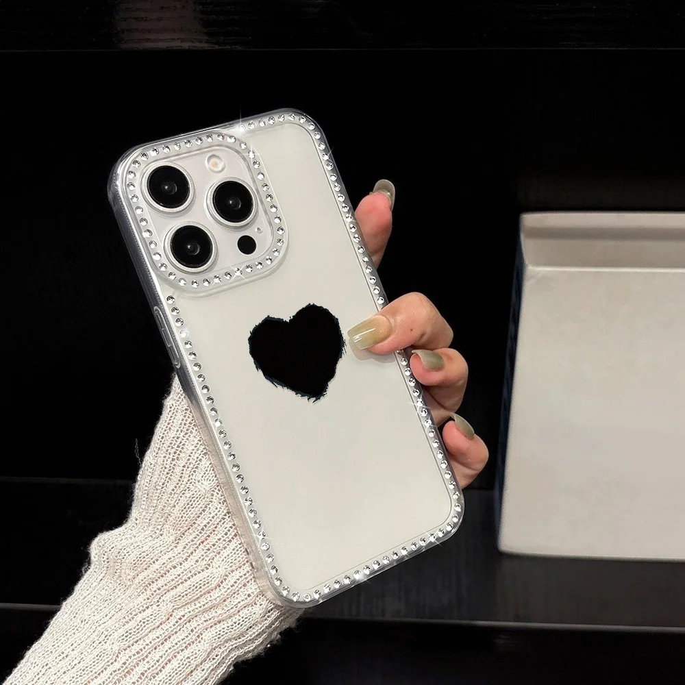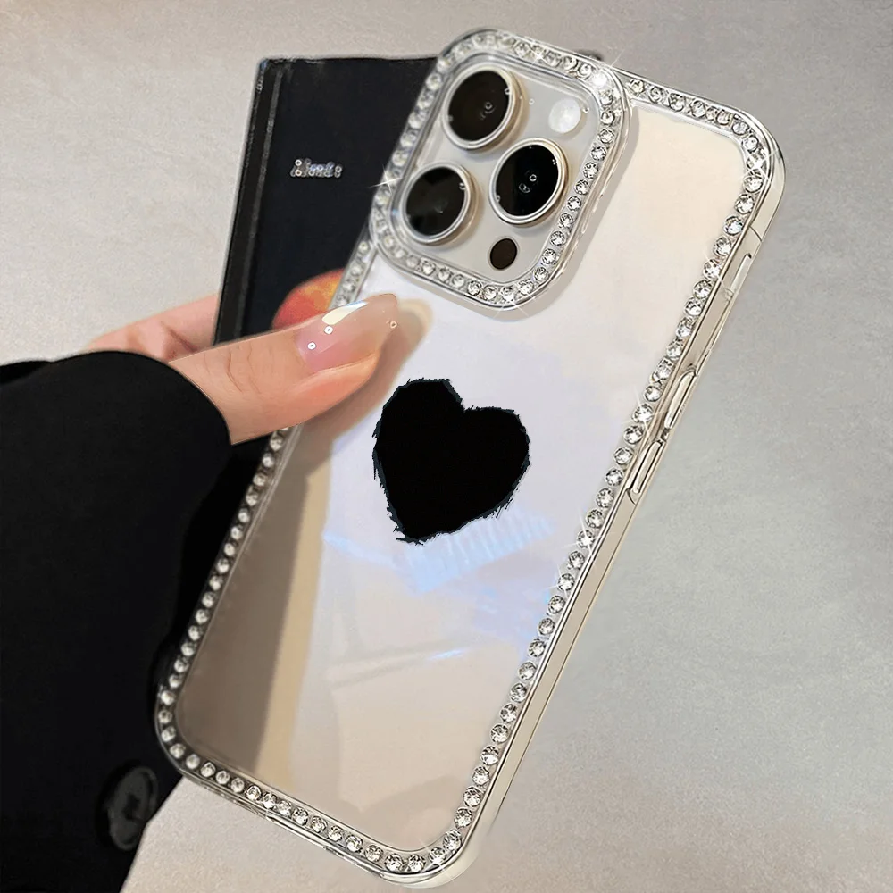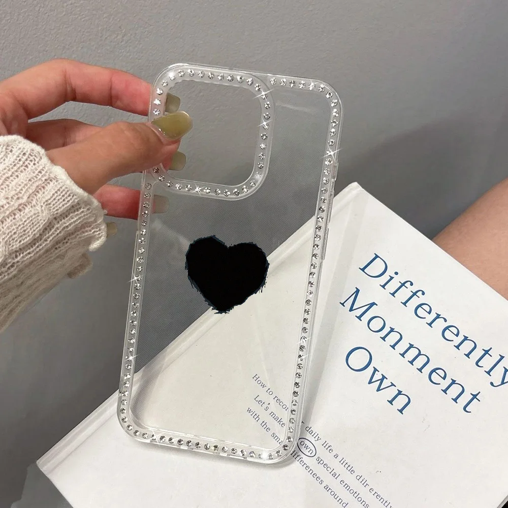 Funda de teléfono con cordón de diamante para iPhone 17 16 Pro Max 11 13 15 14 12 Air 17promax, Funda transparente a prueba de golpes con forma de corazón de amor