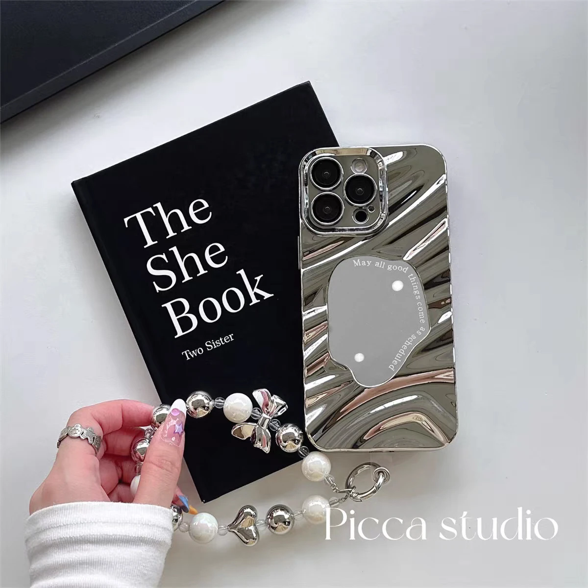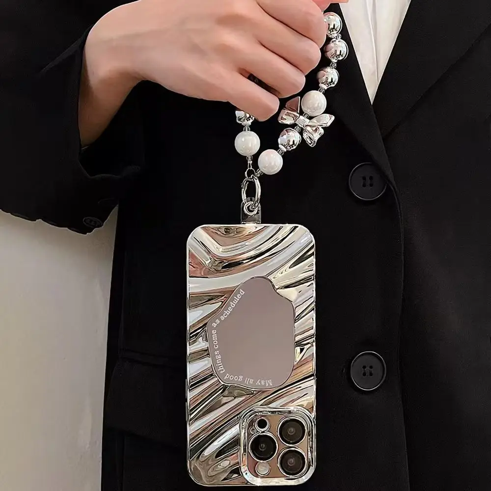 Funda de teléfono con cordón de espejo de maquillaje para iPhone 16 Pro Max 13 11 15 14 12 17 Air 17promax 16promax Funda de silicona a prueba de golpes