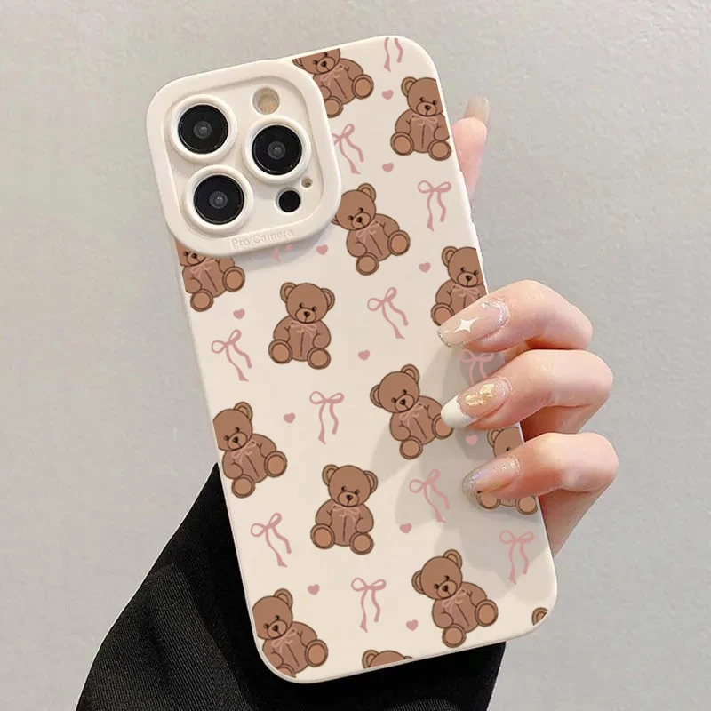 Funda de teléfono con cordón de perla blanca y oso con lazo bonito para iPhone 17 16 15 14 13 12 11 Pro Max 7 8 Plus 16E 17Air X XR XS funda suave