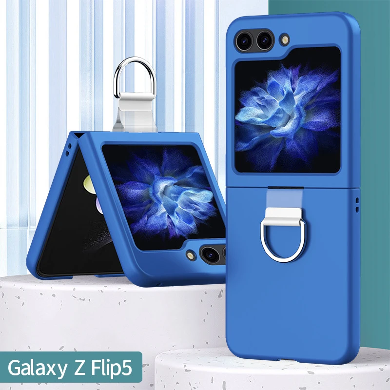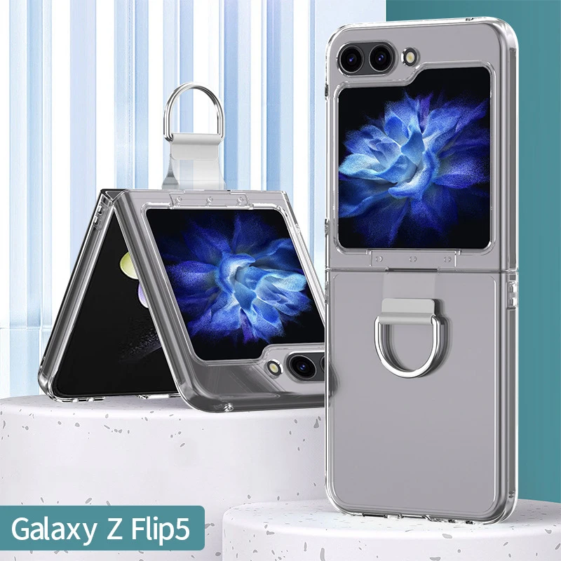 Funda de teléfono con cordón de seda y soporte de anillo plegable de moda de lujo para Samsung Galaxy Z Flip 5 4 3 Flip5 cubierta acrílica dura a prueba de golpes