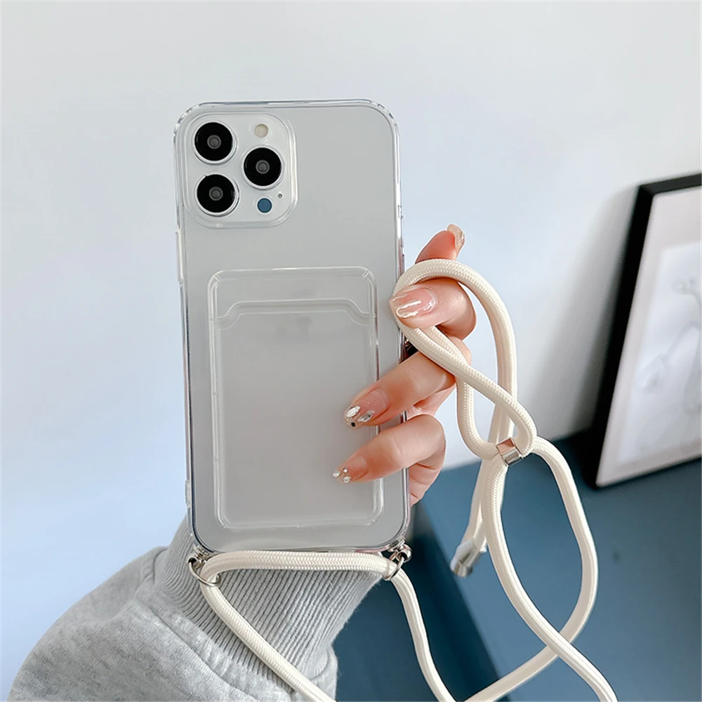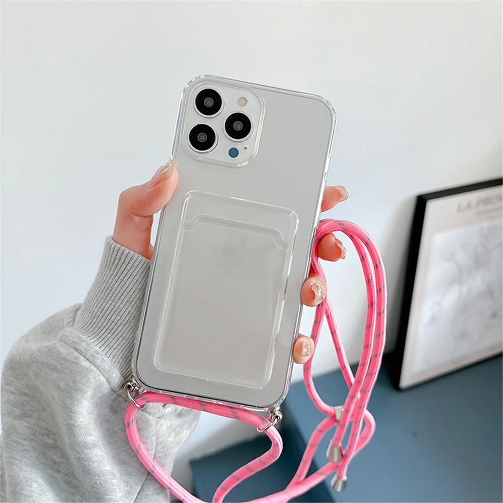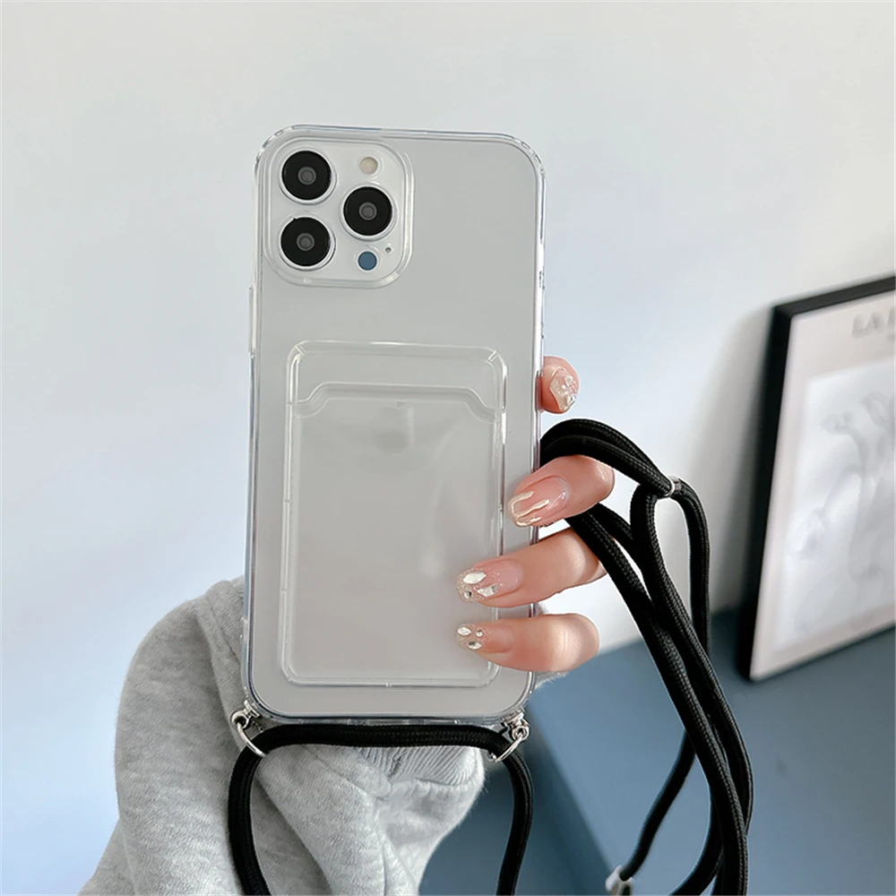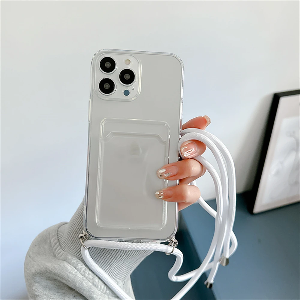 Comprar Funda de teléfono con cordón transparente para iPhone, carcasa trasera de protección de lente de silicona suave para iPhone 14, 13, 12, 11 Pro Max, XS, XR, X, 6, 7, 8 Plus