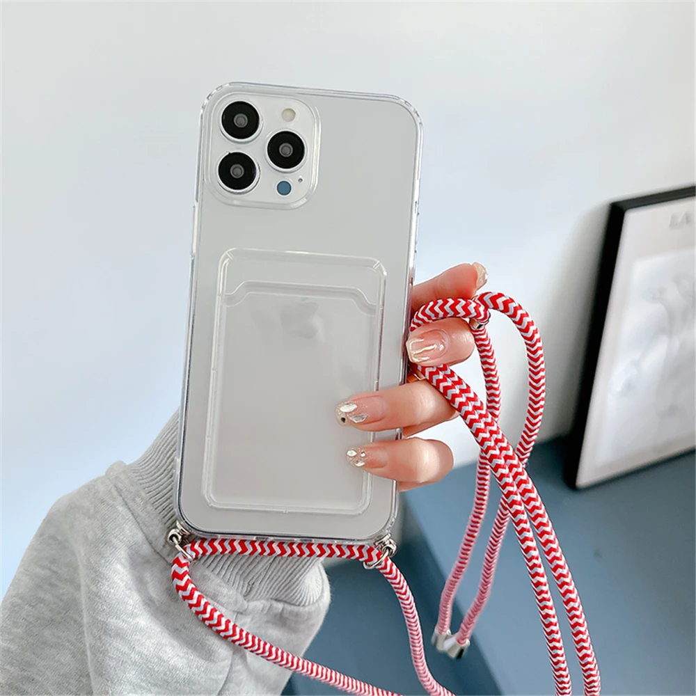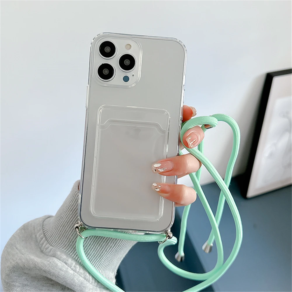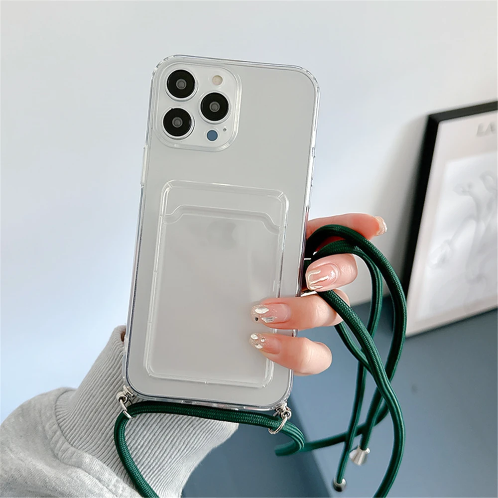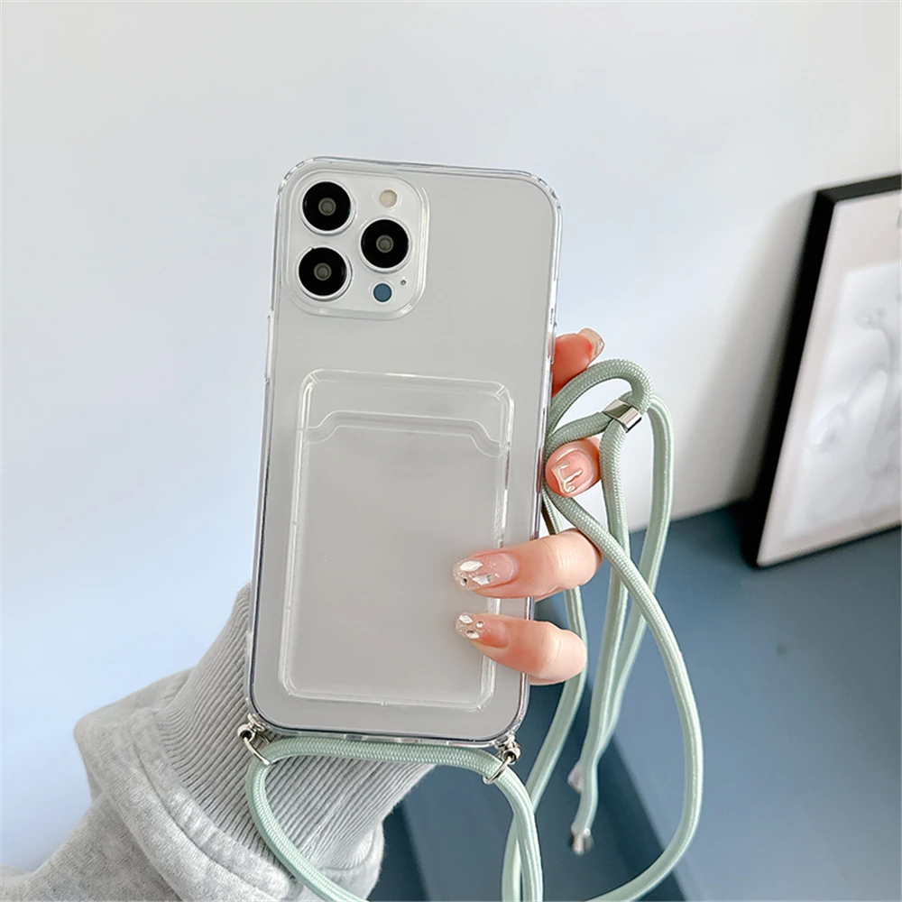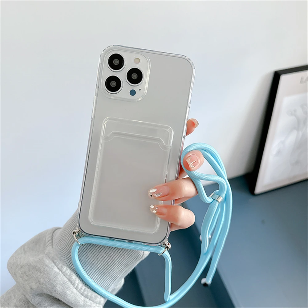 Comprar Funda de teléfono con cordón transparente para iPhone, carcasa trasera de protección de lente de silicona suave para iPhone 14, 13, 12, 11 Pro Max, XS, XR, X, 6, 7, 8 Plus