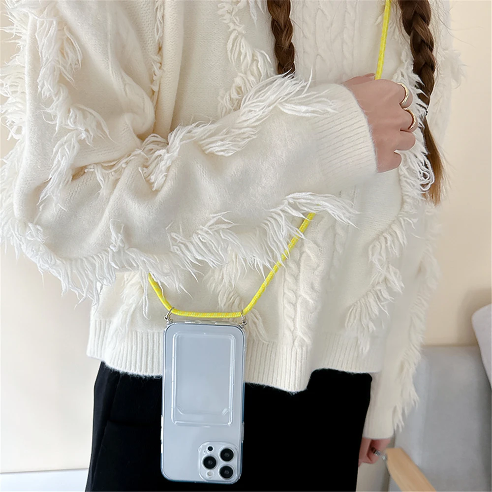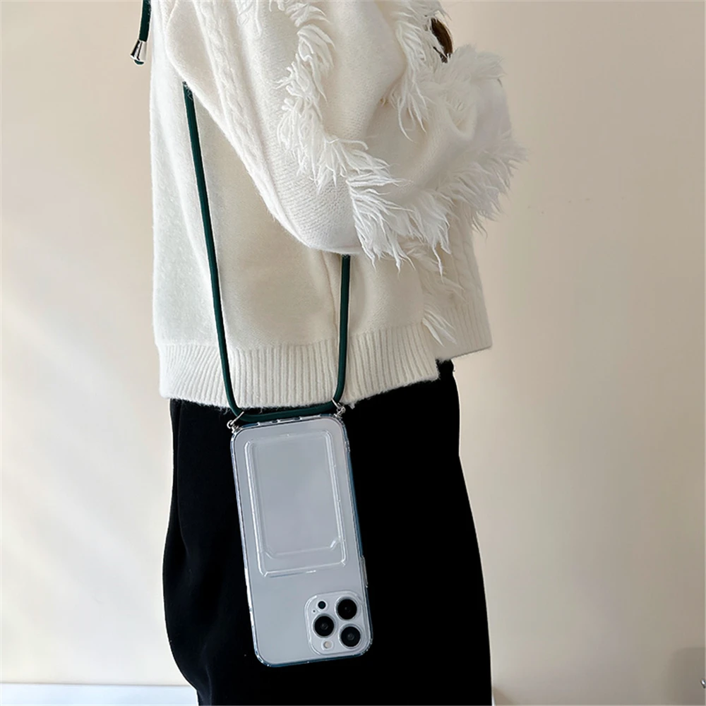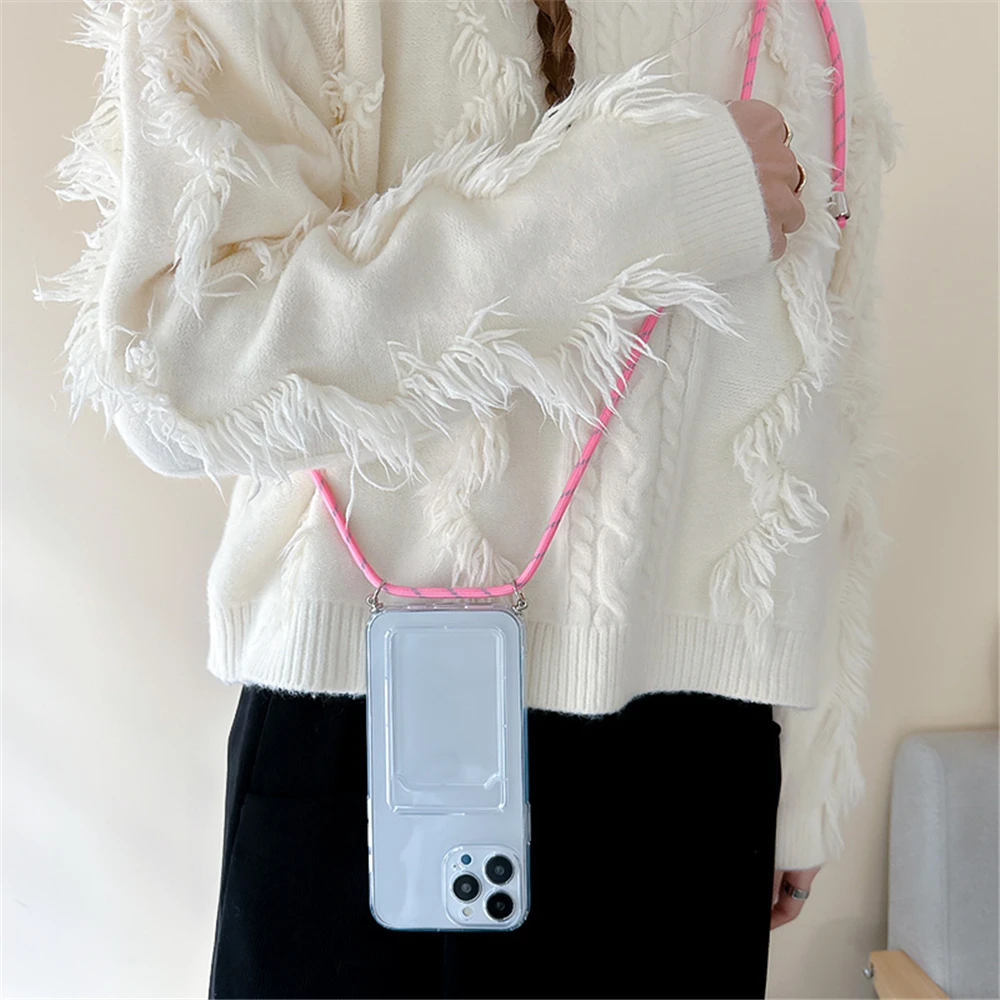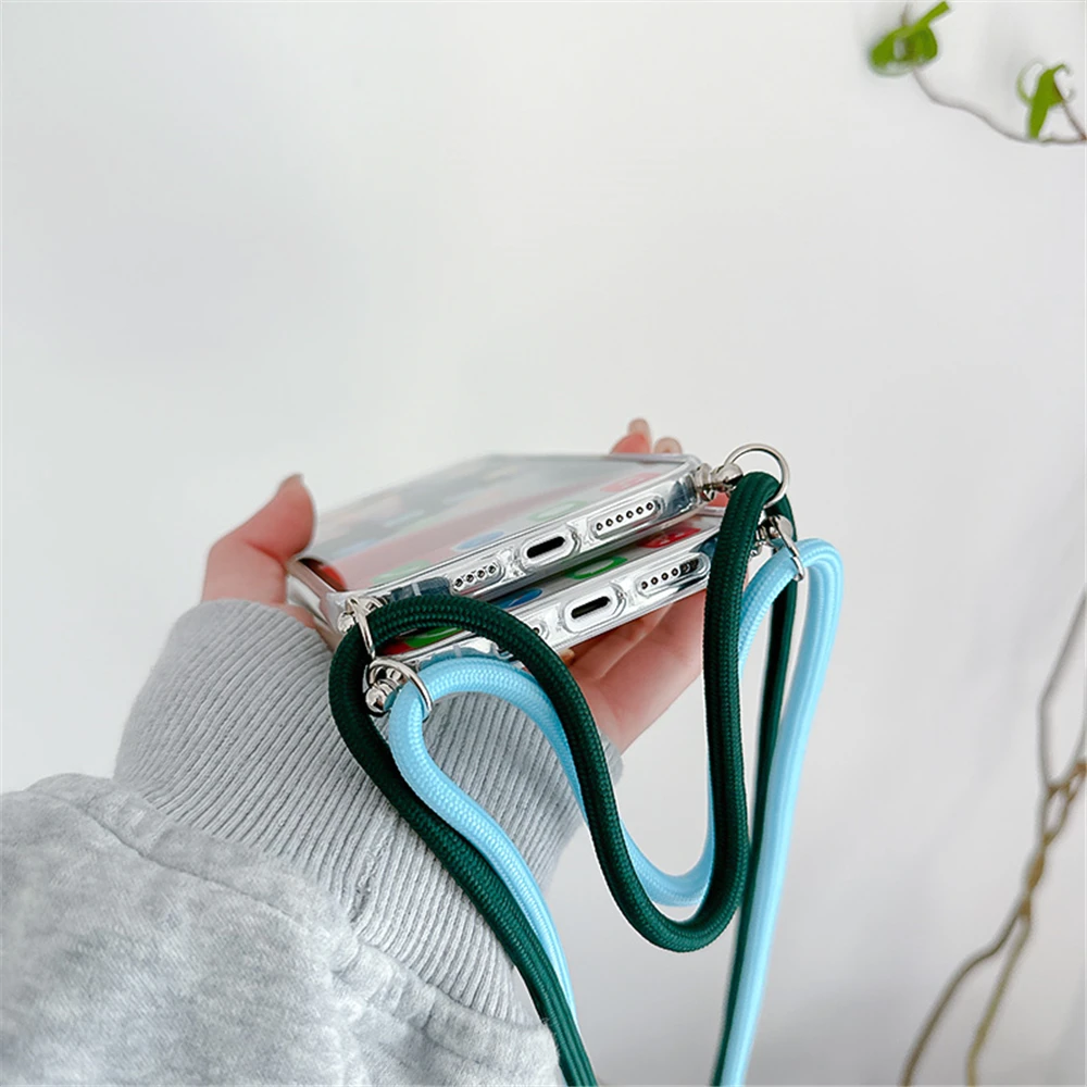 Comprar Funda de teléfono con cordón transparente para iPhone, carcasa trasera de protección de lente de silicona suave para iPhone 14, 13, 12, 11 Pro Max, XS, XR, X, 6, 7, 8 Plus