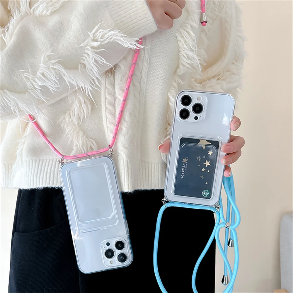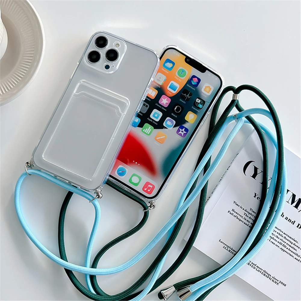Comprar Funda de teléfono con cordón transparente para iPhone, carcasa trasera de protección de lente de silicona suave para iPhone 14, 13, 12, 11 Pro Max, XS, XR, X, 6, 7, 8 Plus