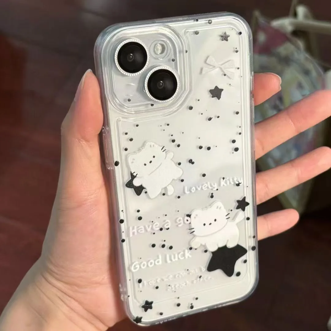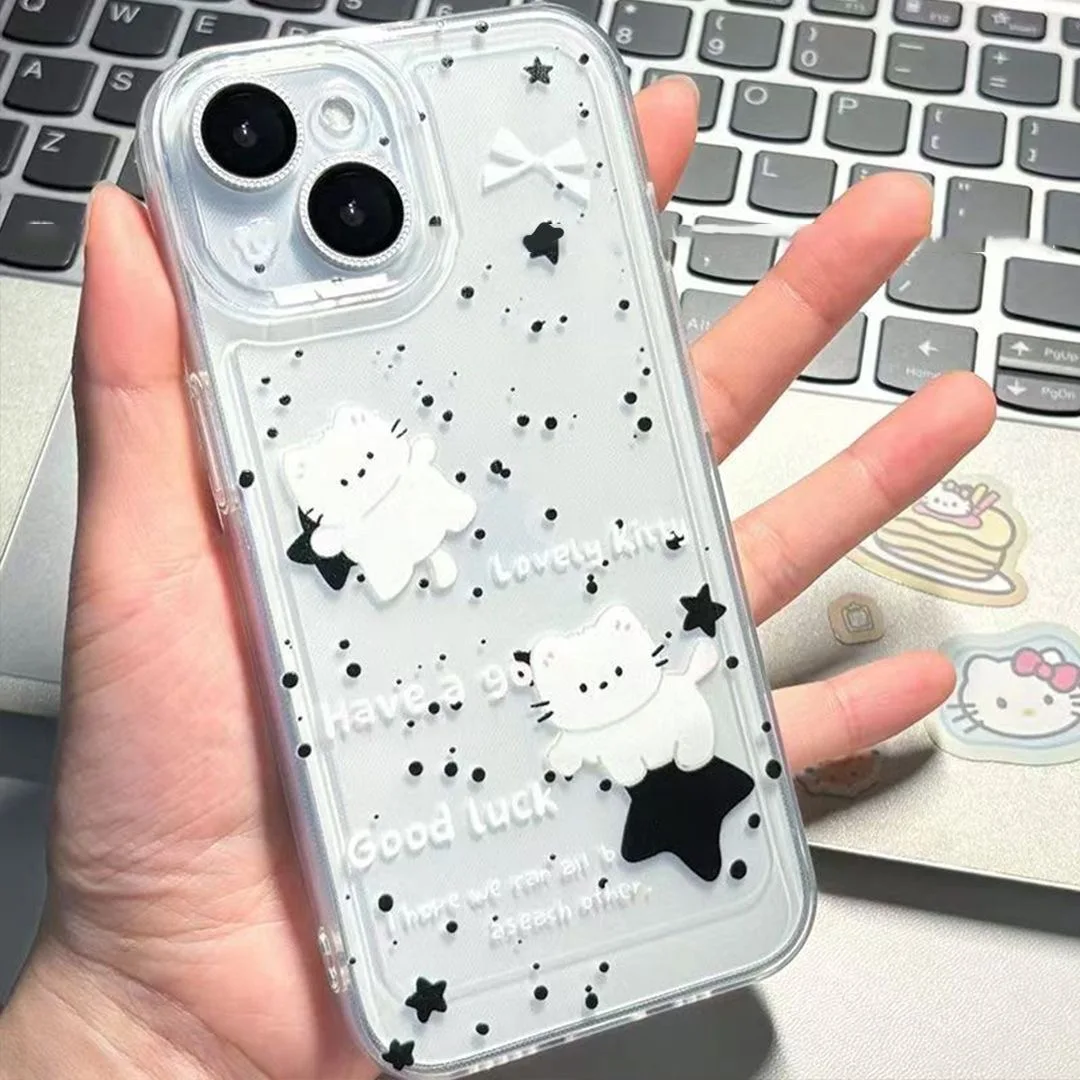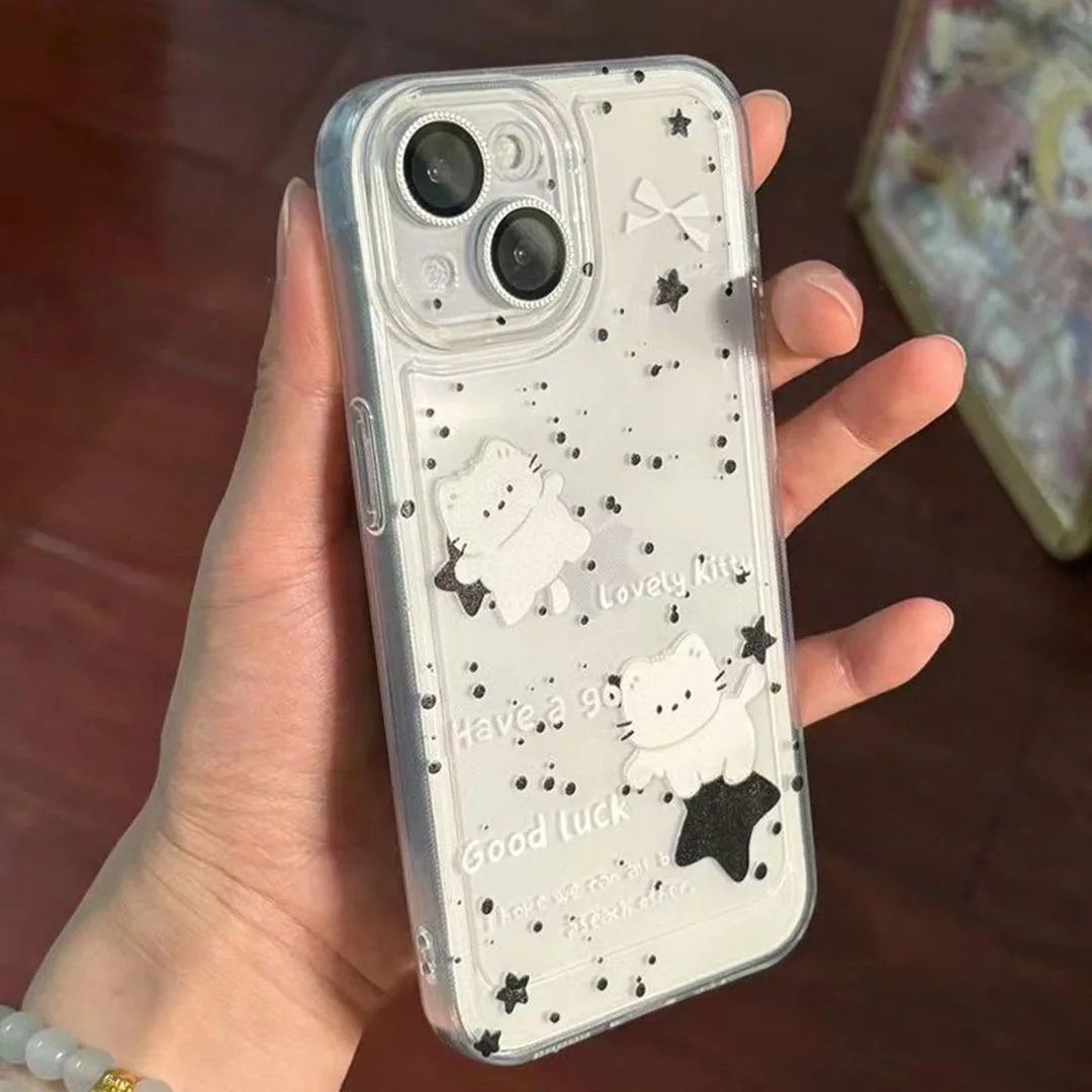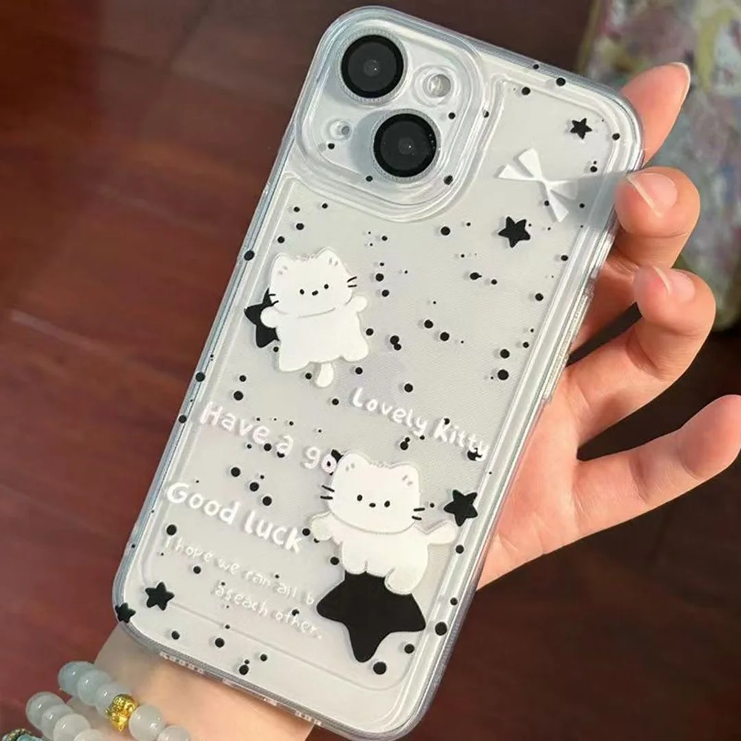 Funda de teléfono coreana Ins Lovely Stars Cat para Samsung S25 S24 S23 S22 S21 S20 Note20 Note10 Plus Ultra Lite 5G cubierta de TPU suave transparente
