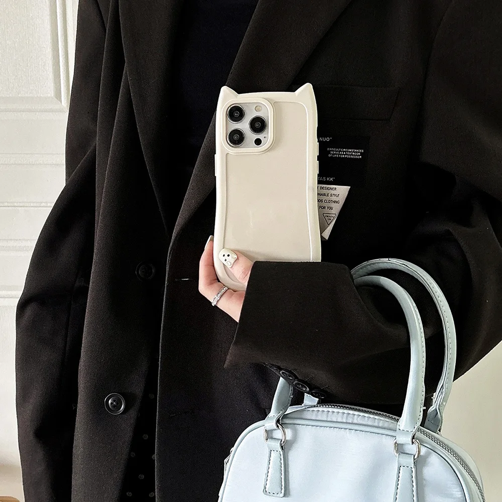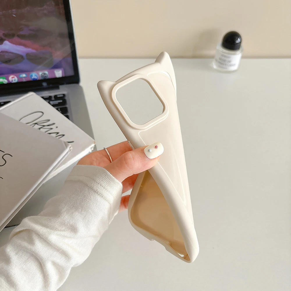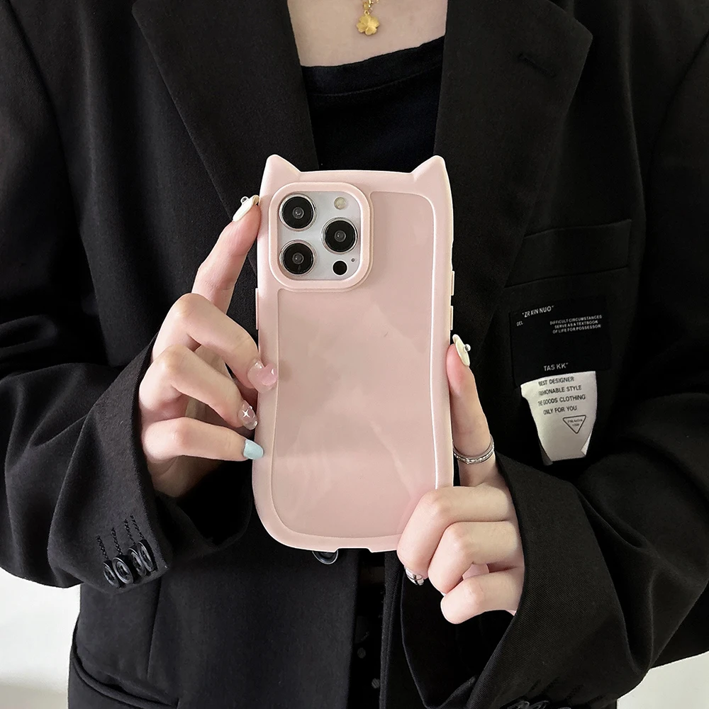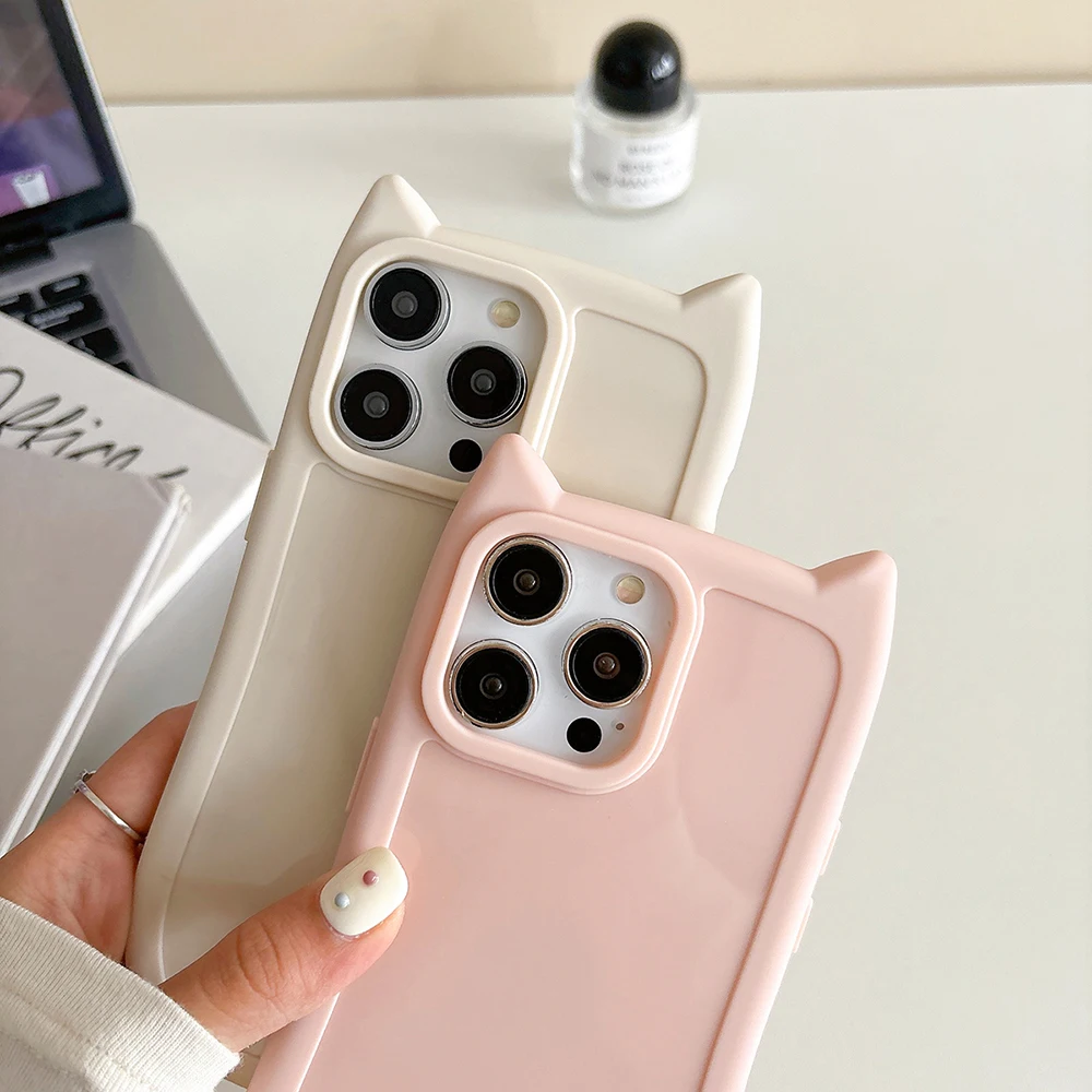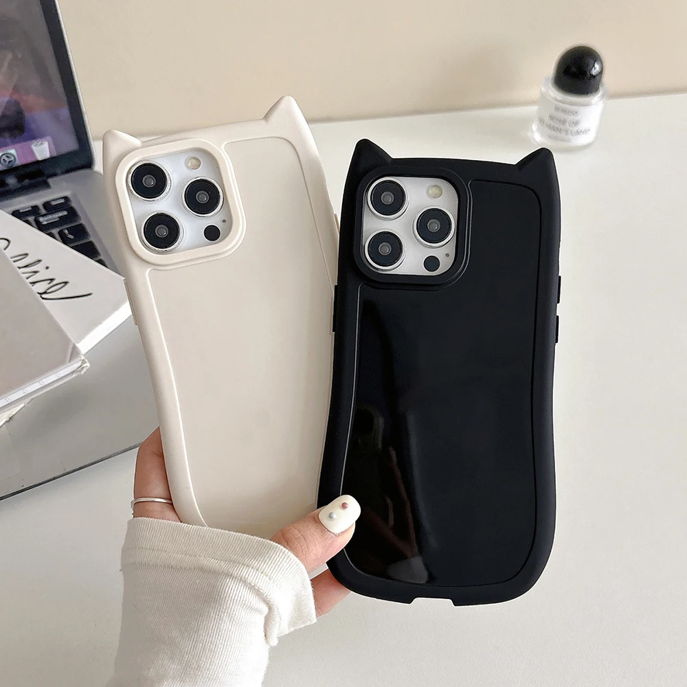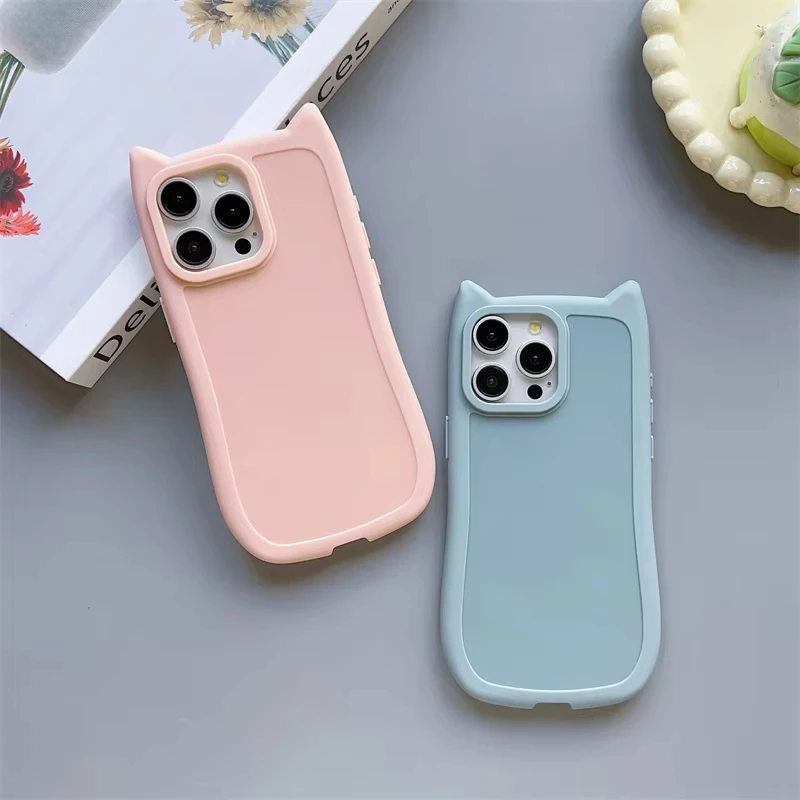 Funda de teléfono de Color sólido con Orejas de gatos 3D bonitos coreanos para iPhone 16 15 14 13 11 12 Pro Max Plus Funda suave de silicona a prueba de golpes para chica